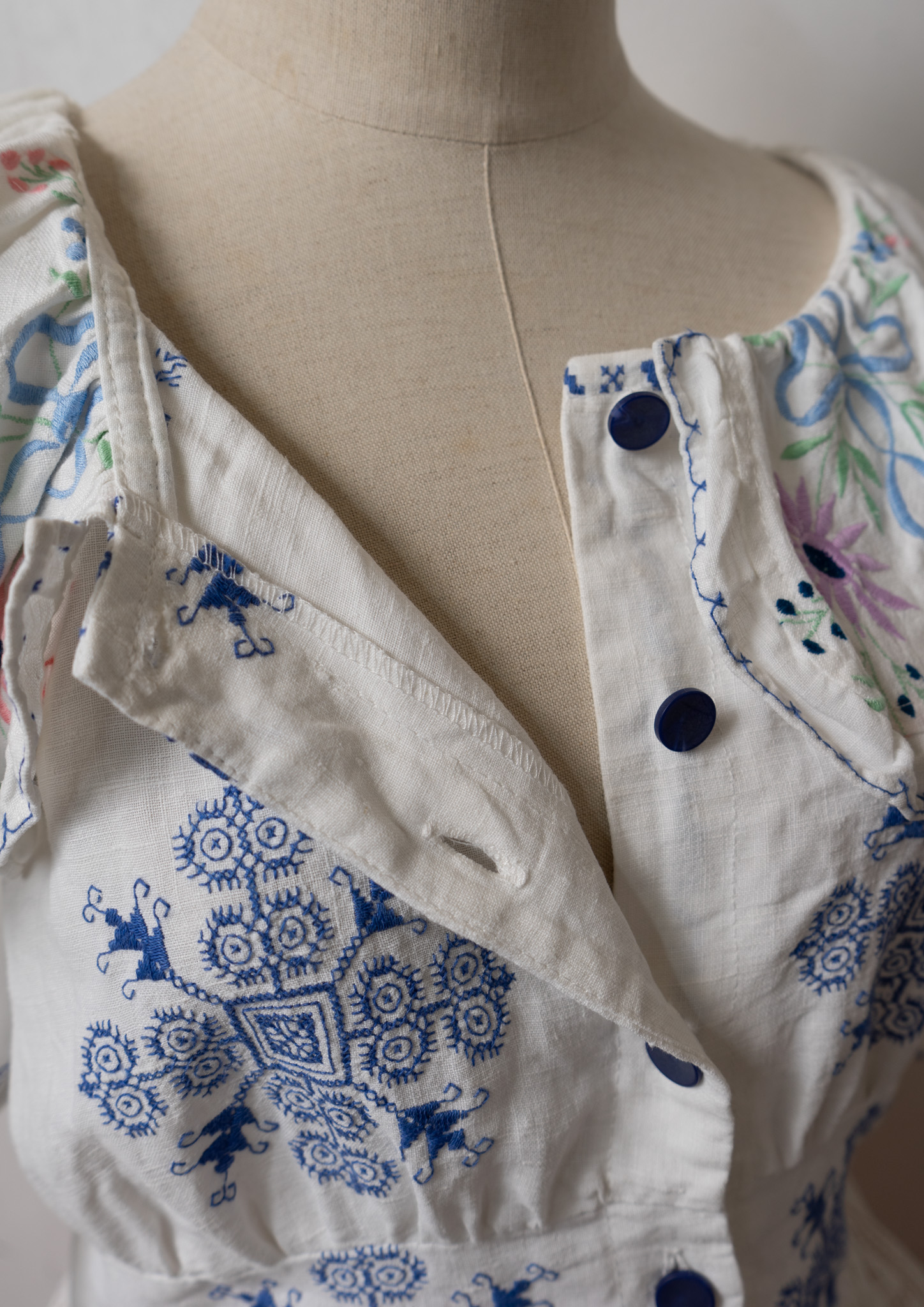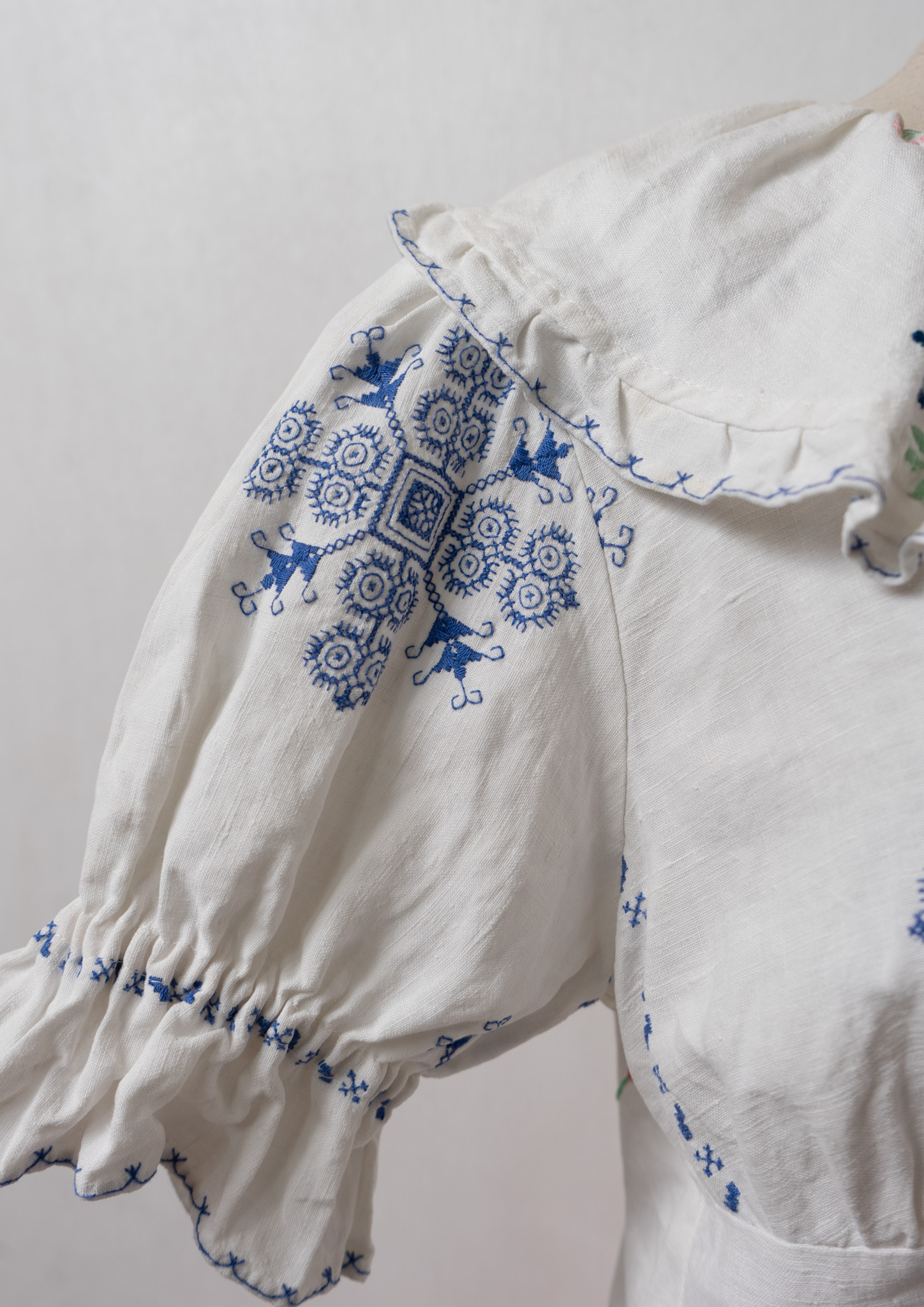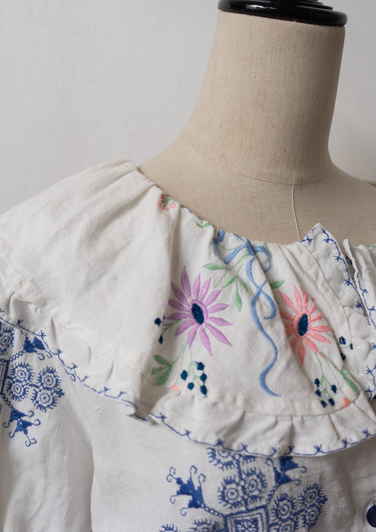 Upcycle Ribbon × Flower Embroidery Big Collar White Blouse