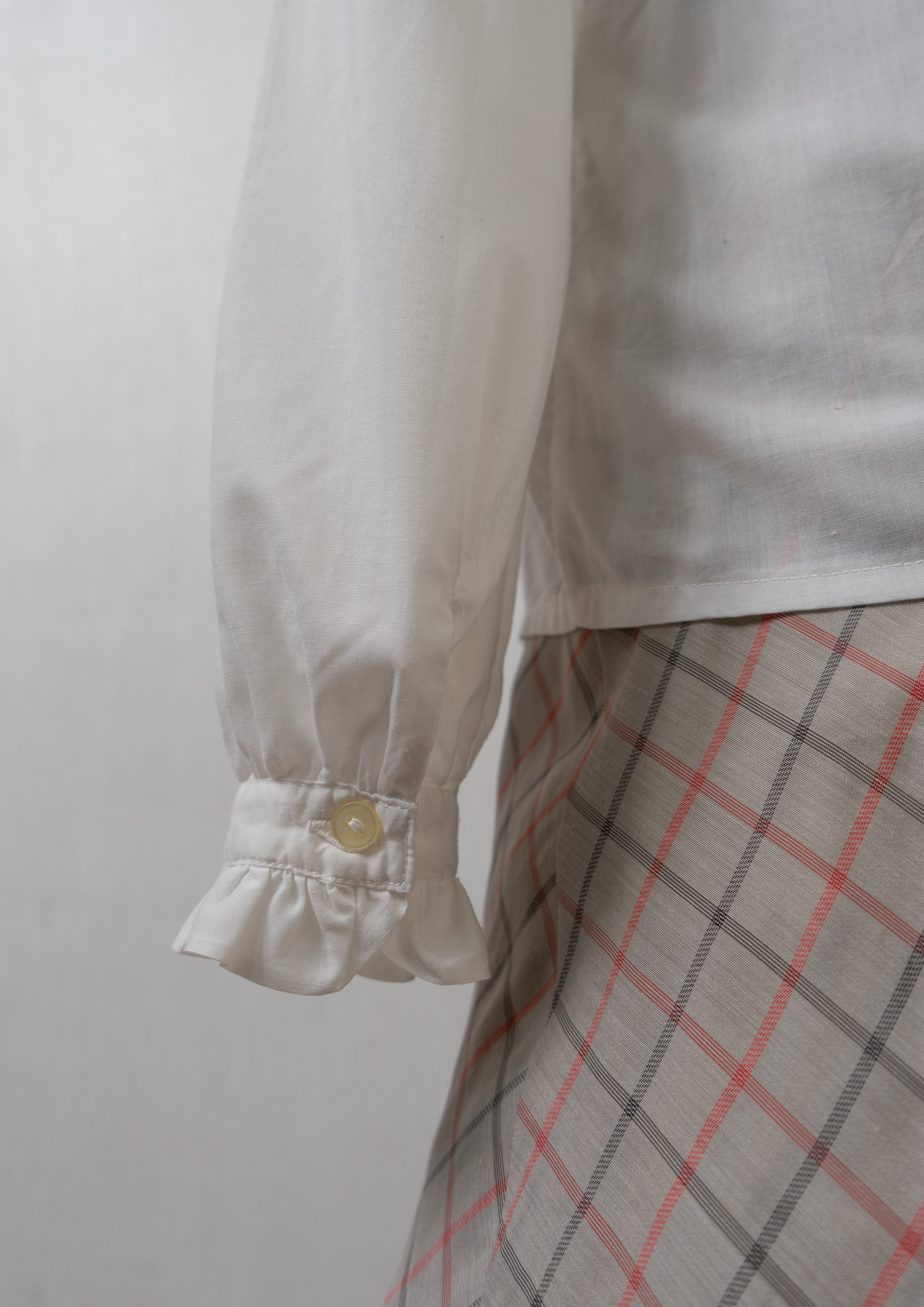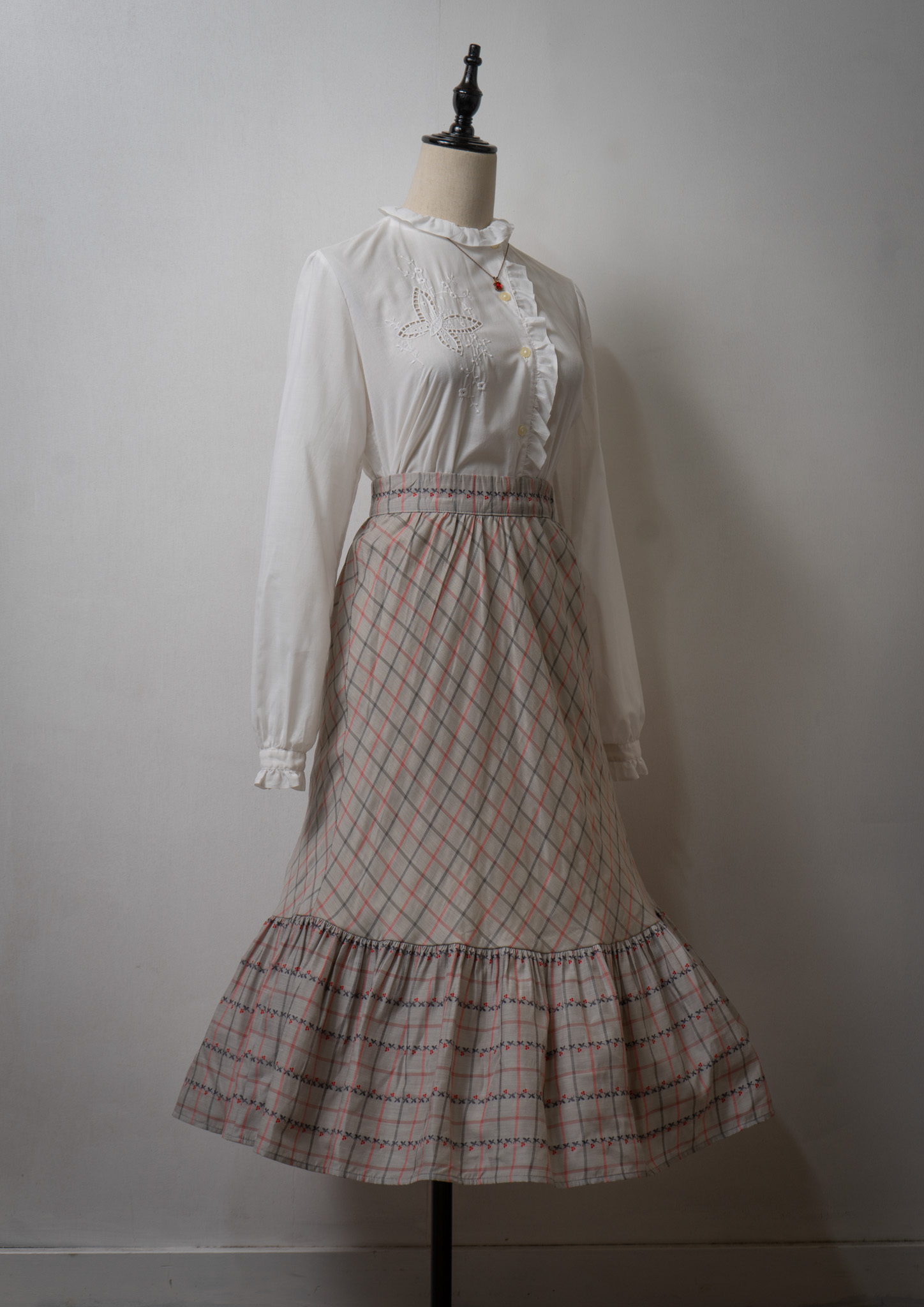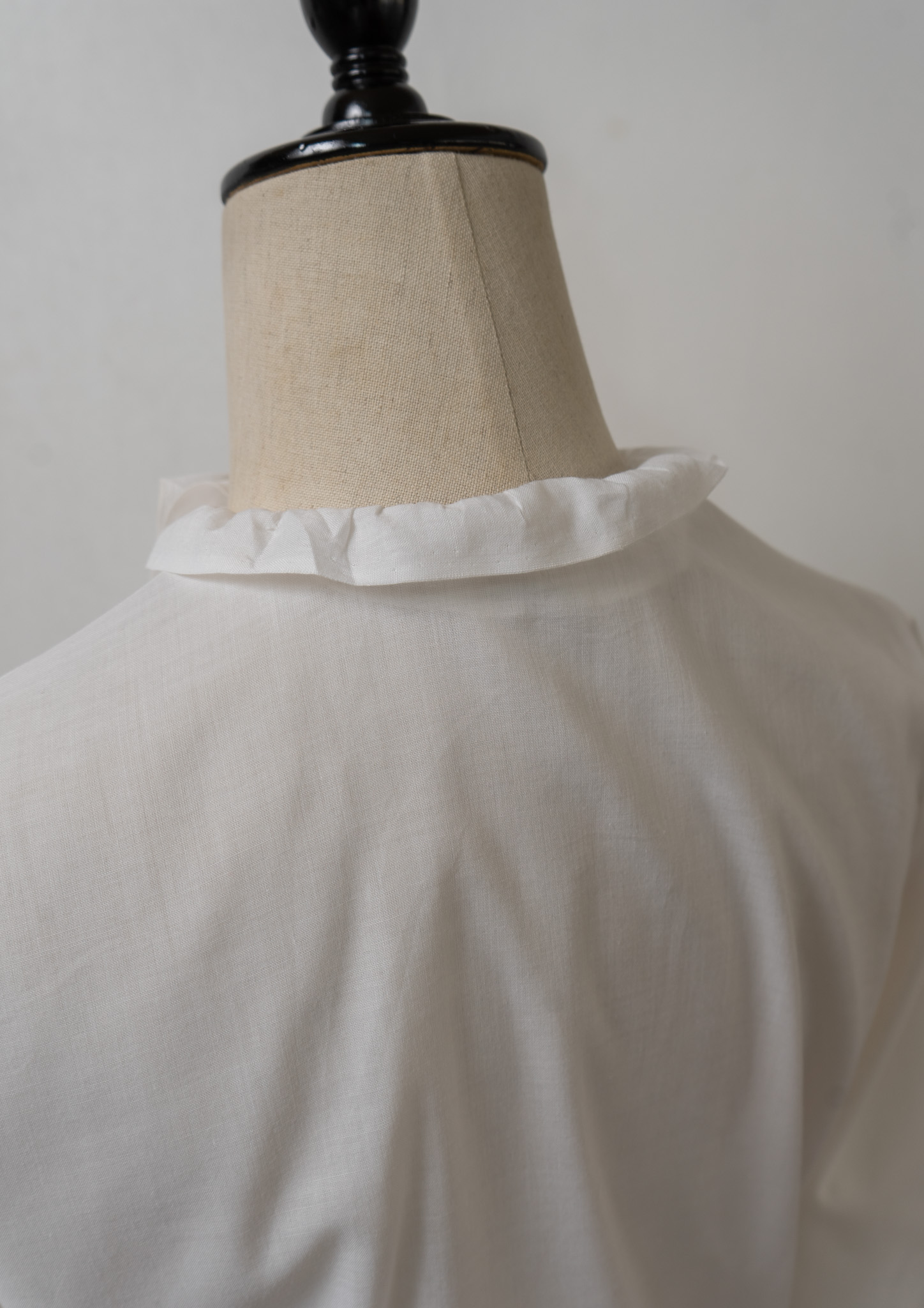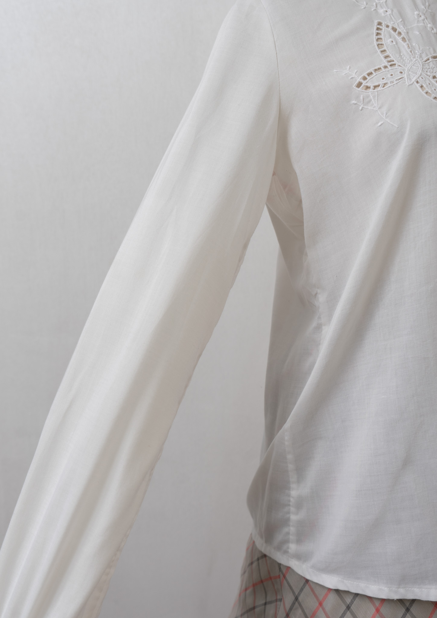 70~80’s Butterfly × Flower Embroidery Frill Design Whiite Blouse