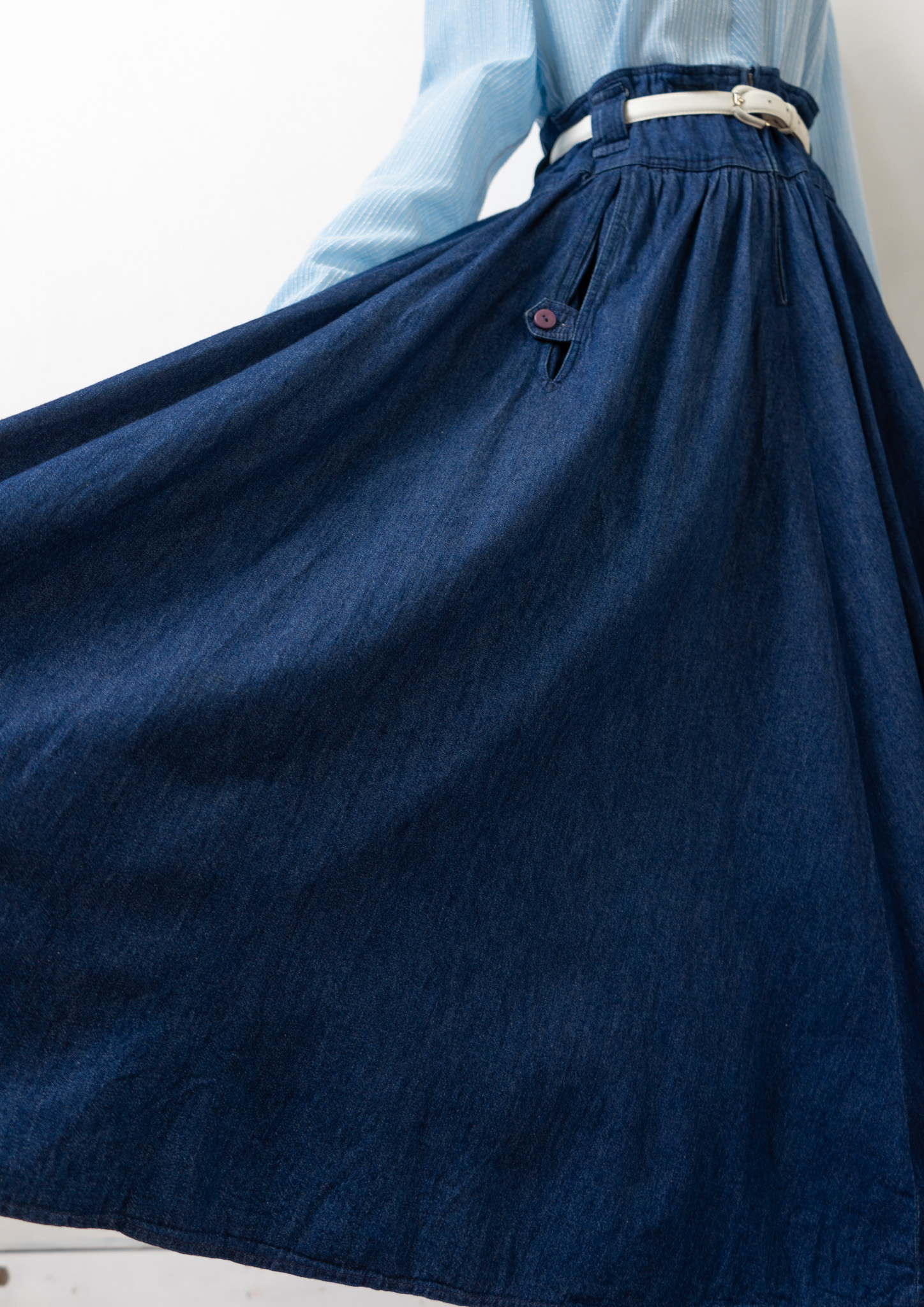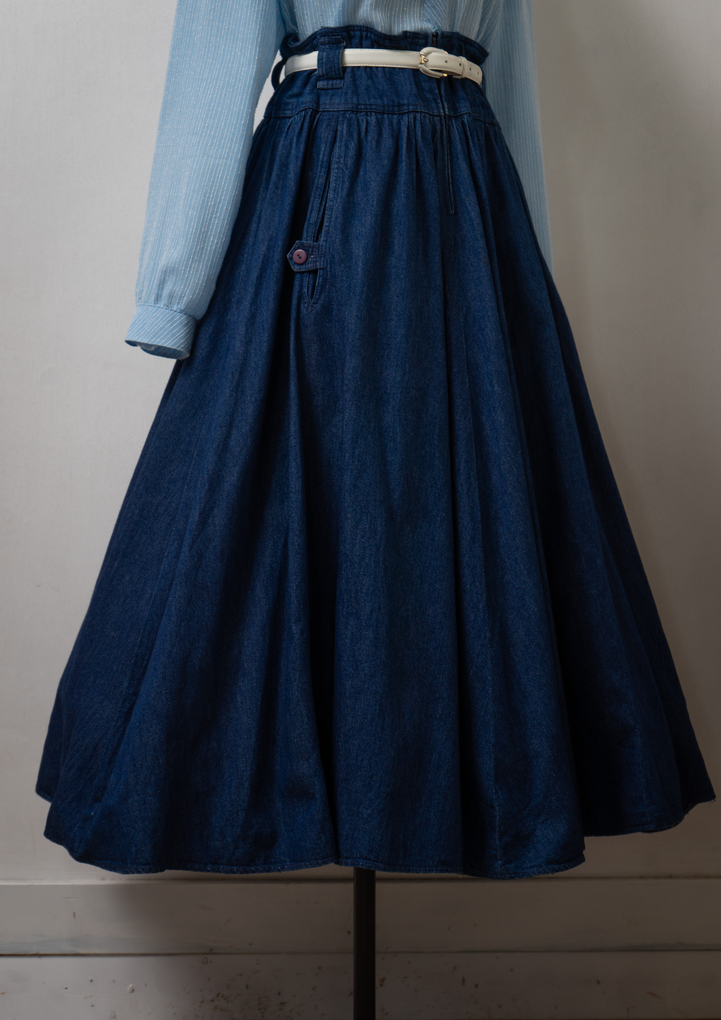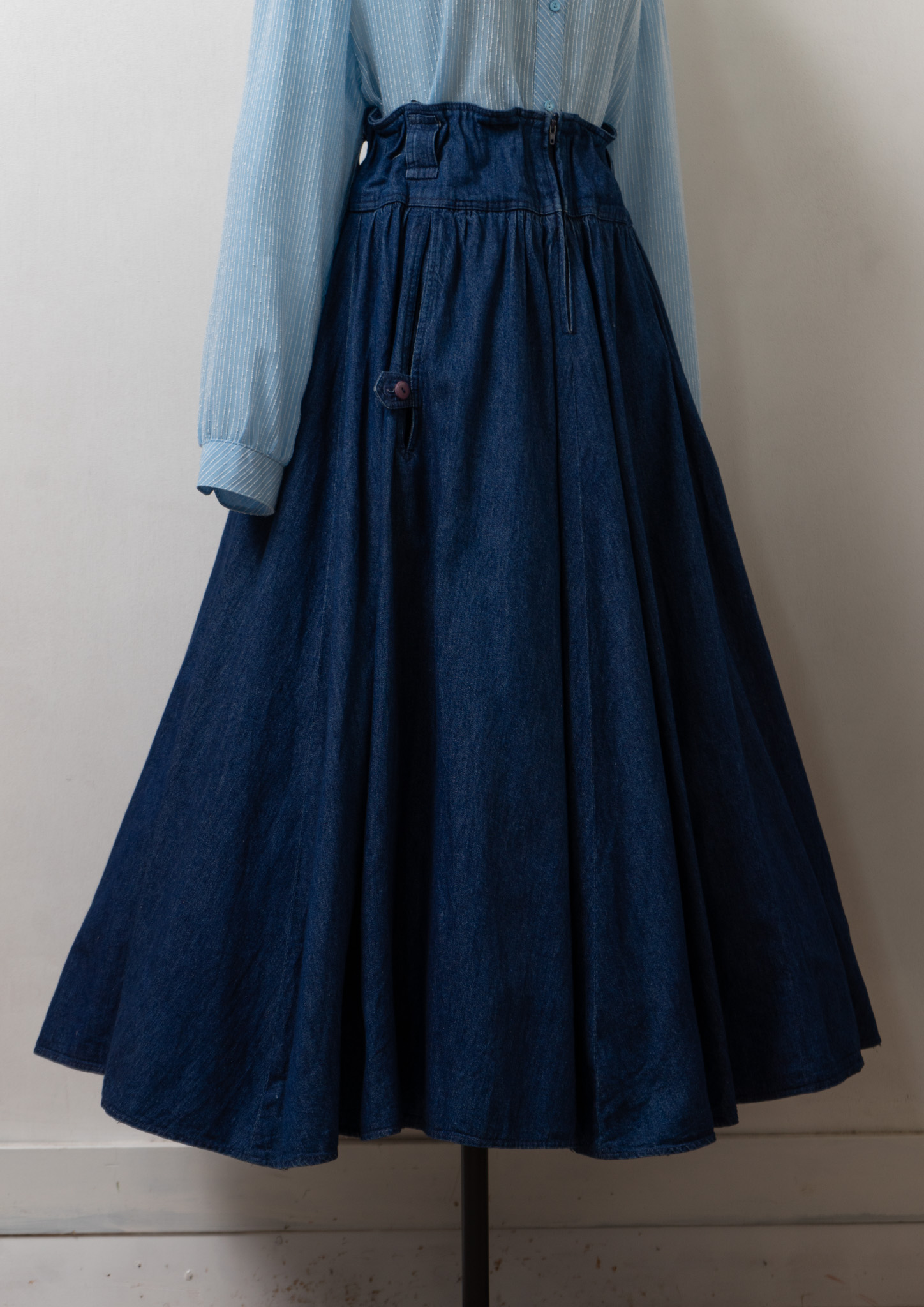 70~80’s Pocket Design Blue Denim Flare Skirt