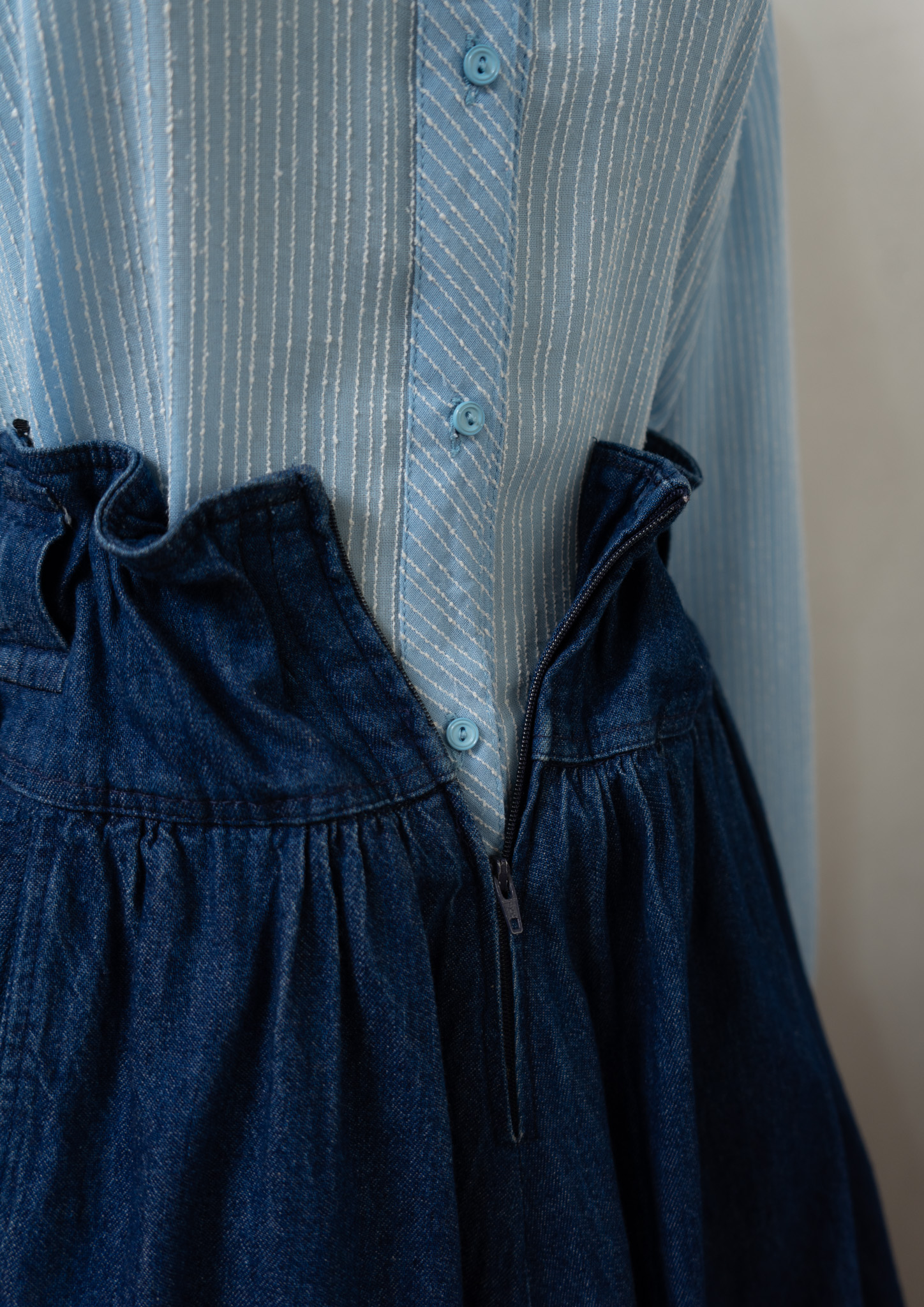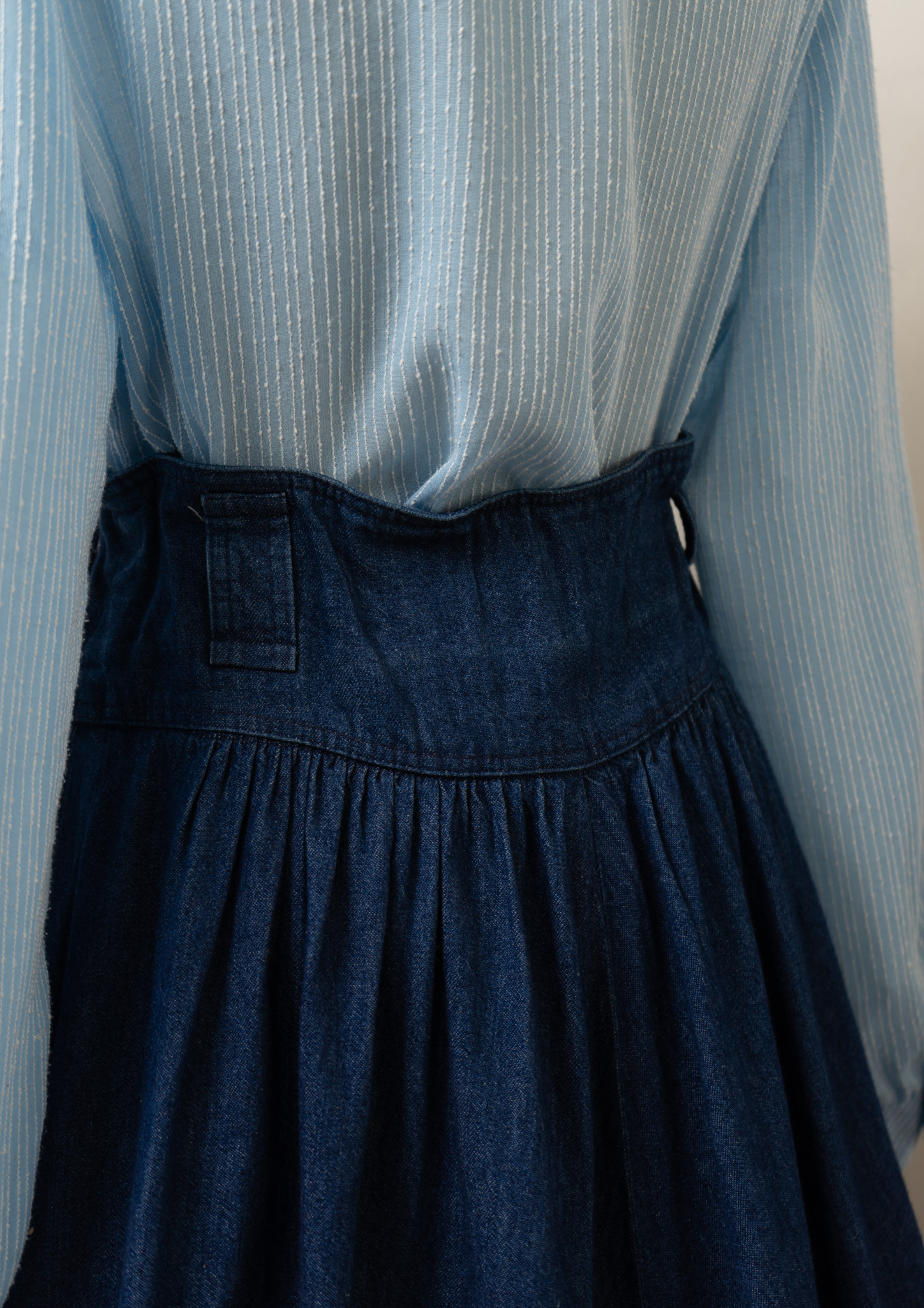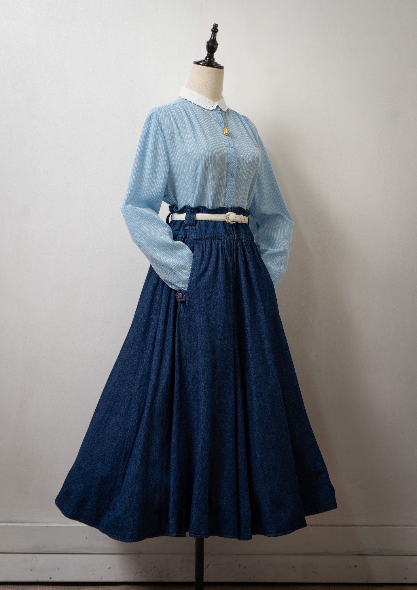 70~80’s Pocket Design Blue Denim Flare Skirt