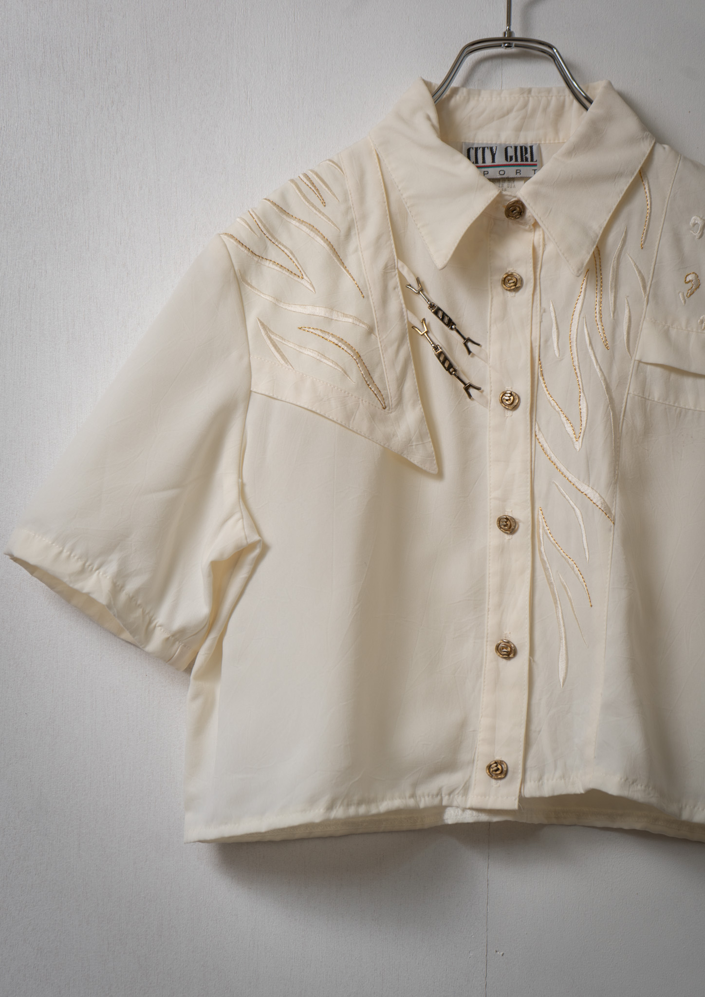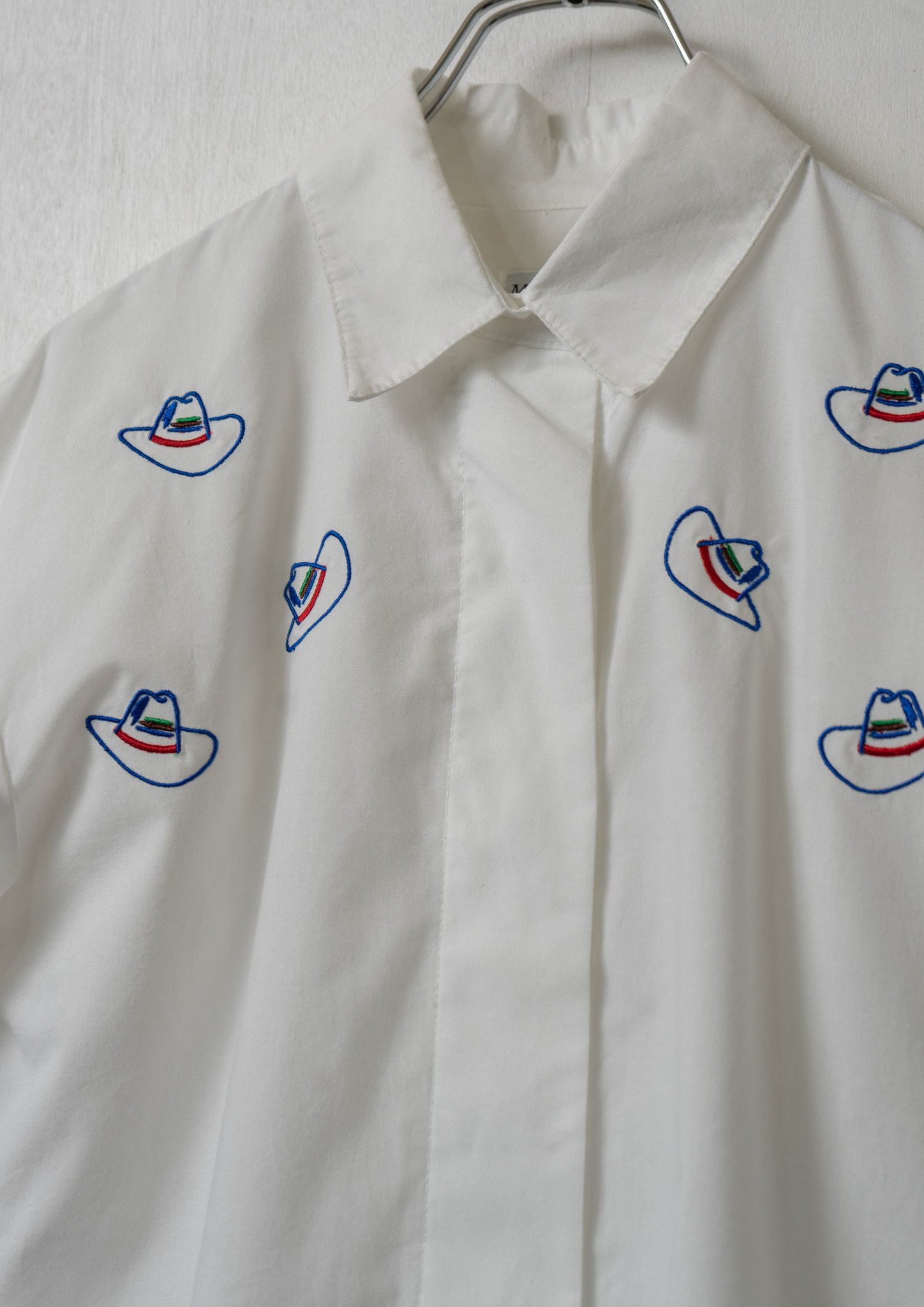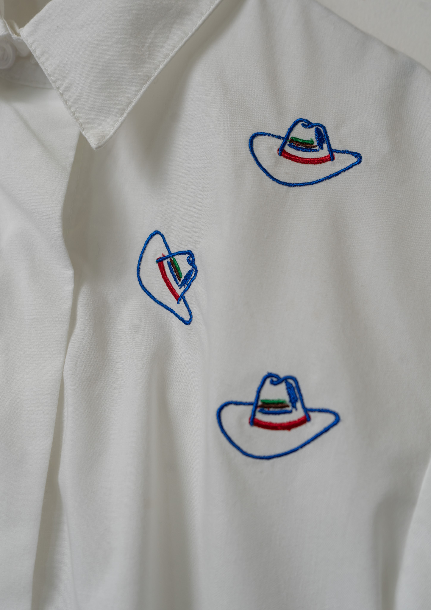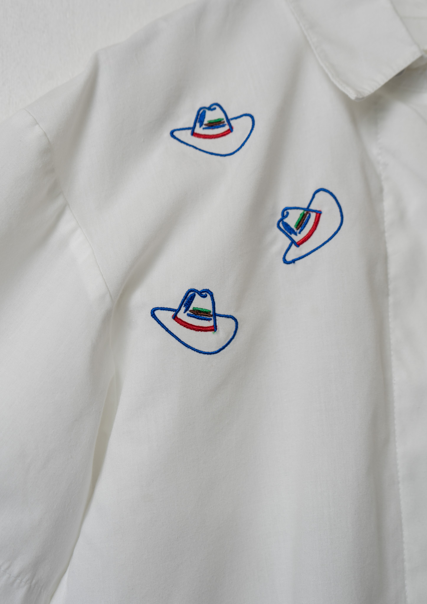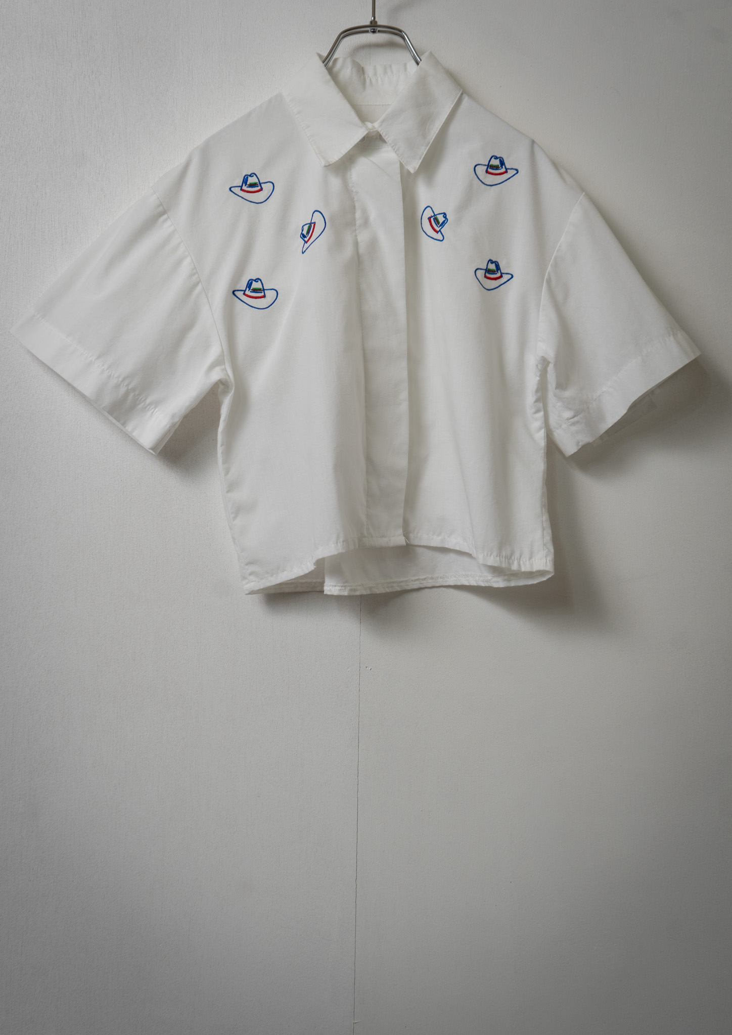 Upcycle Cowboy Hat Embroidery White Cropped Blouse