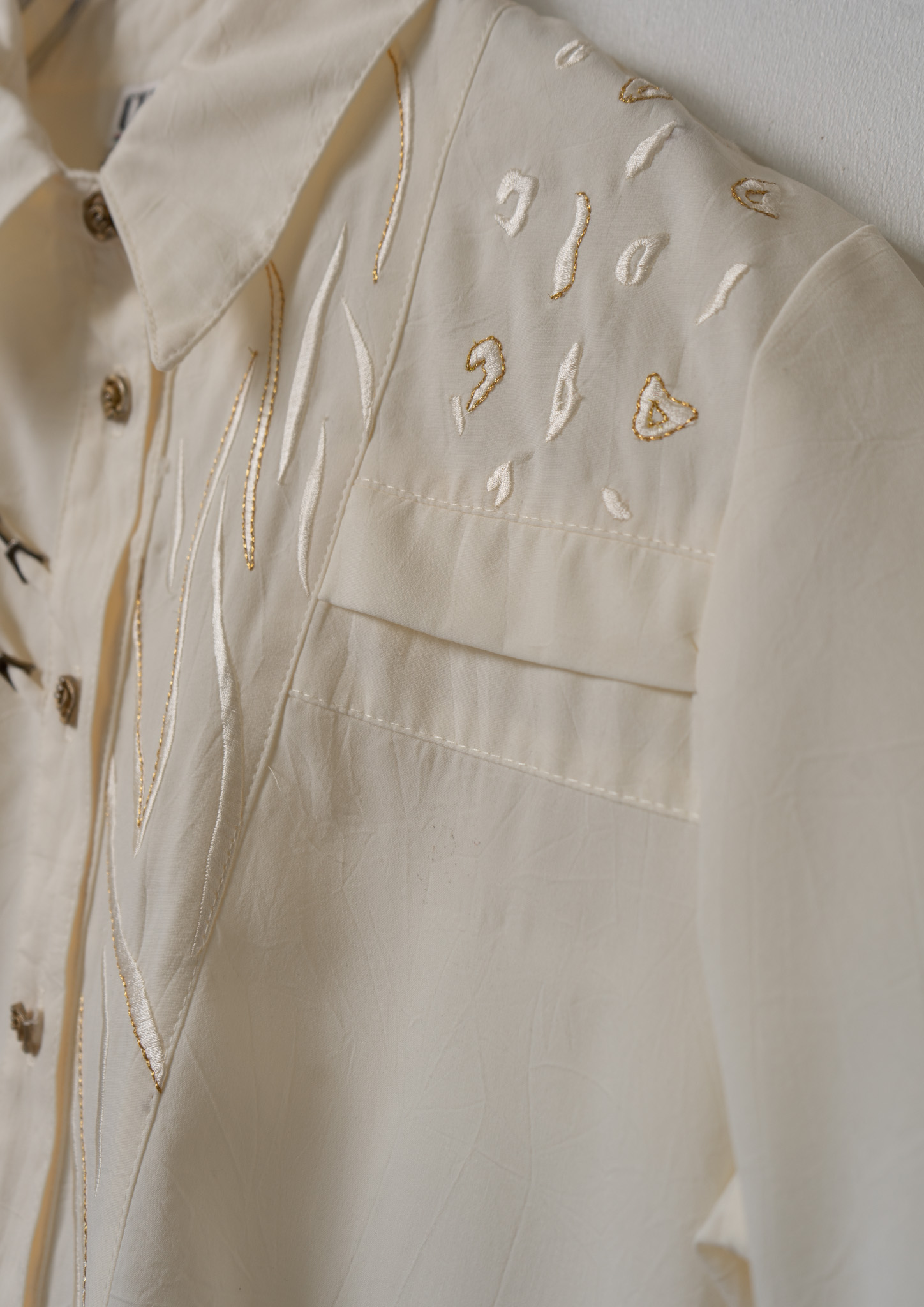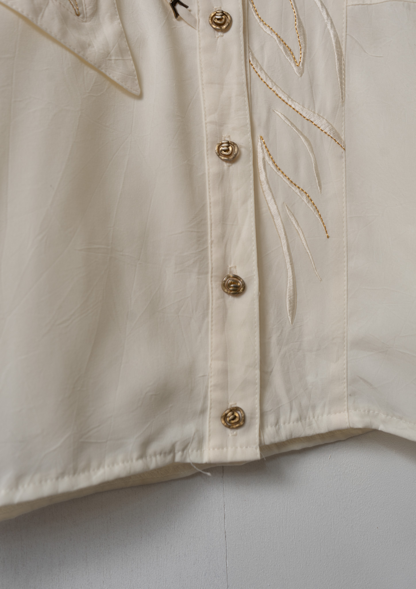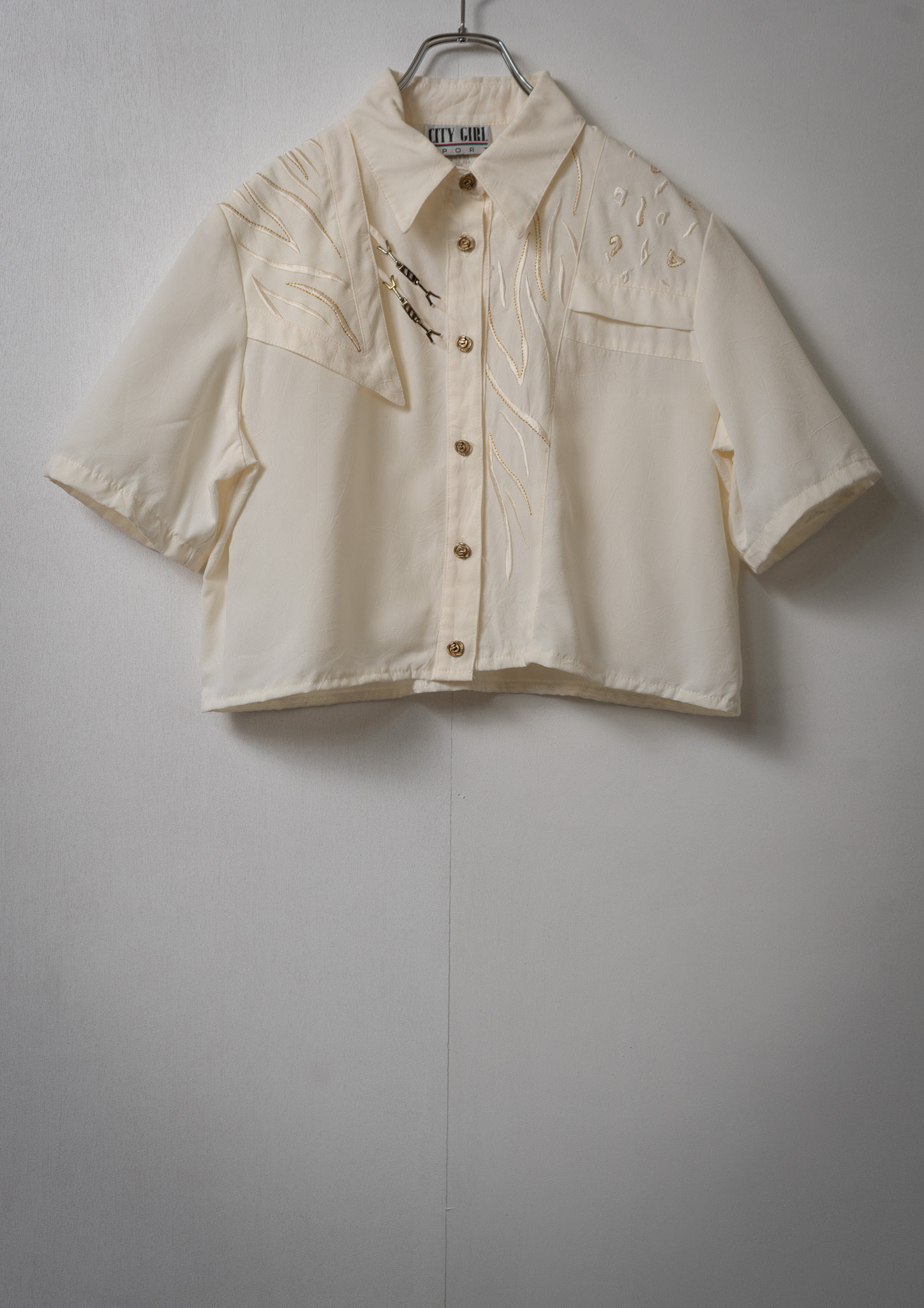 Upcycle Cowboy Hat Embroidery White Cropped Blouse