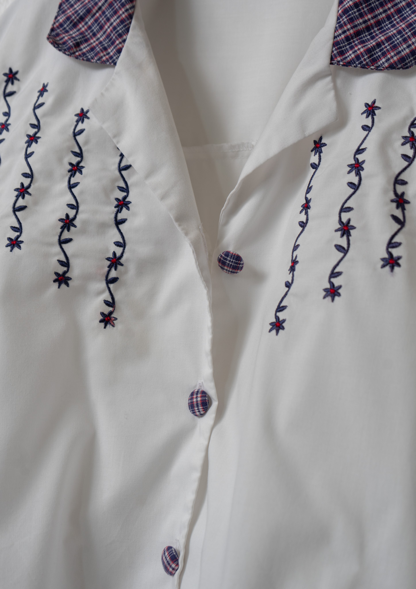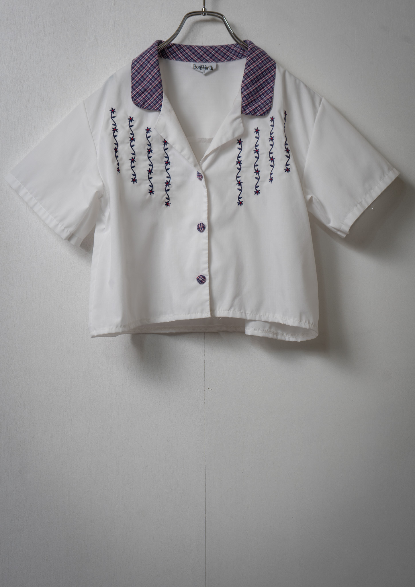 Upcycle Check pattern × Flower Embroidery White Cropped Blouse