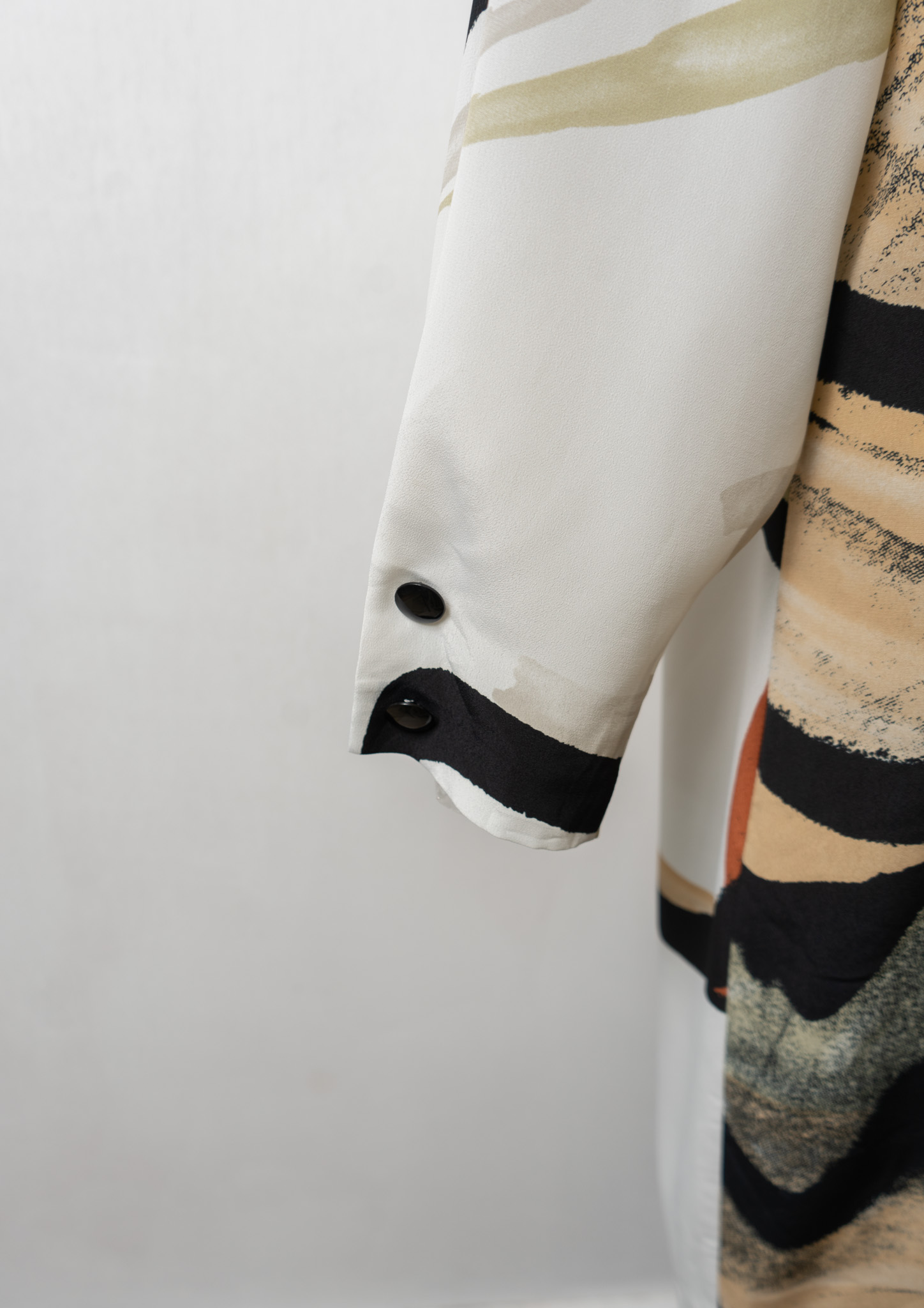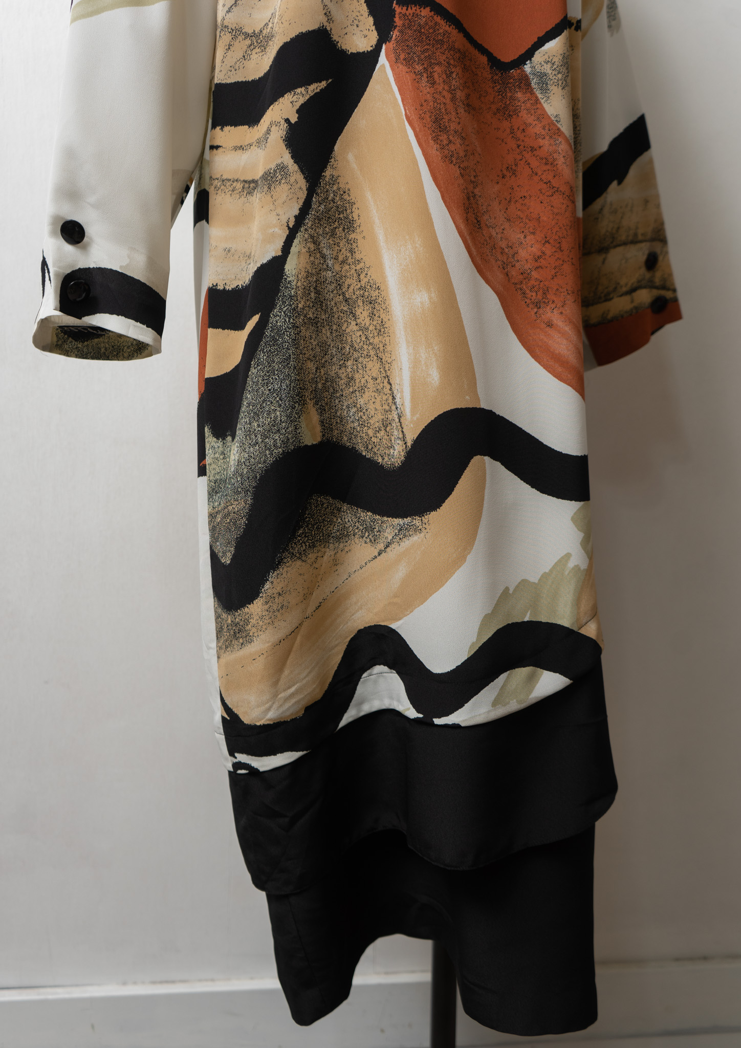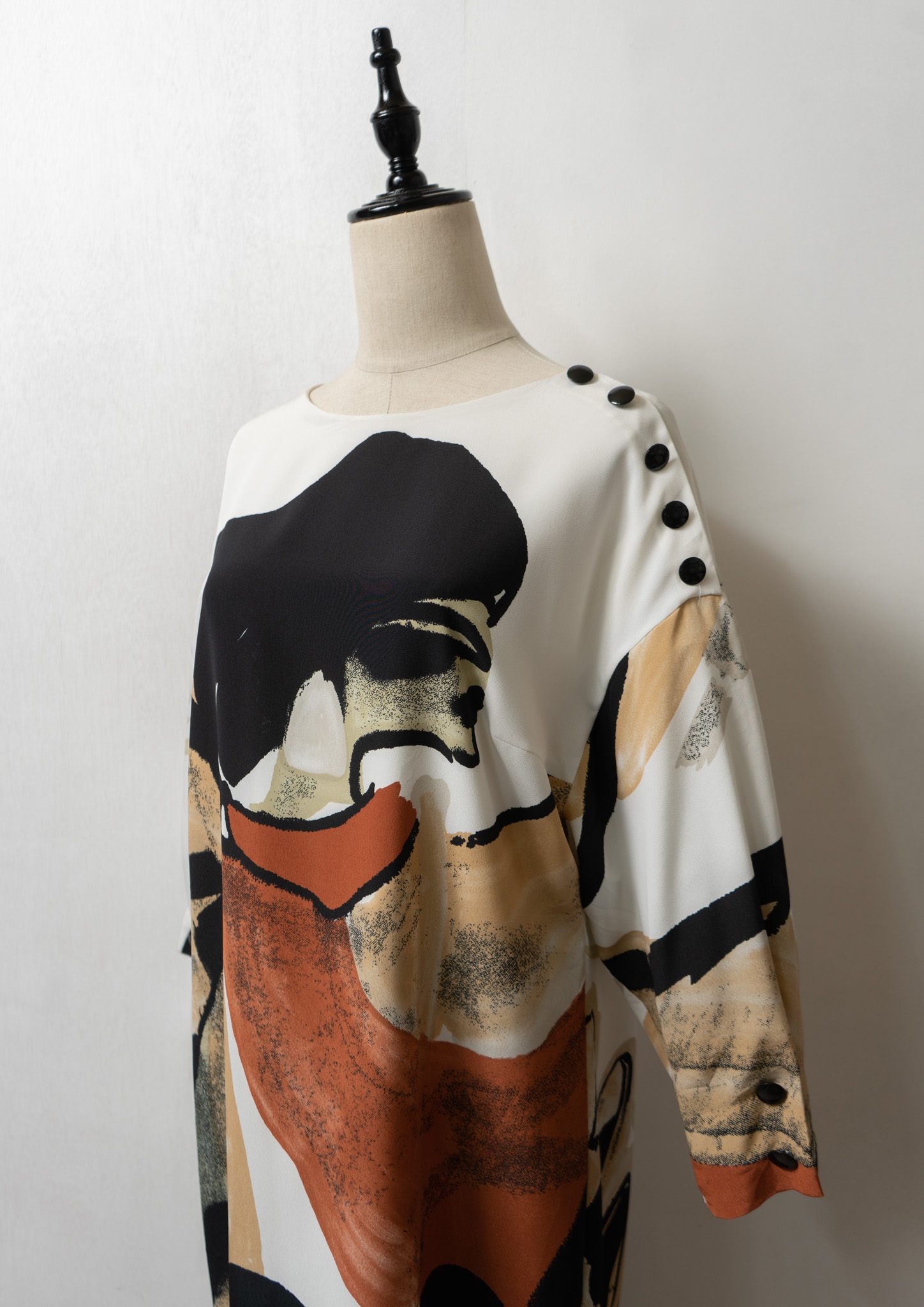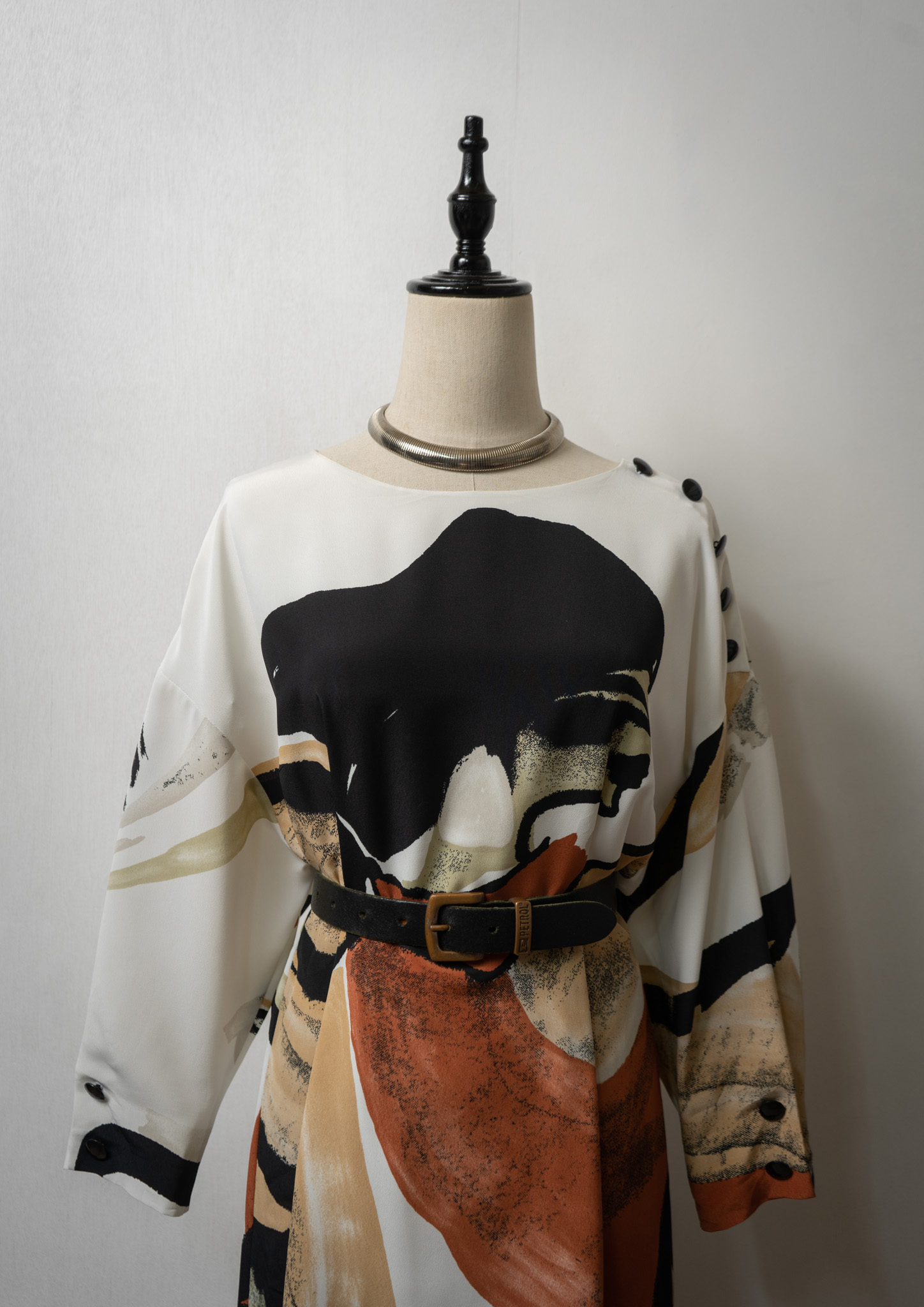 70~80's Bird × Botanical Pattern Stand Neck Dress