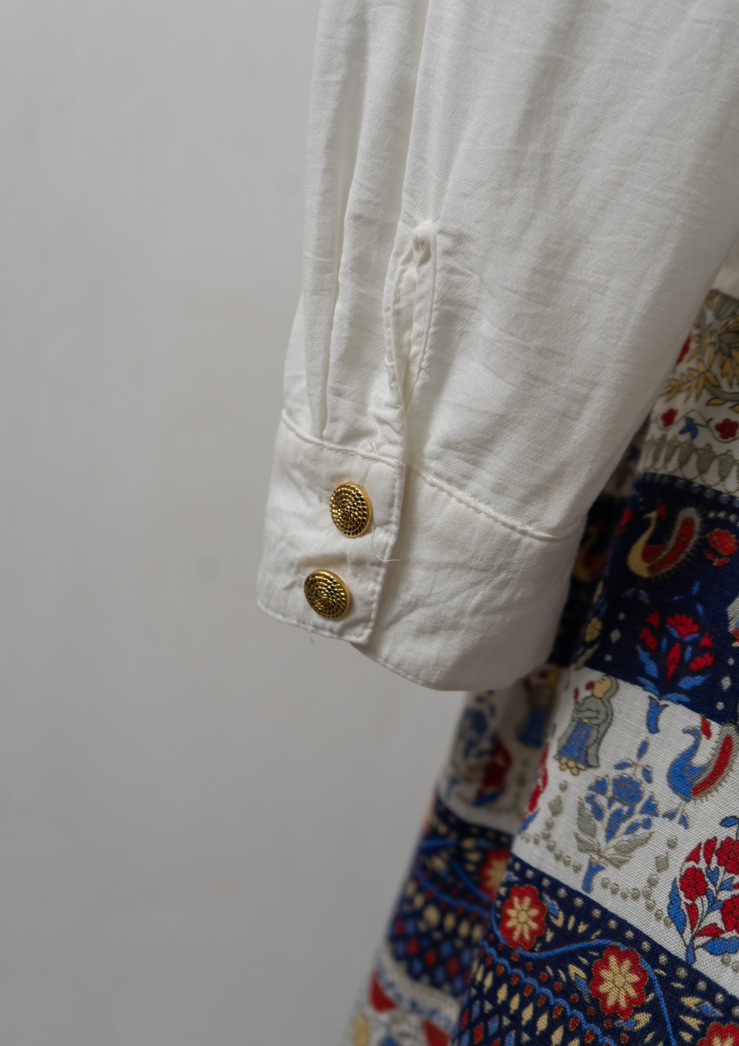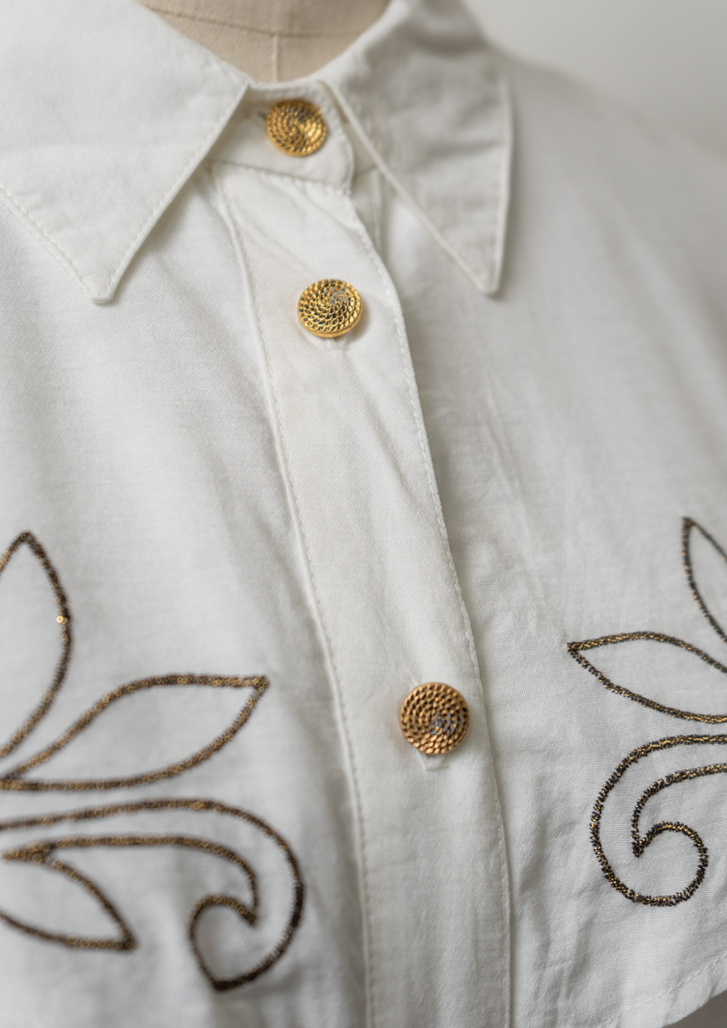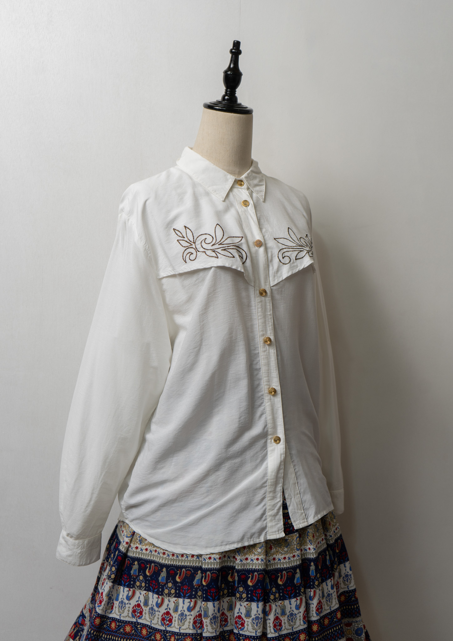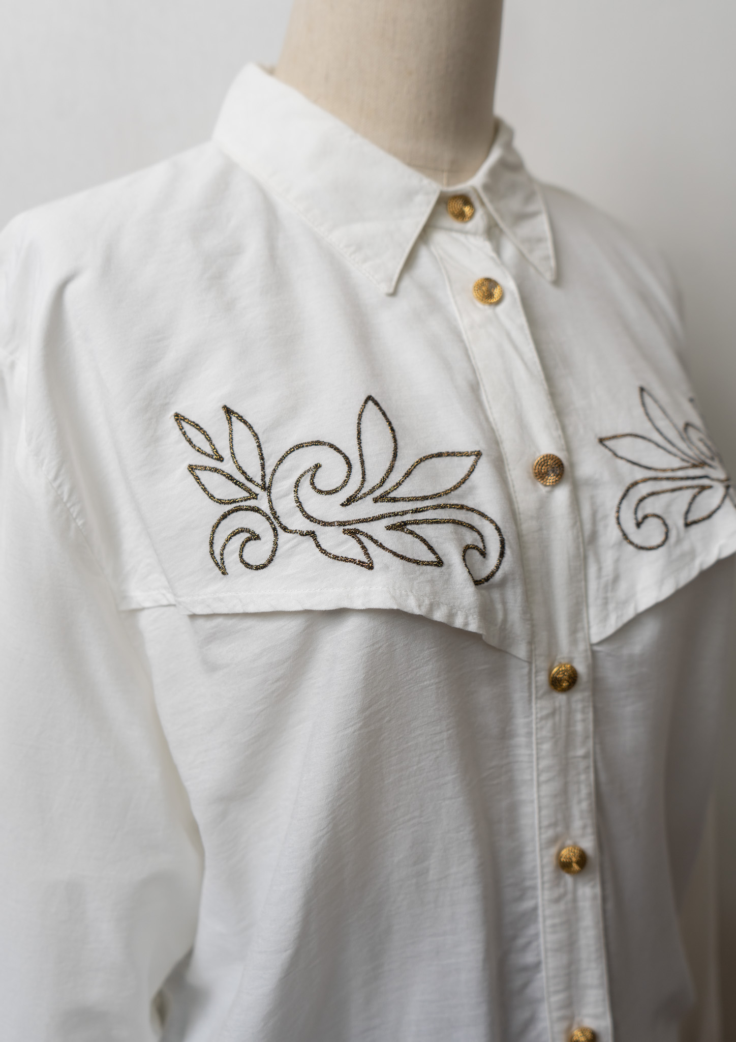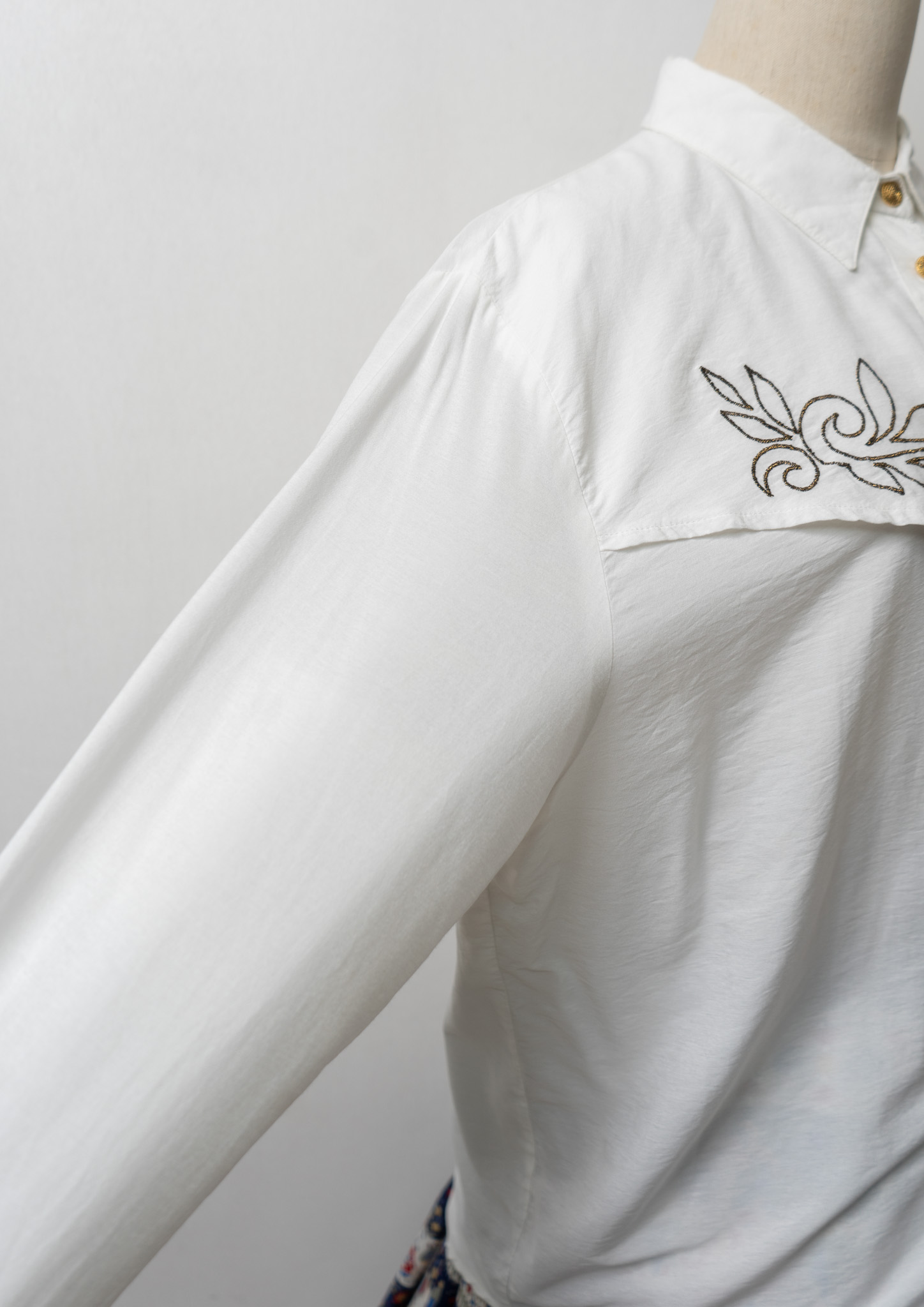 90’s Vine Motif Embroidery Point Beads Design Ivory Blouse