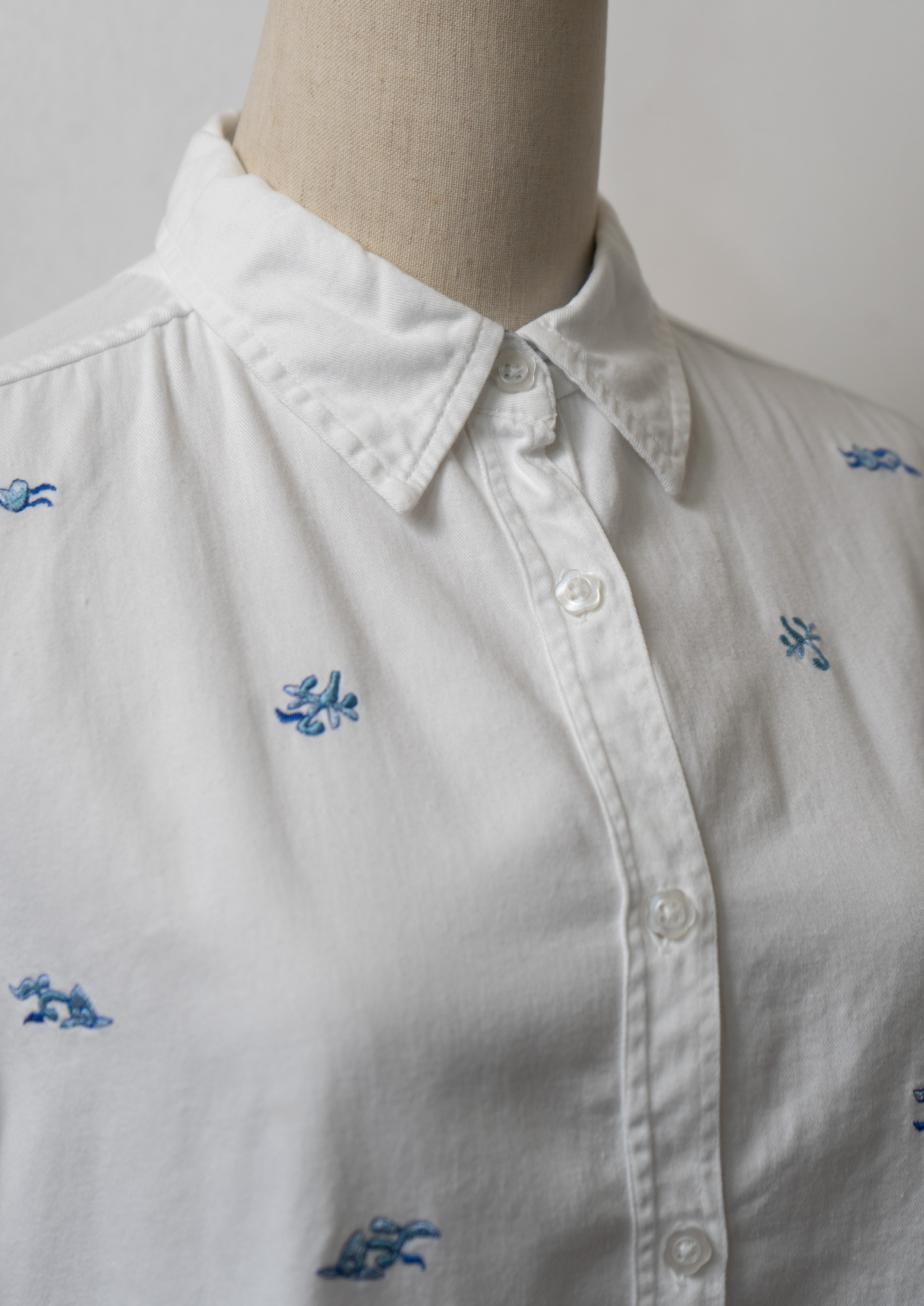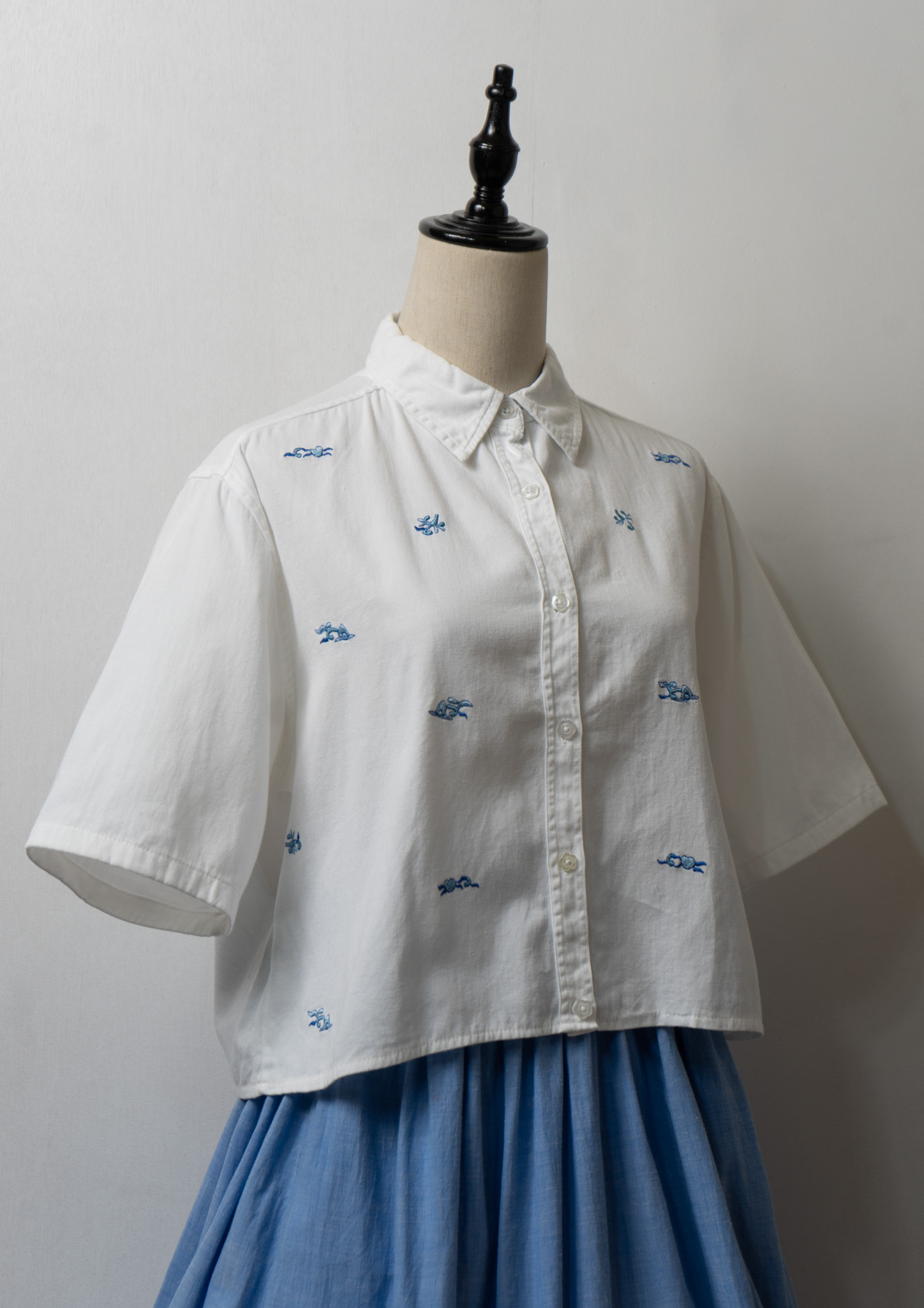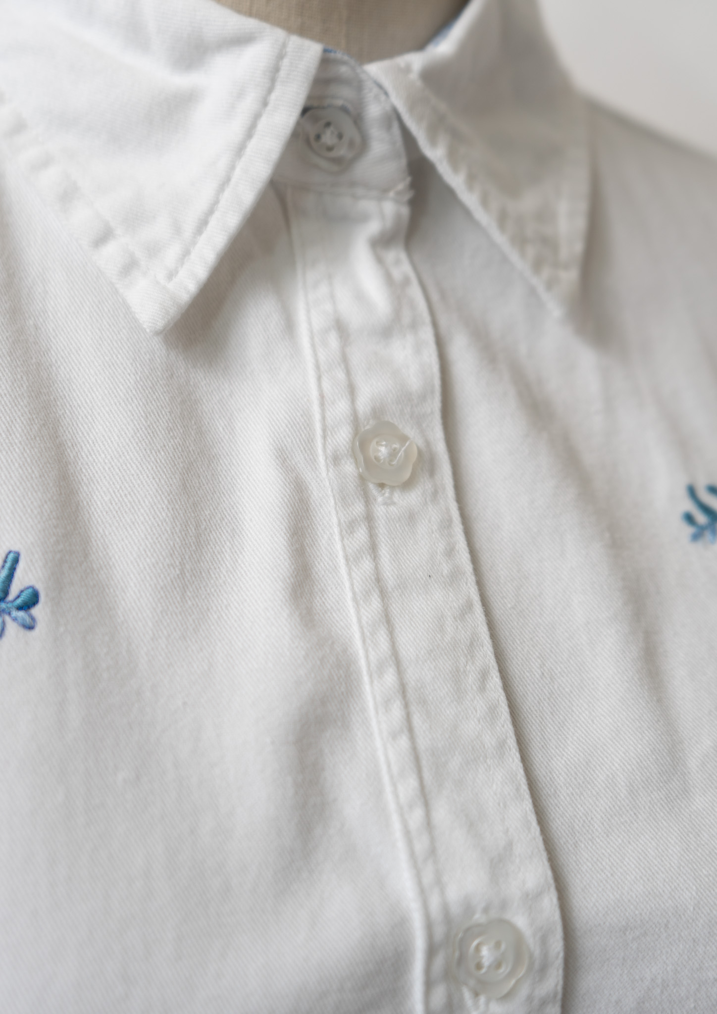 90’s Vine Motif Embroidery Point Beads Design Ivory Blouse