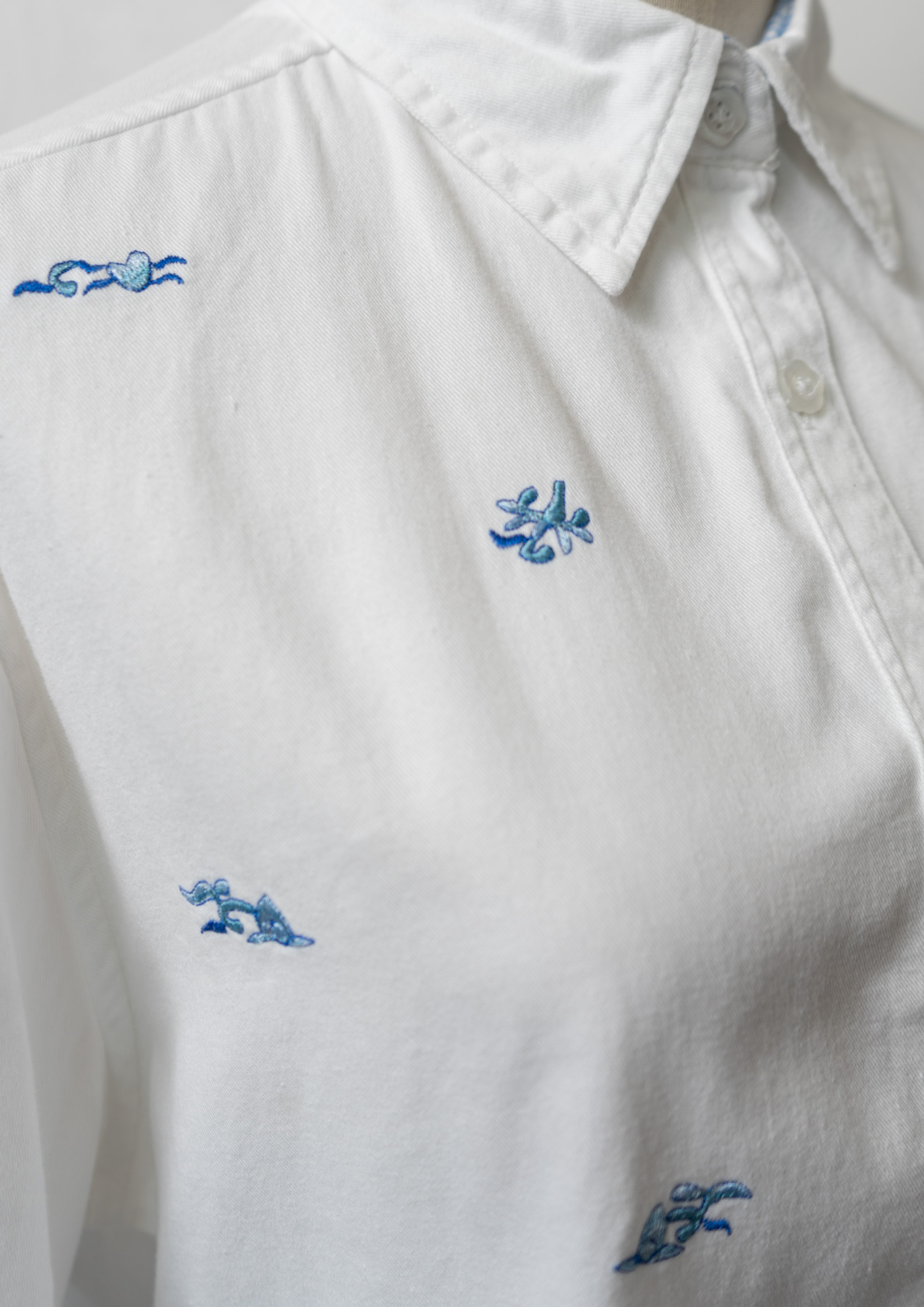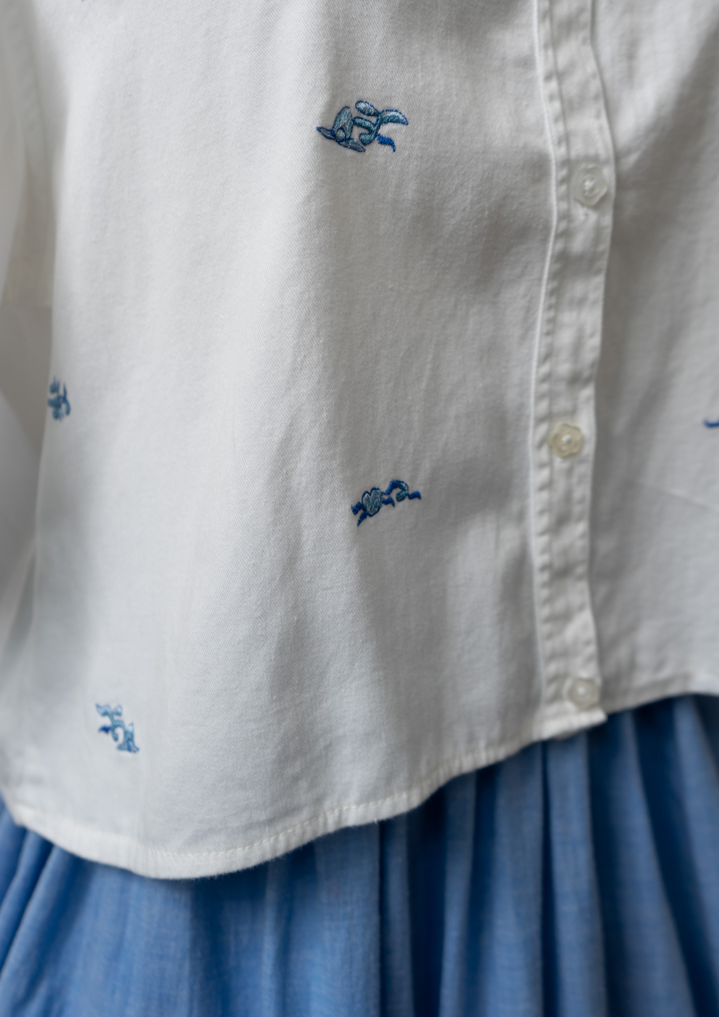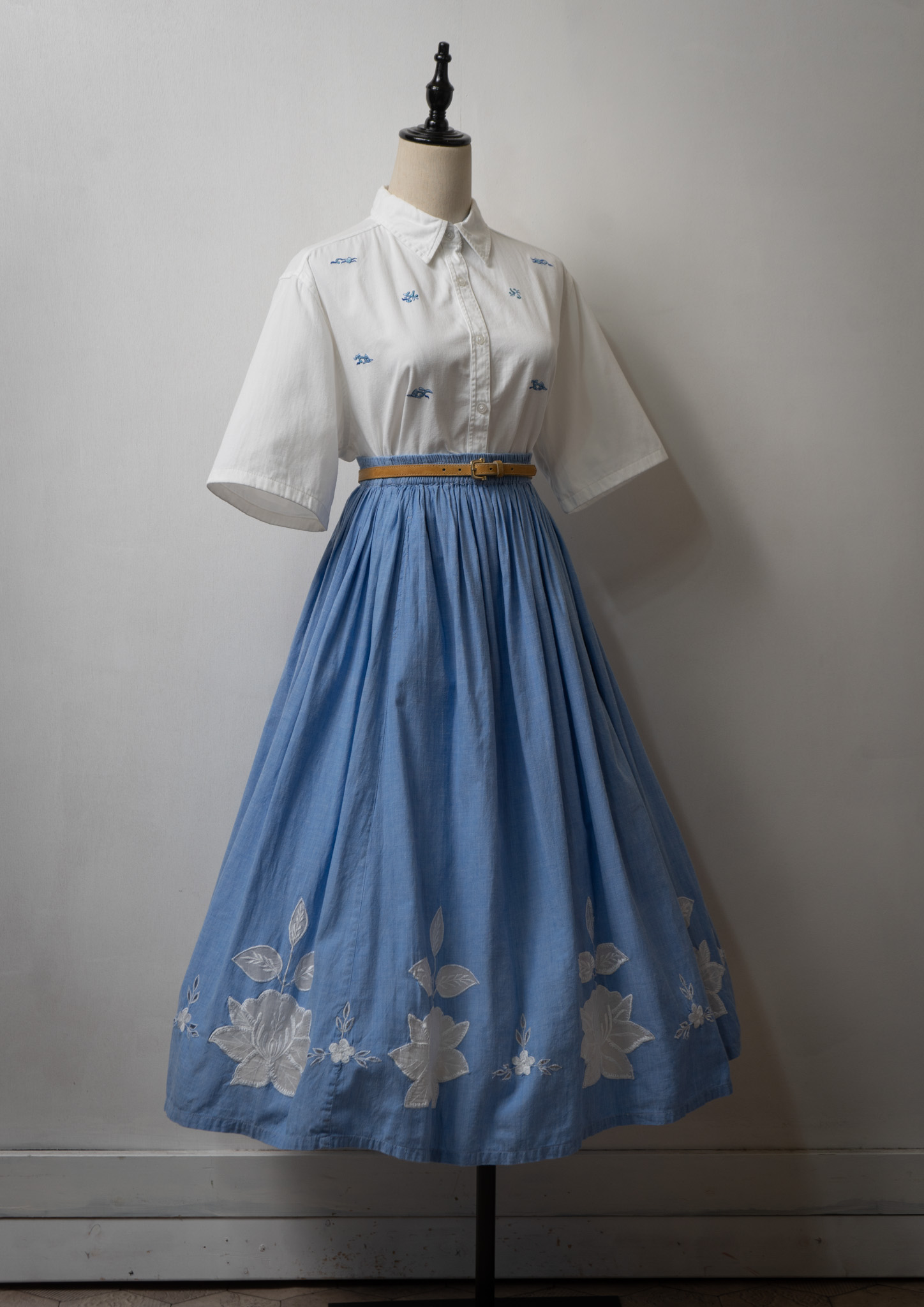 90’s Vine Motif Embroidery Point Beads Design Ivory Blouse
