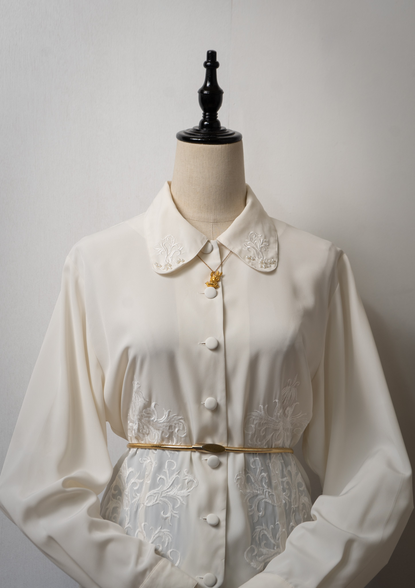 90’s Vine Motif Embroidery Point Beads Design Ivory Blouse