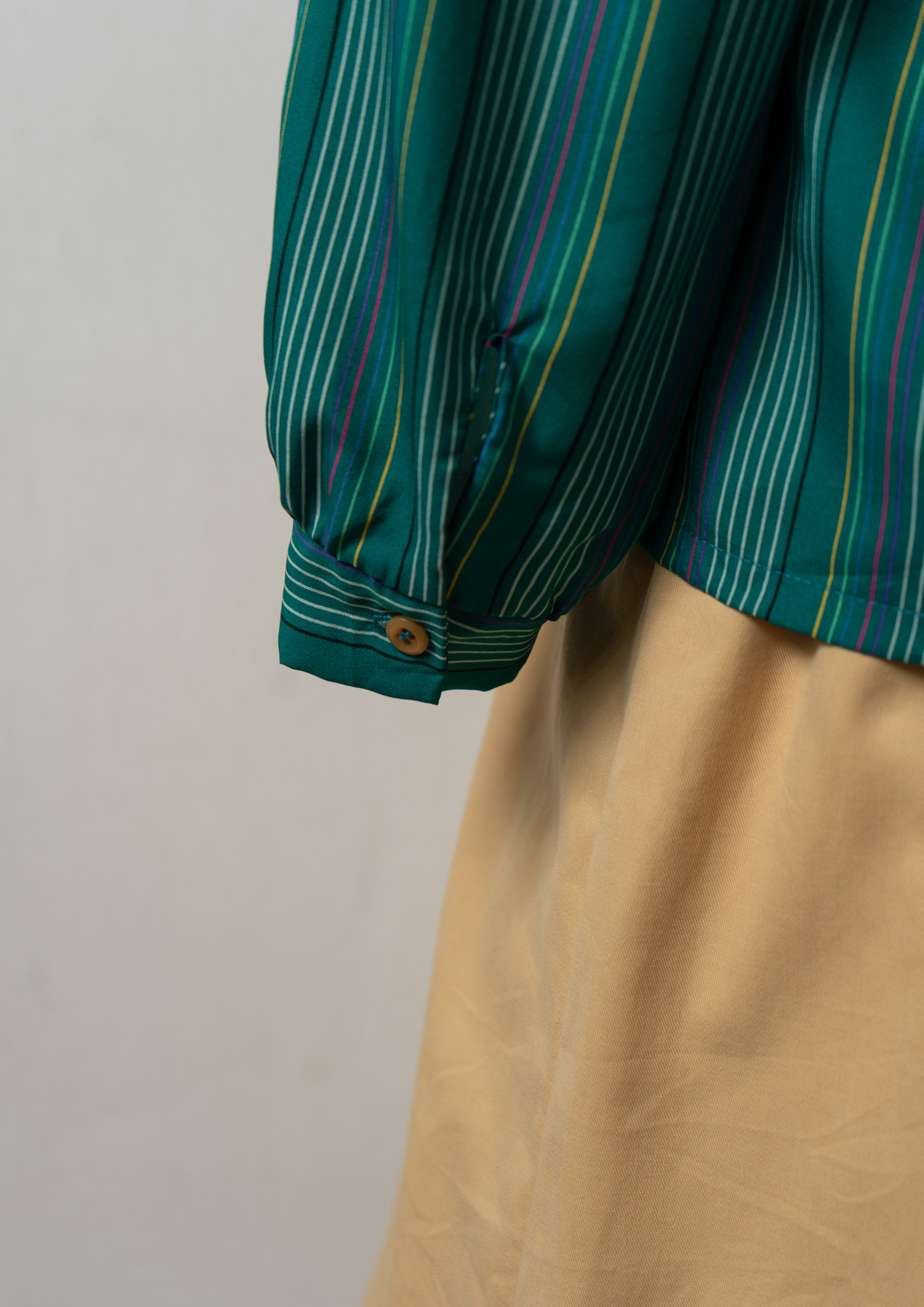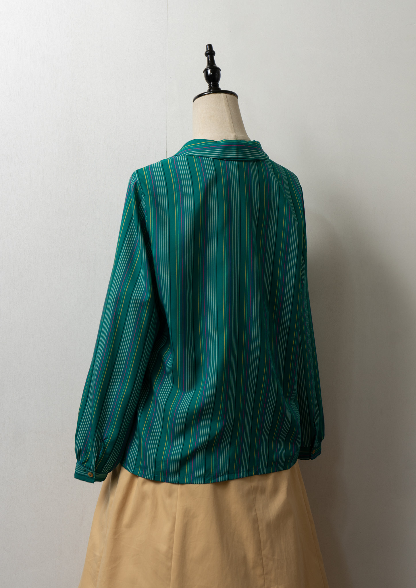 80’s Multi Color Stripe Pattern Green Blouse