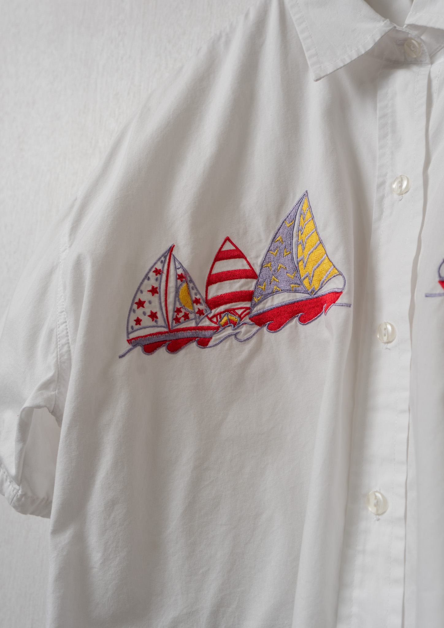 Yacht Embroidery Cropped Blouse