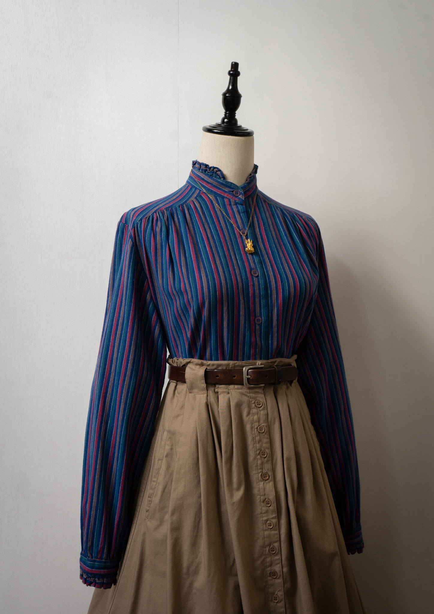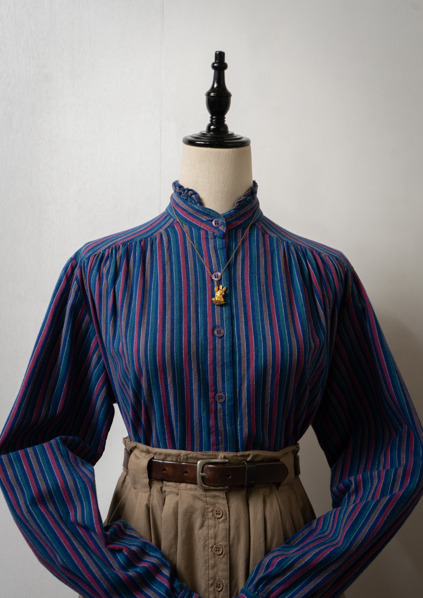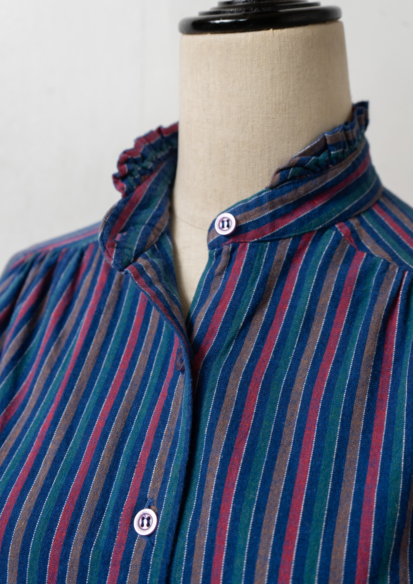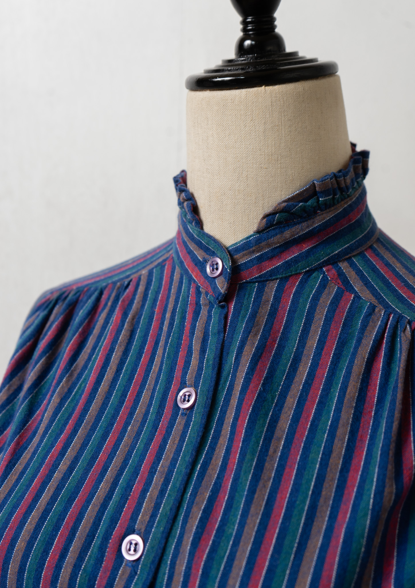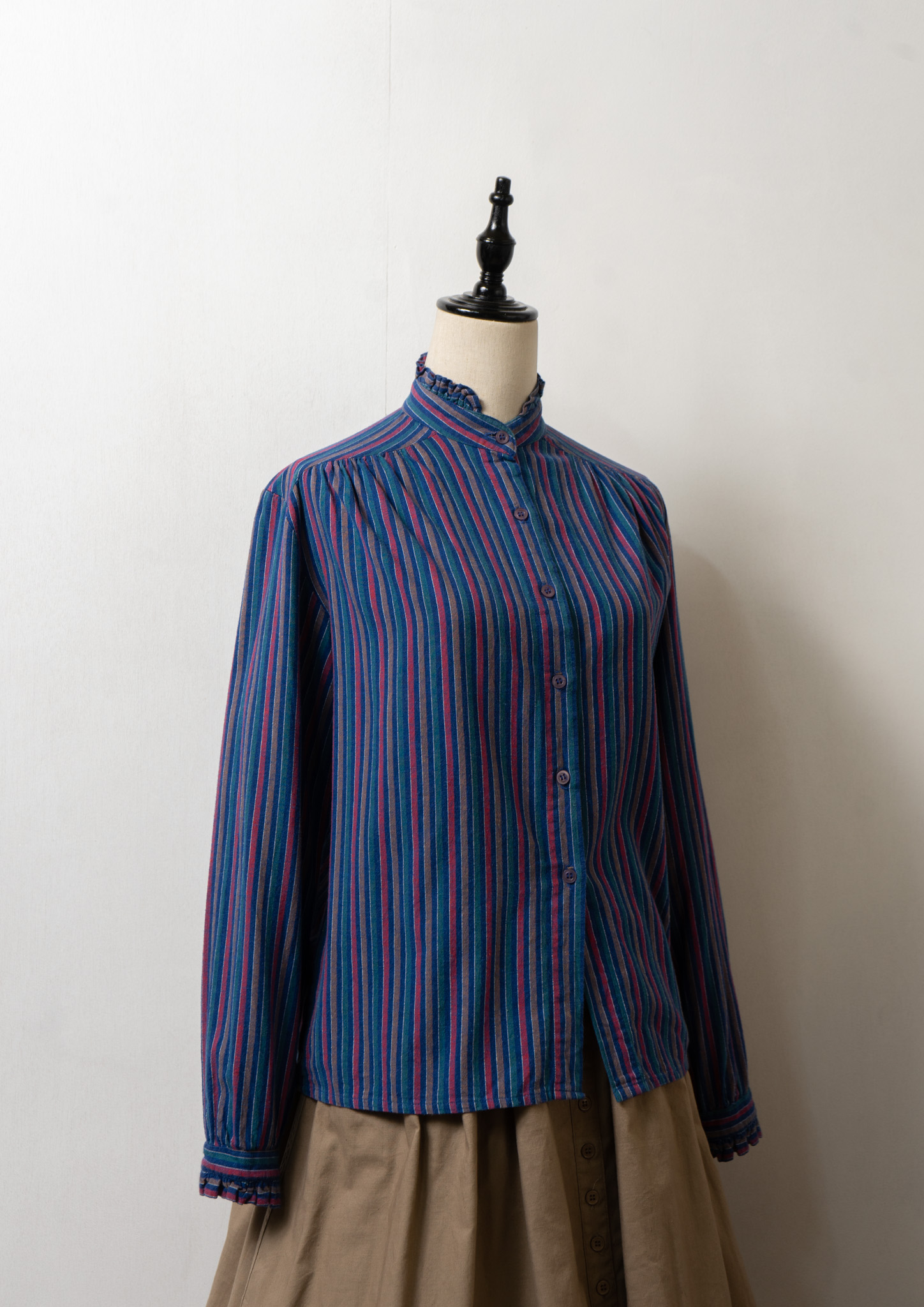 80’s Multi Color Stripe Pattern Stand Collar Blouse