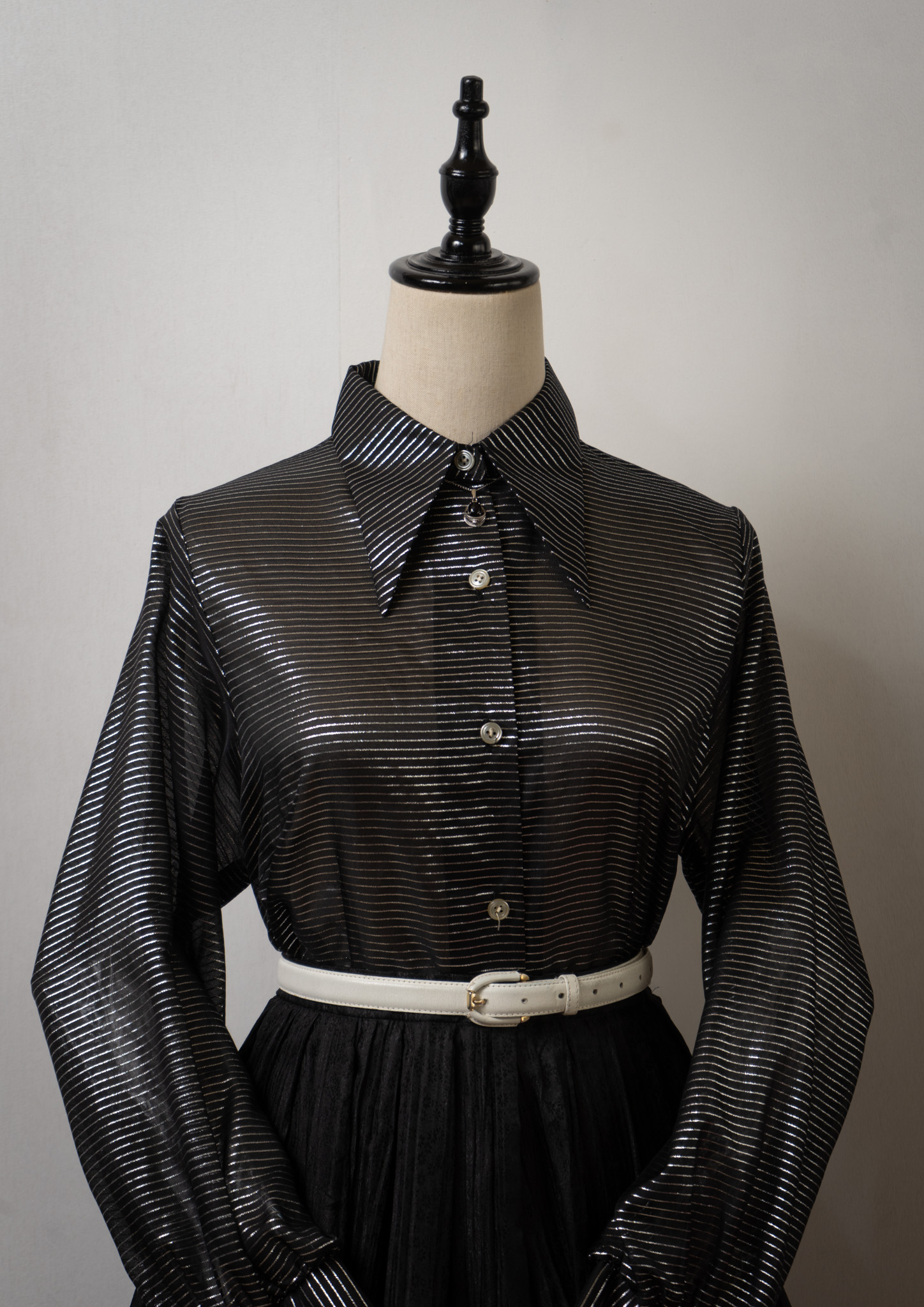 70's Germany Silver Border Pattern Black Blouse