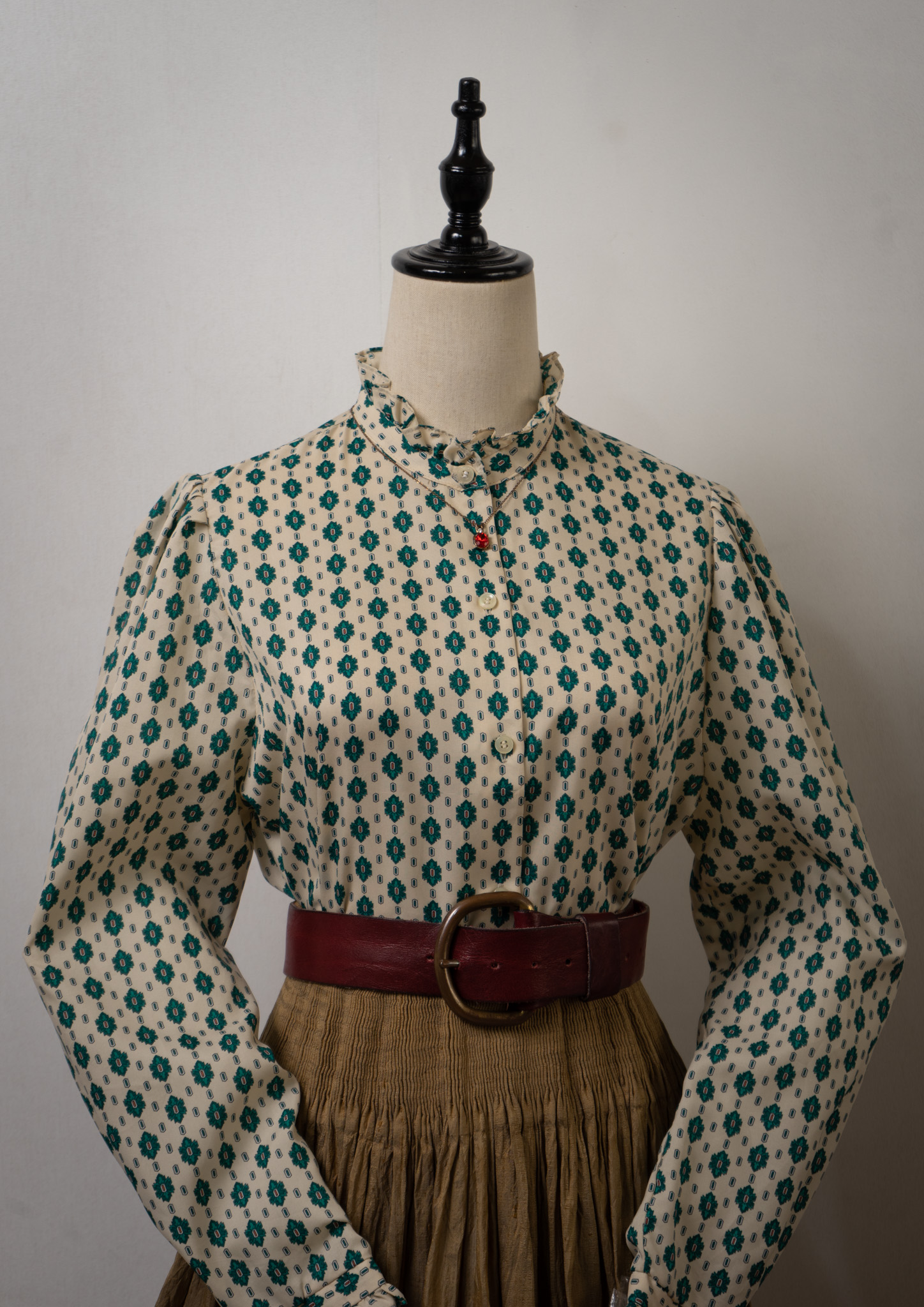 80's Geometric Medallion Pattern Frill Neck Blouse