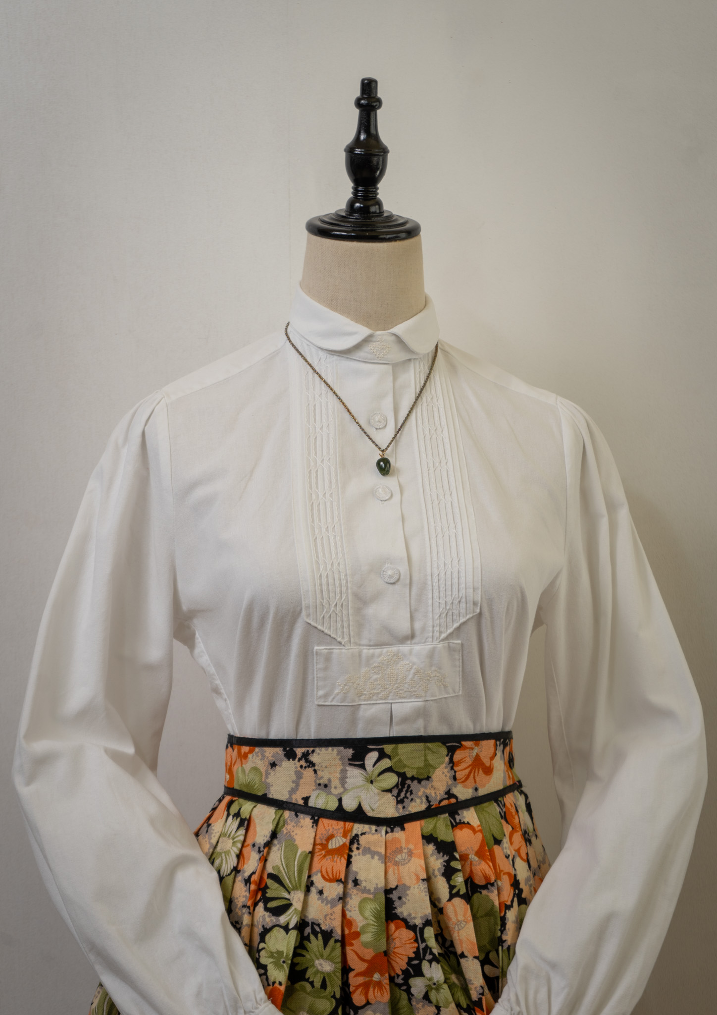 80's Embroidery × Tuck Design White Tyrol Blouse
