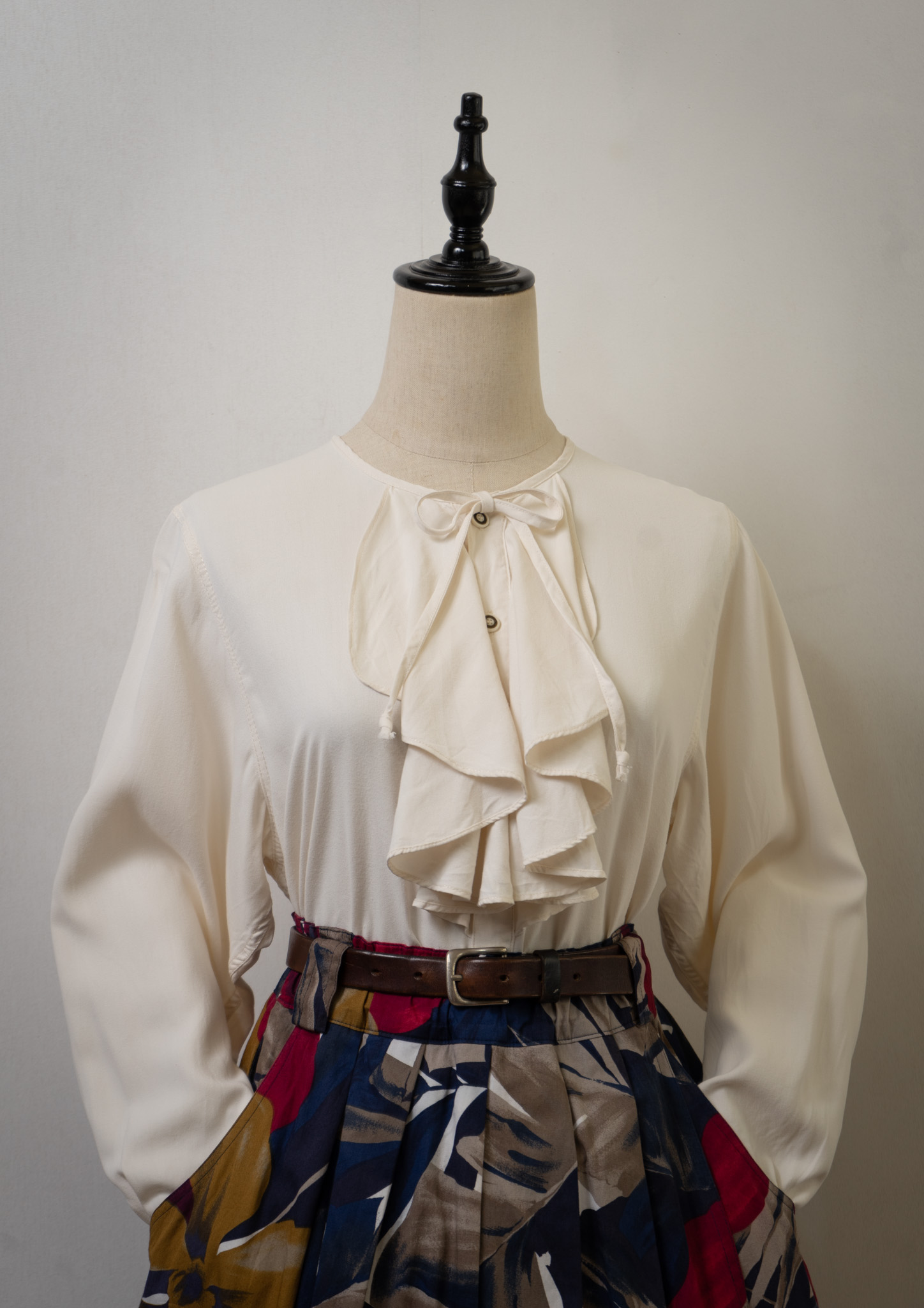 80~90's Bow-tie × Jabot Like Collar Ivory Blouse