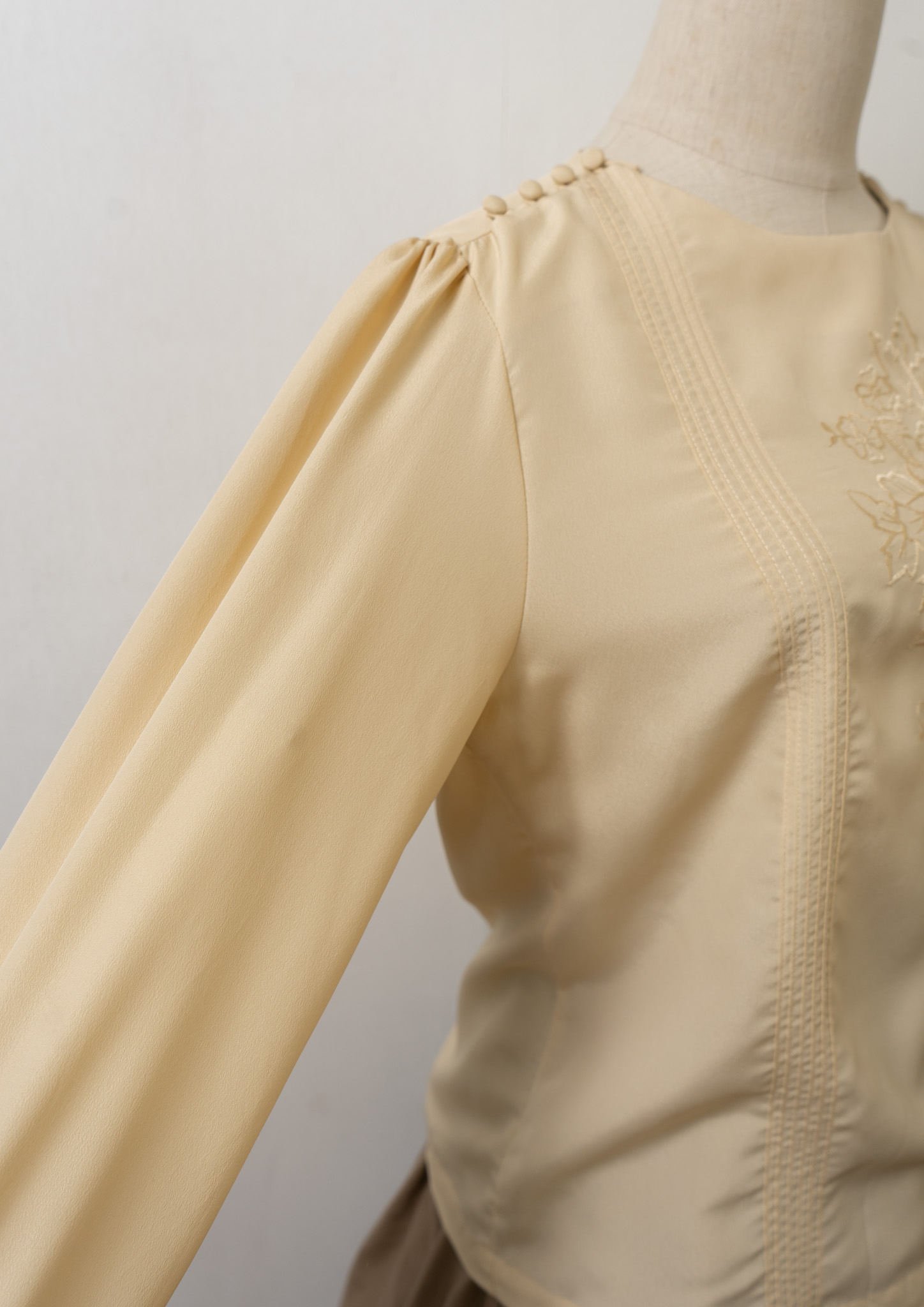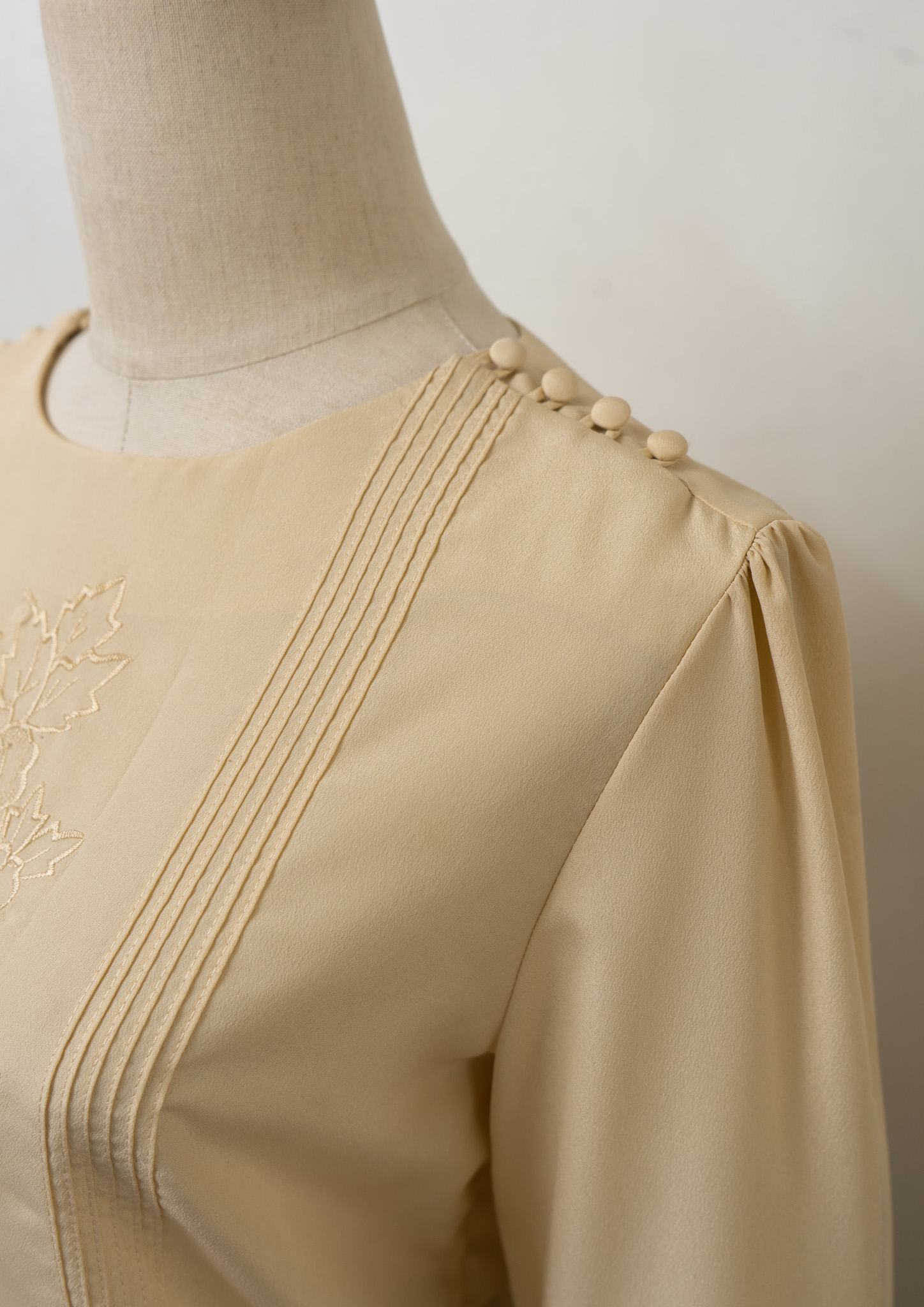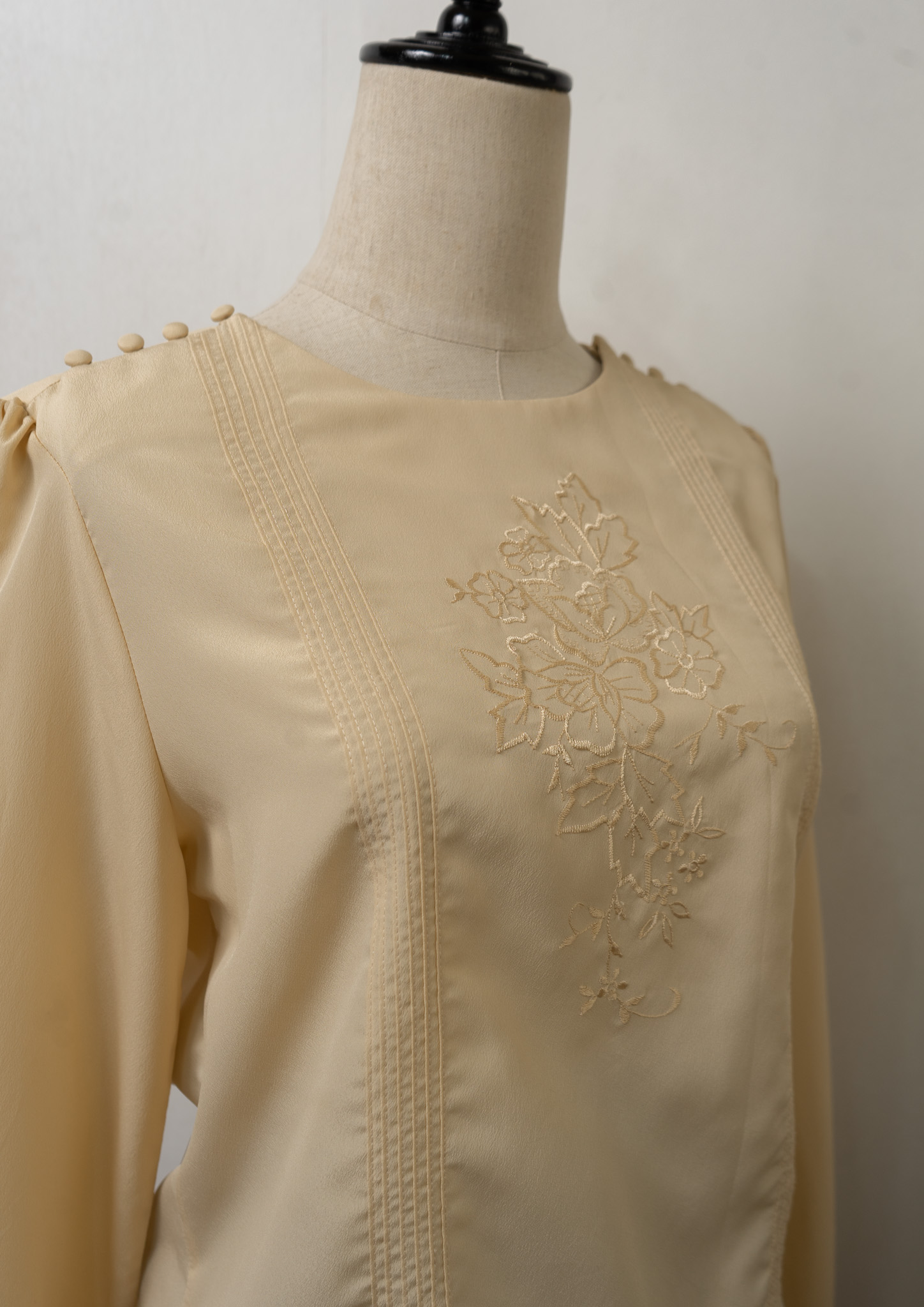 80’s Pin Tuck × Shoulder buttons Design Flower Embroidery Blouse