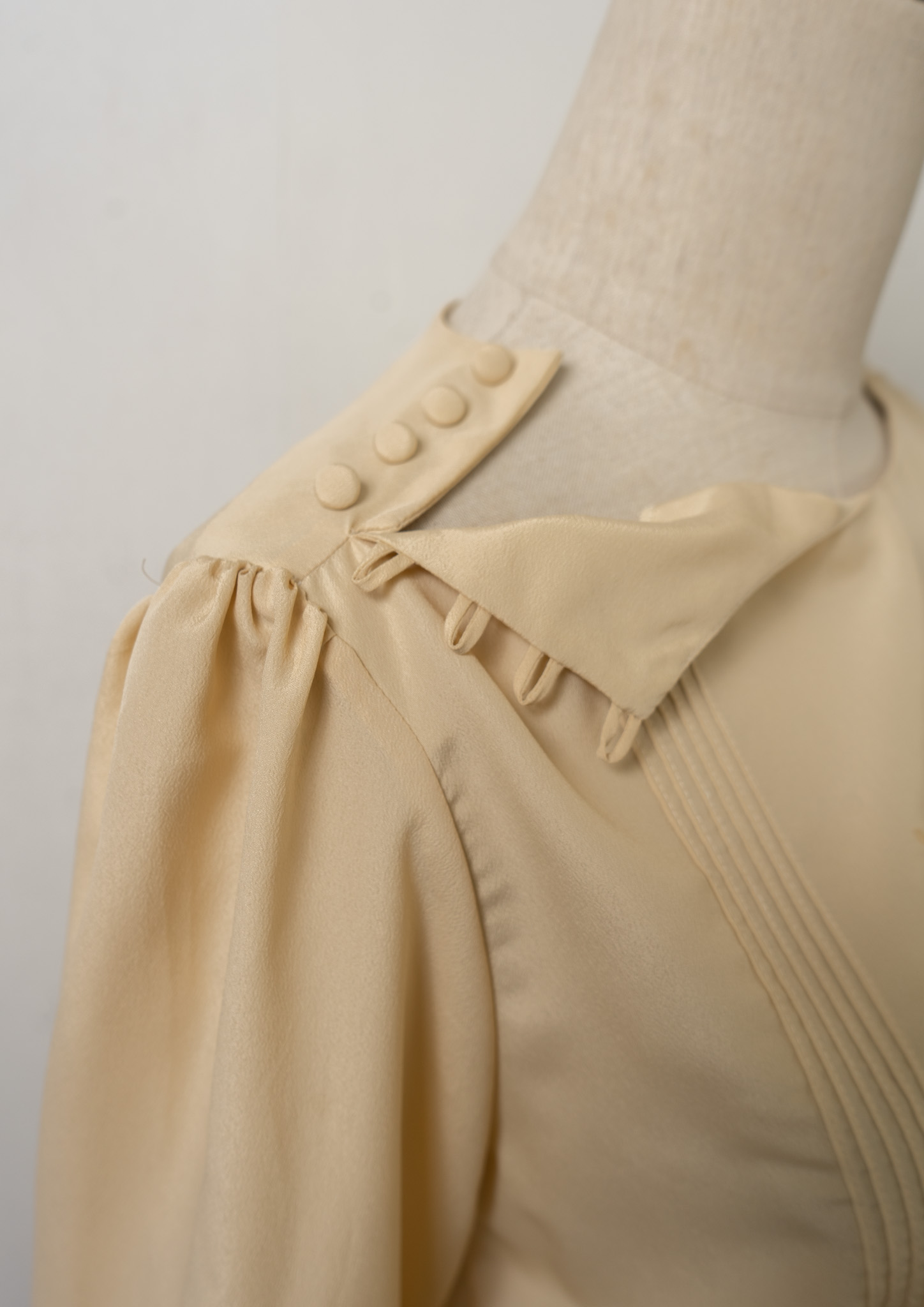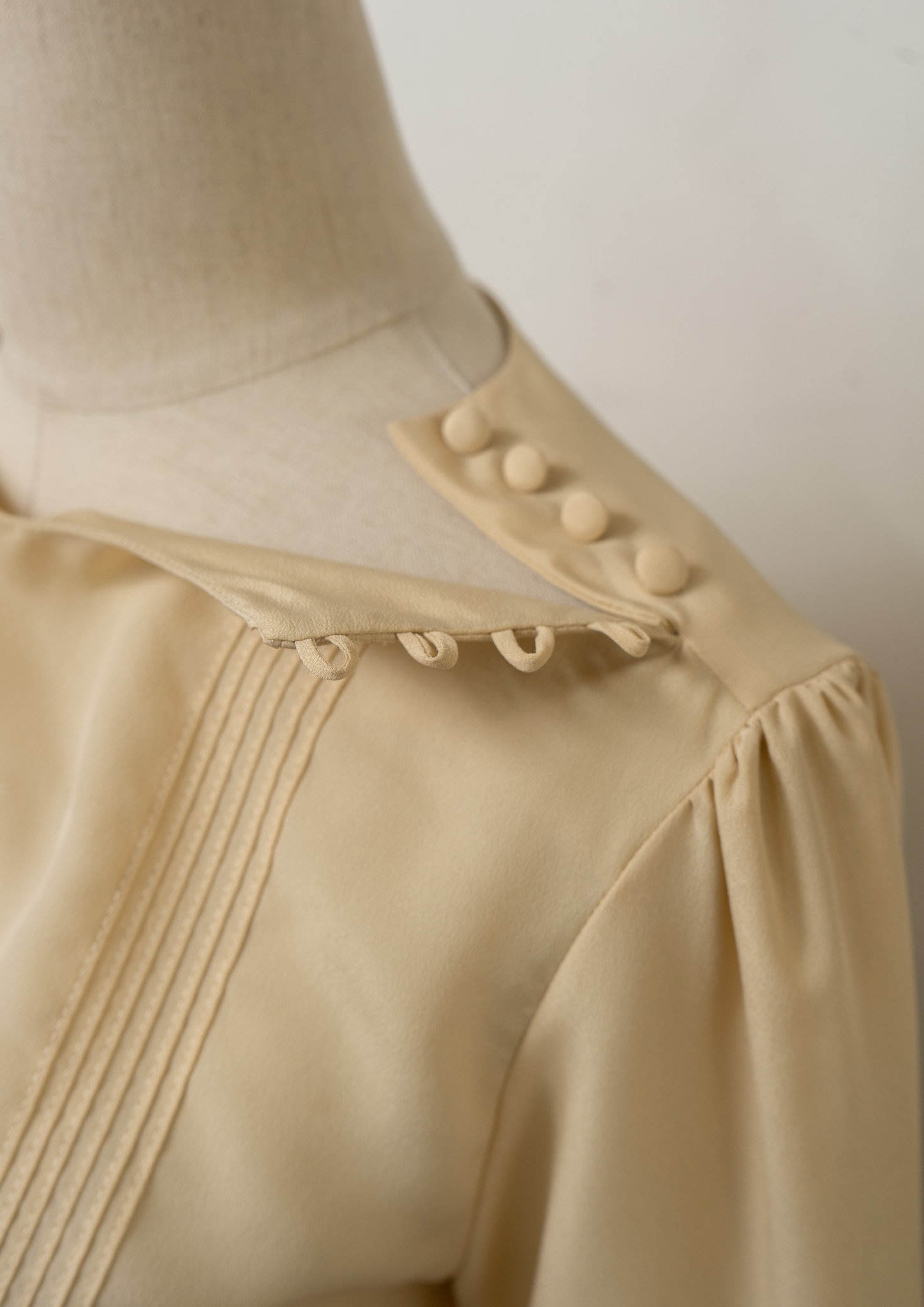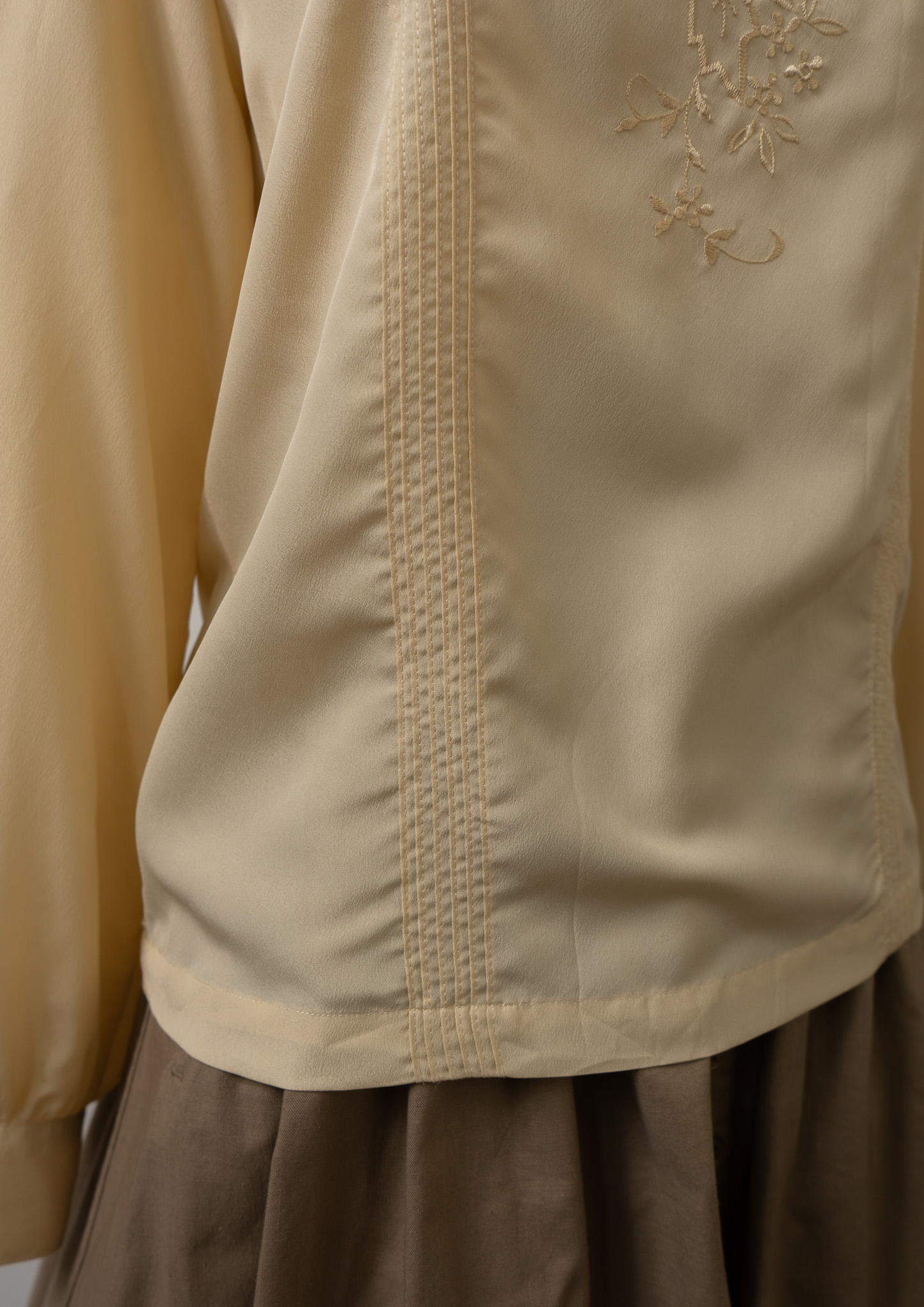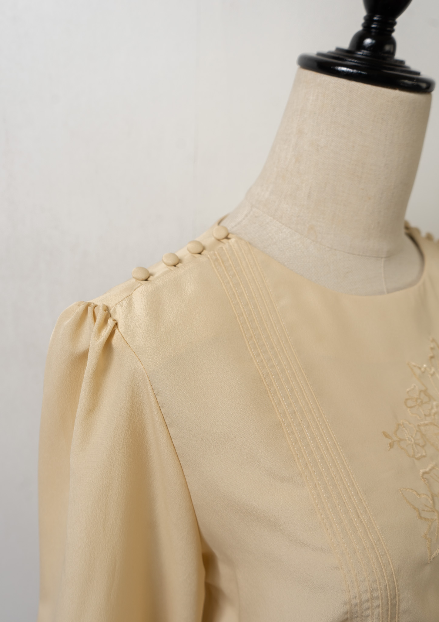 80’s Pin Tuck × Shoulder buttons Design Flower Embroidery Blouse
