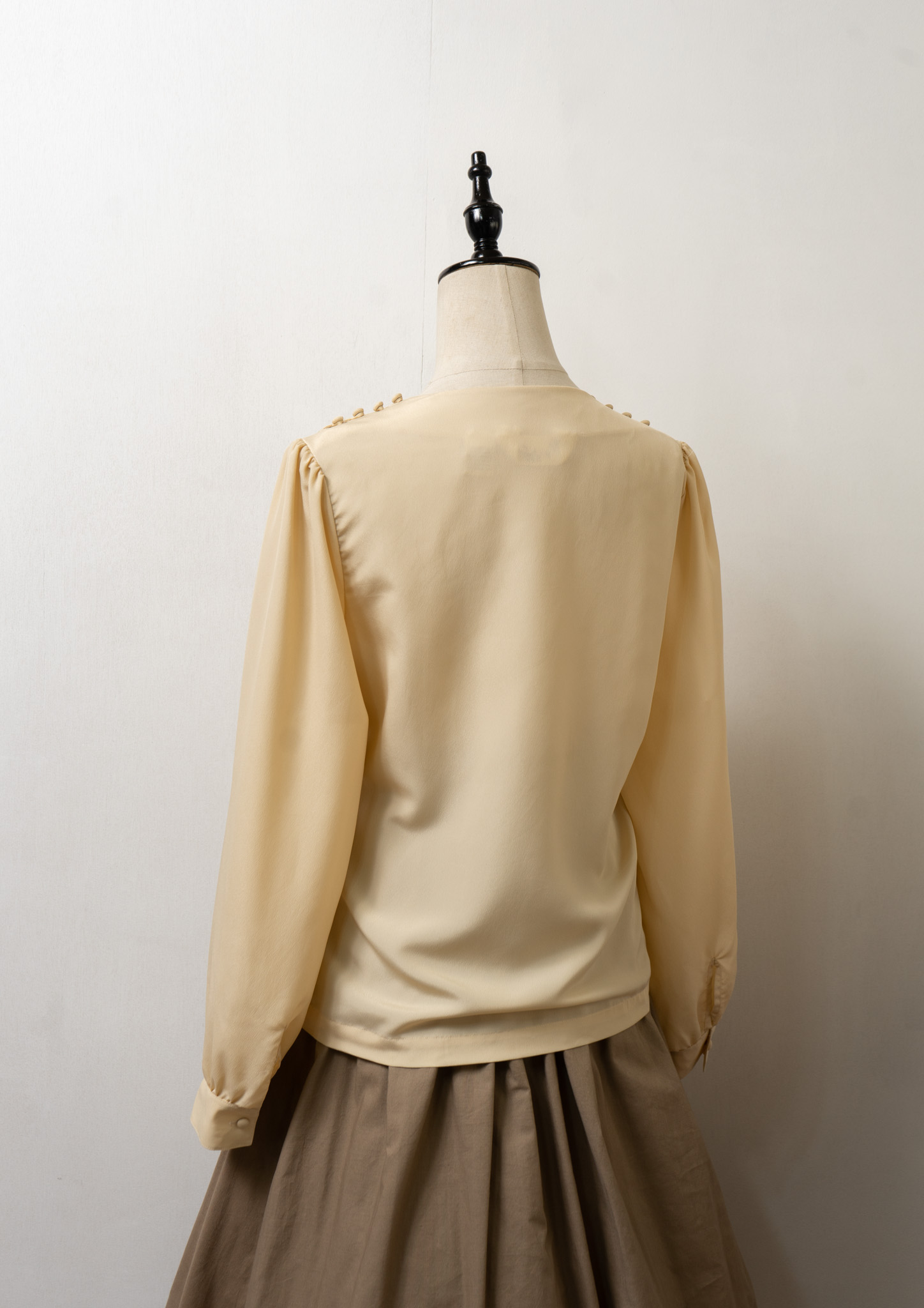 80~90's Bow-tie × Jabot Like Collar Ivory Blouse