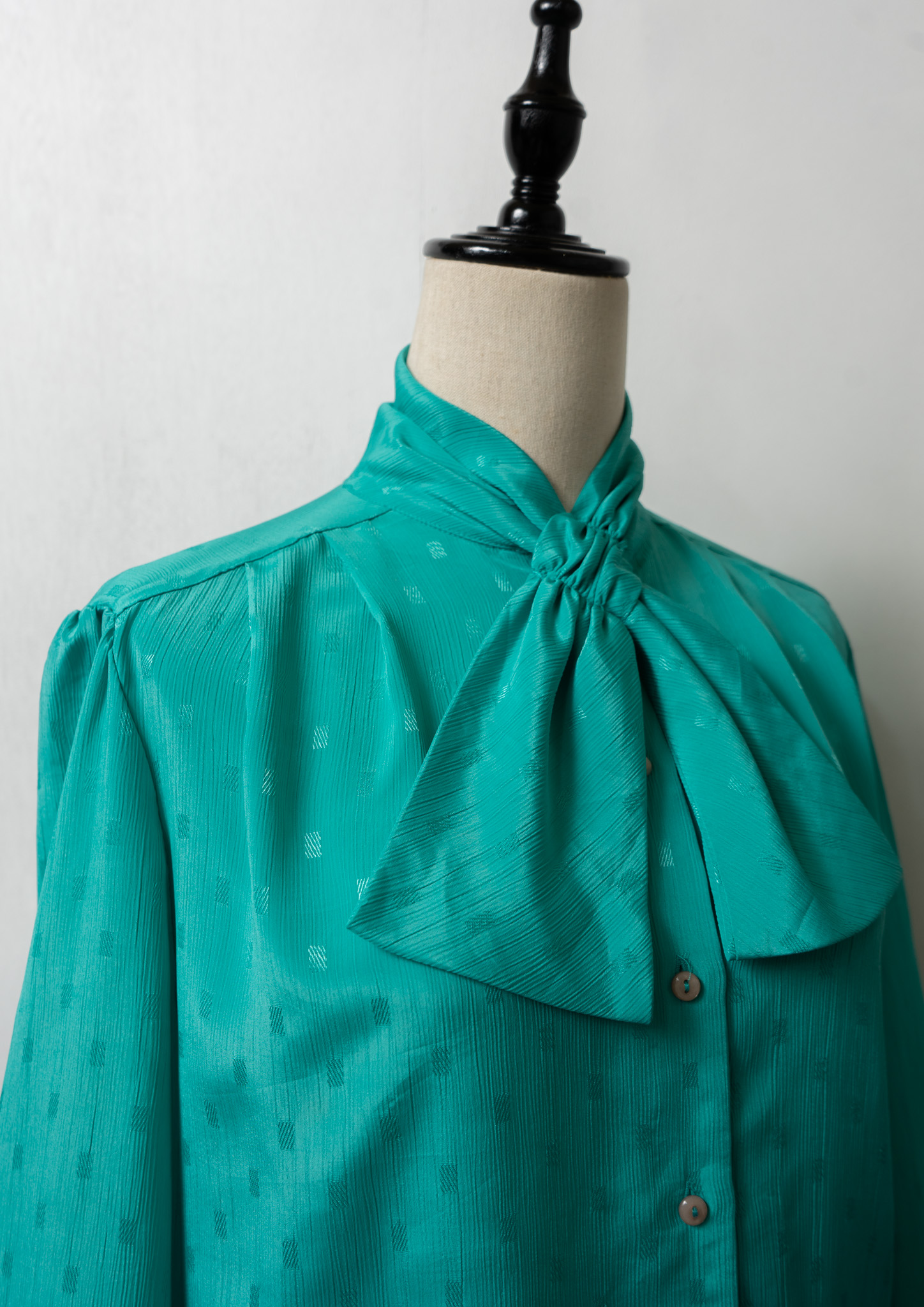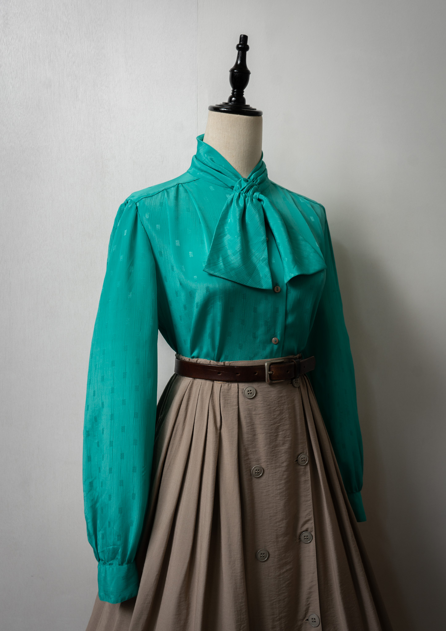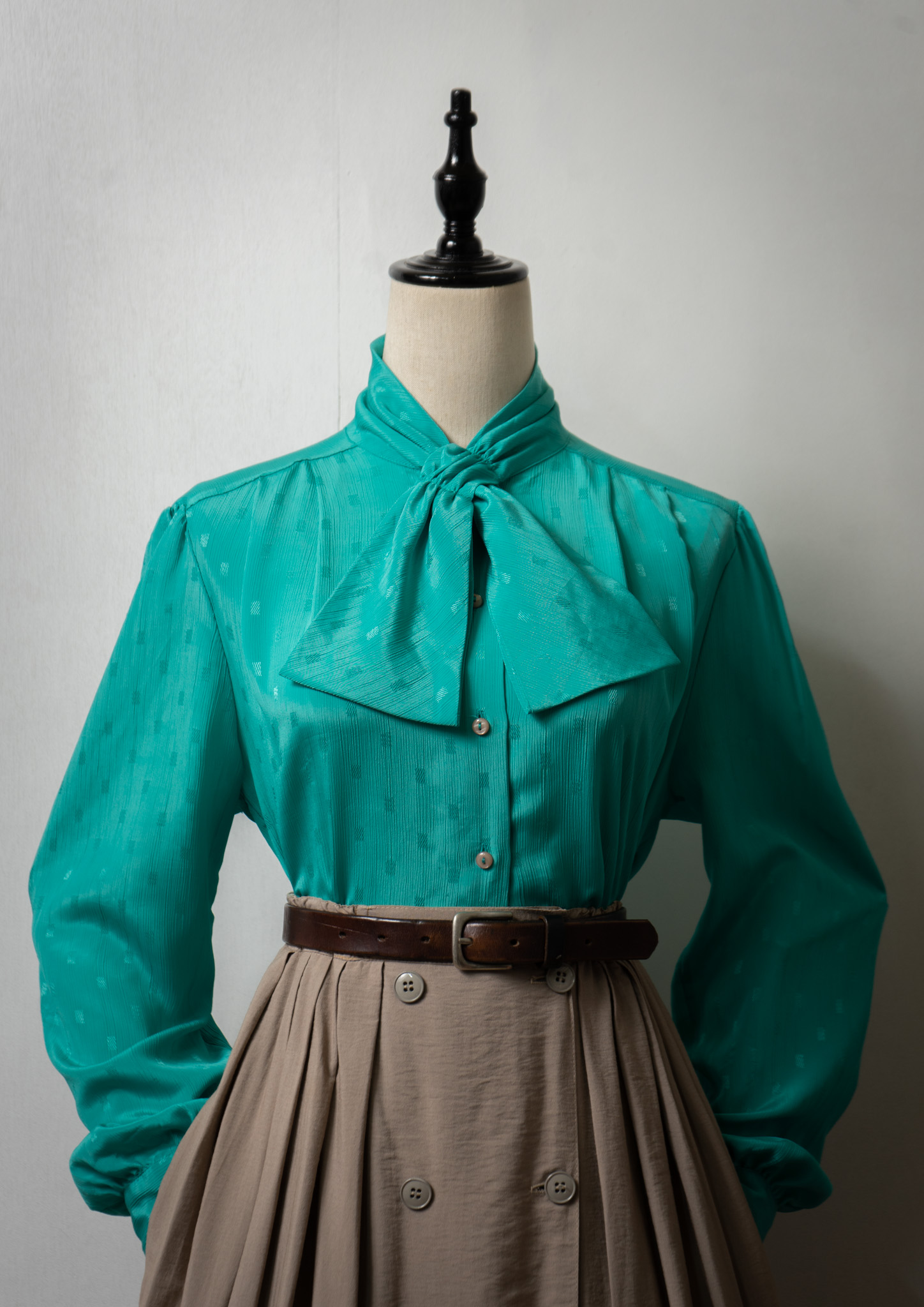 80~90's Bow-tie × Jabot Like Collar Ivory Blouse