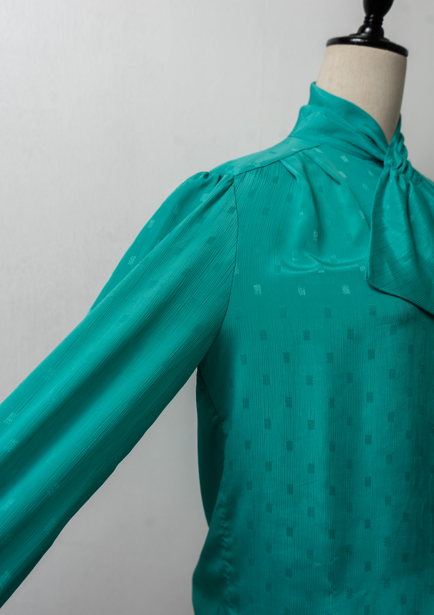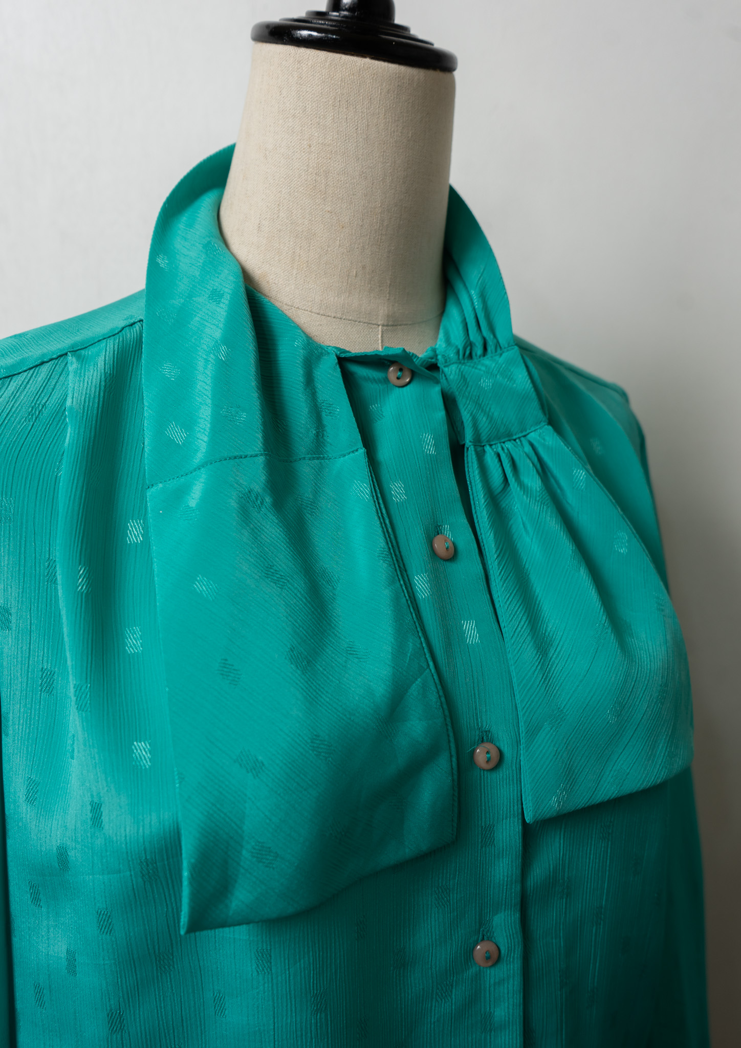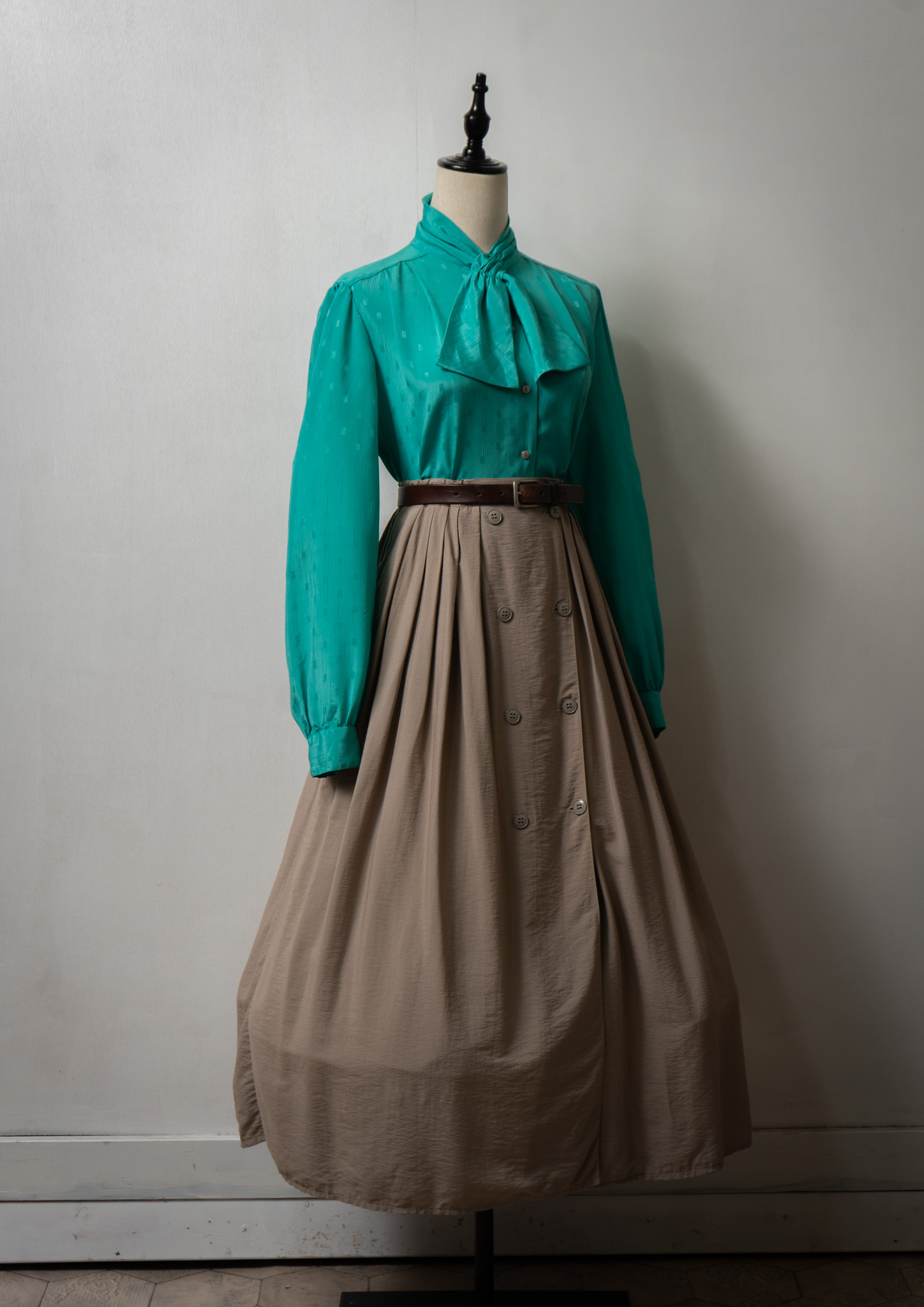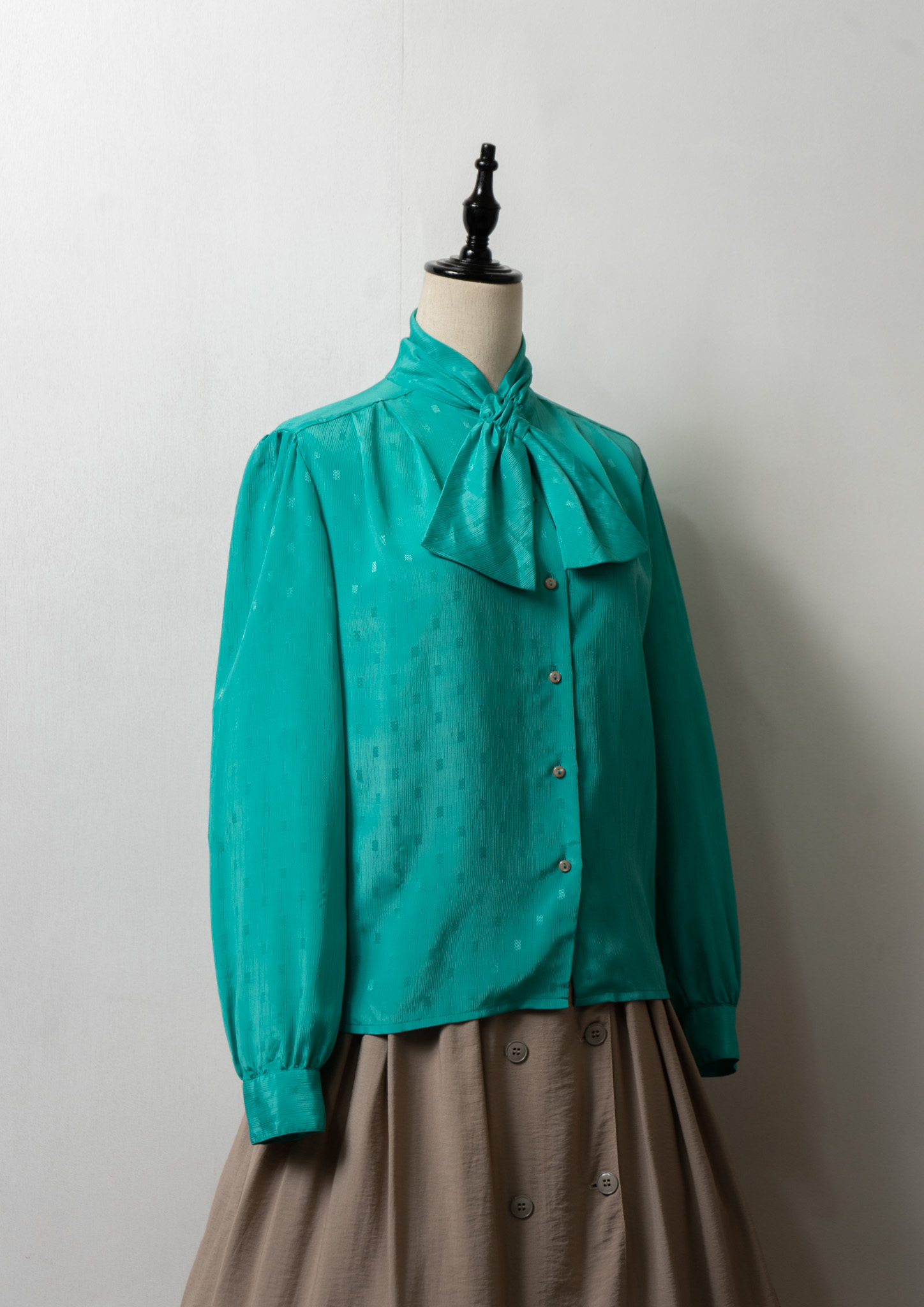 80~90's Bow-tie × Jabot Like Collar Ivory Blouse