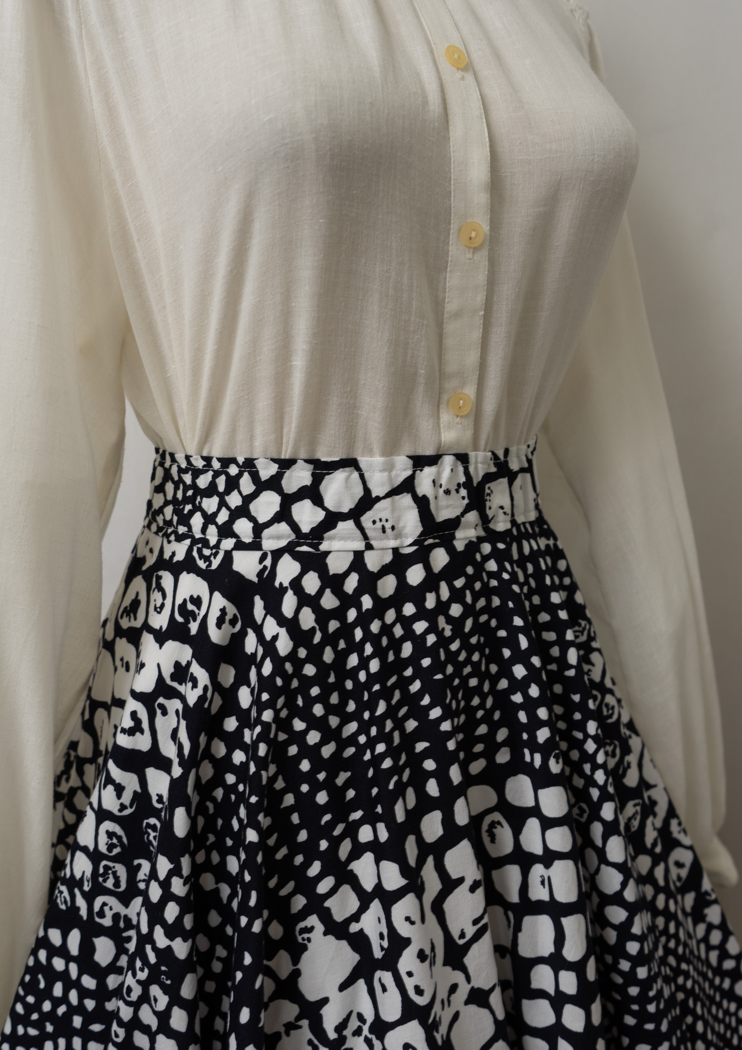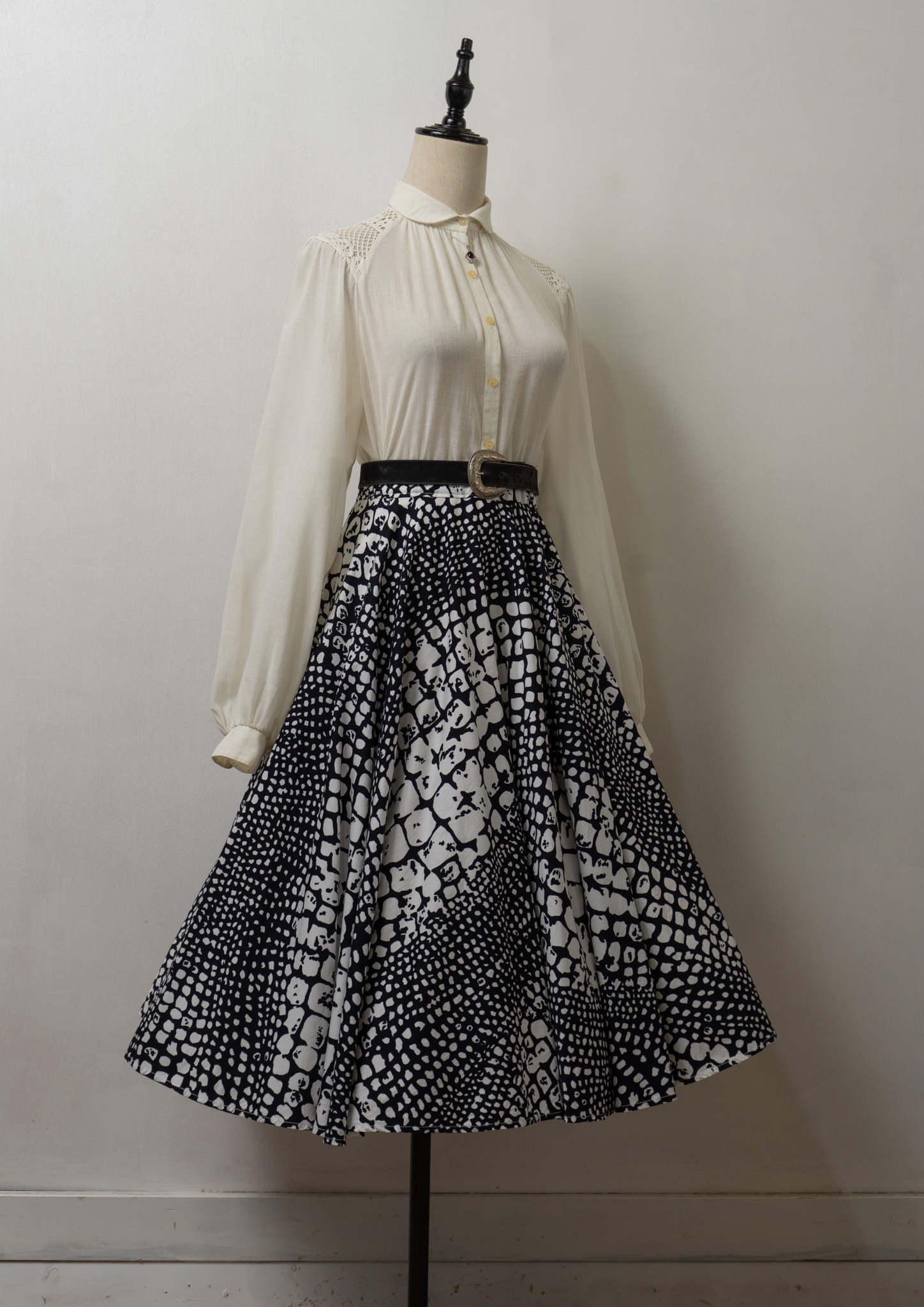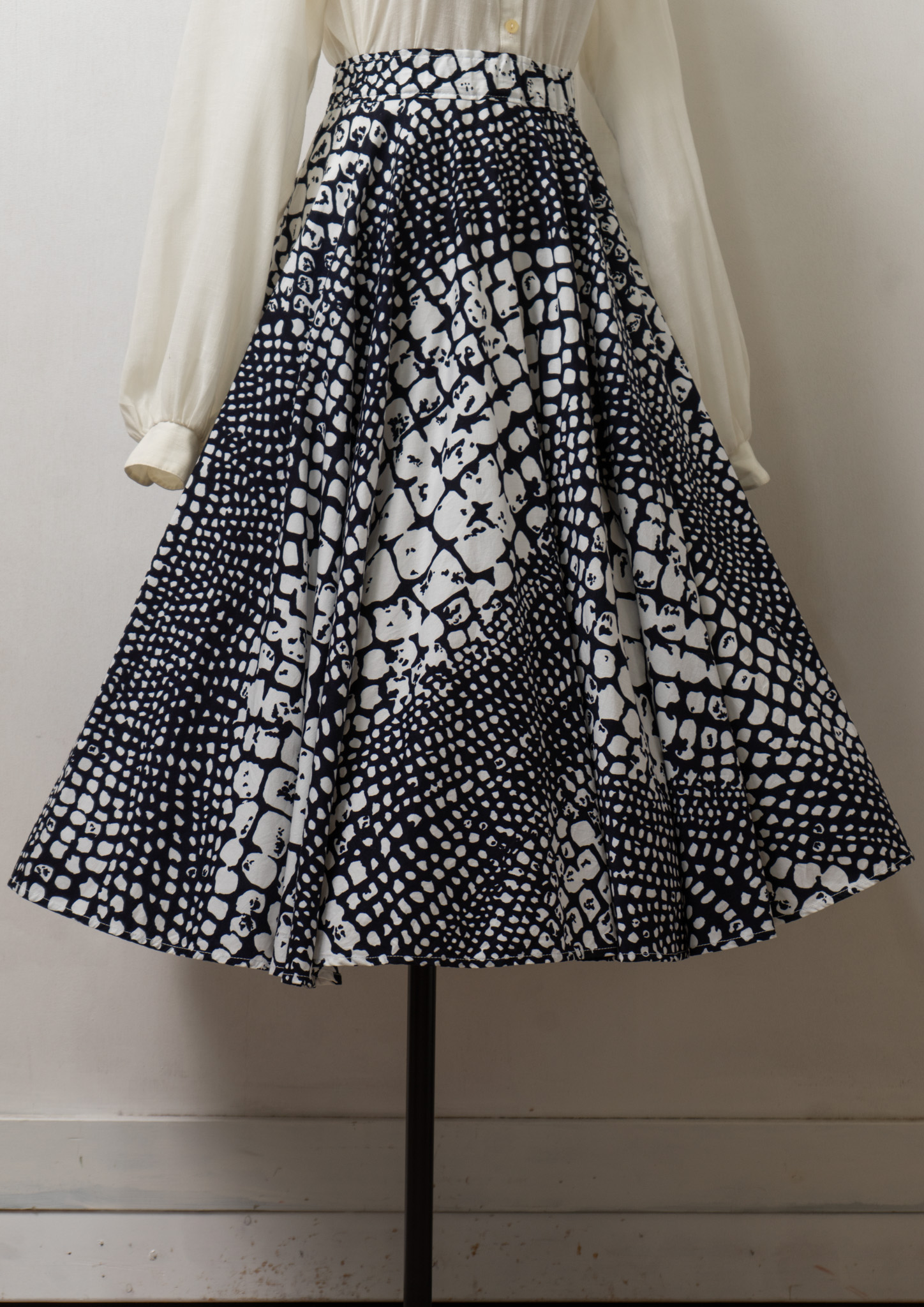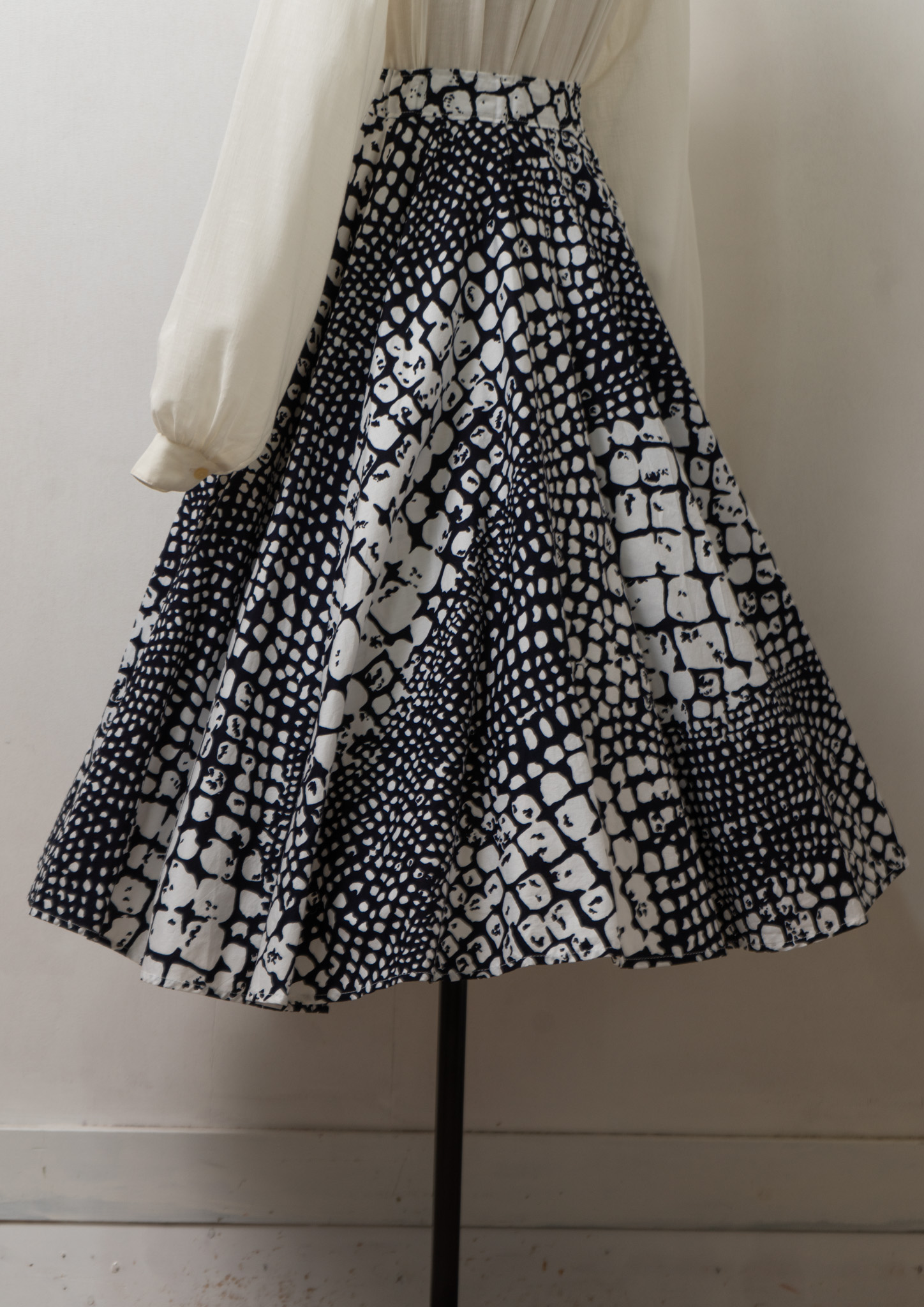 90’s Euro Black × White Art Pattern Circular Skirt