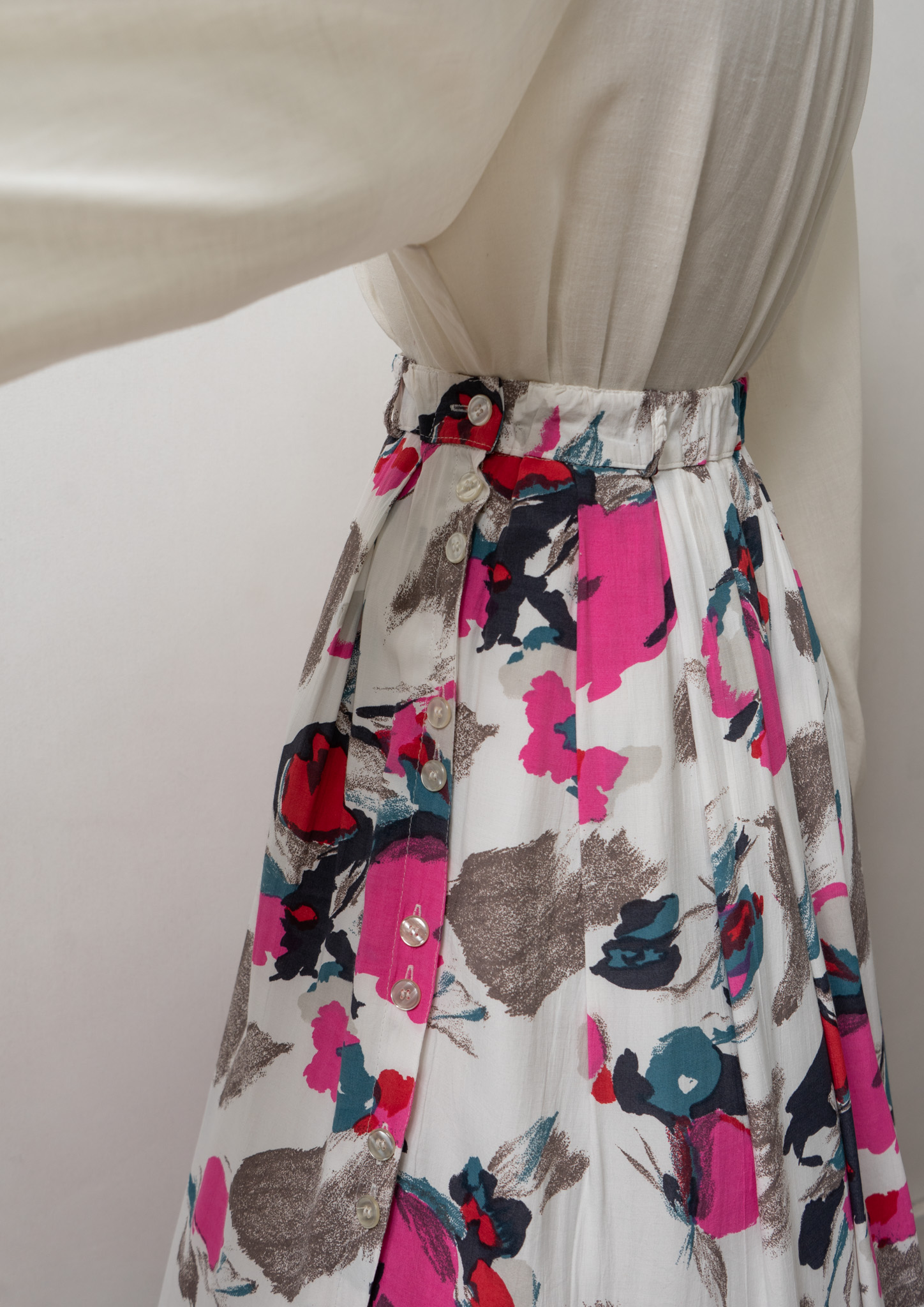 90’s Euro Scarf Like Pattern Tuck Design Skirt