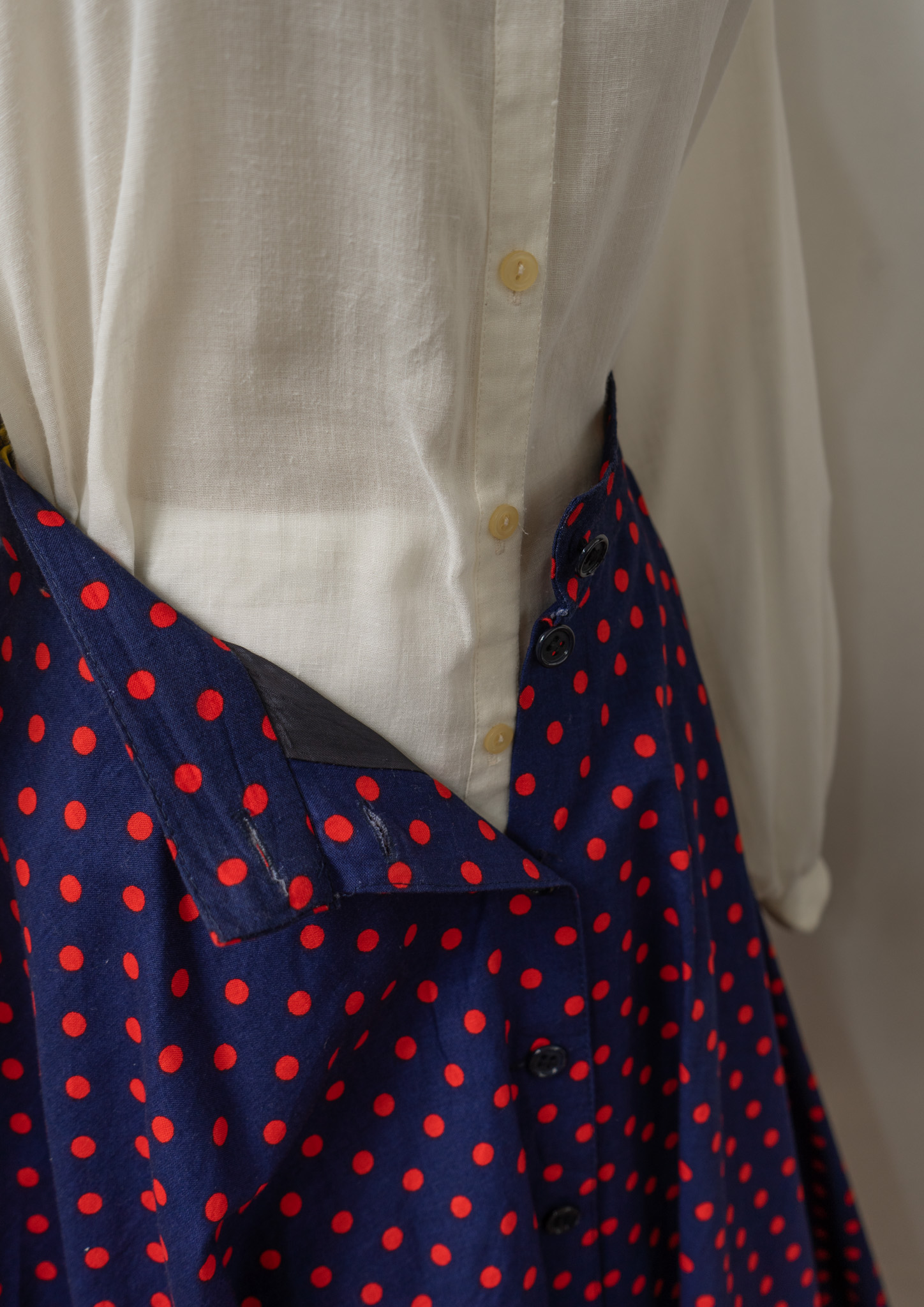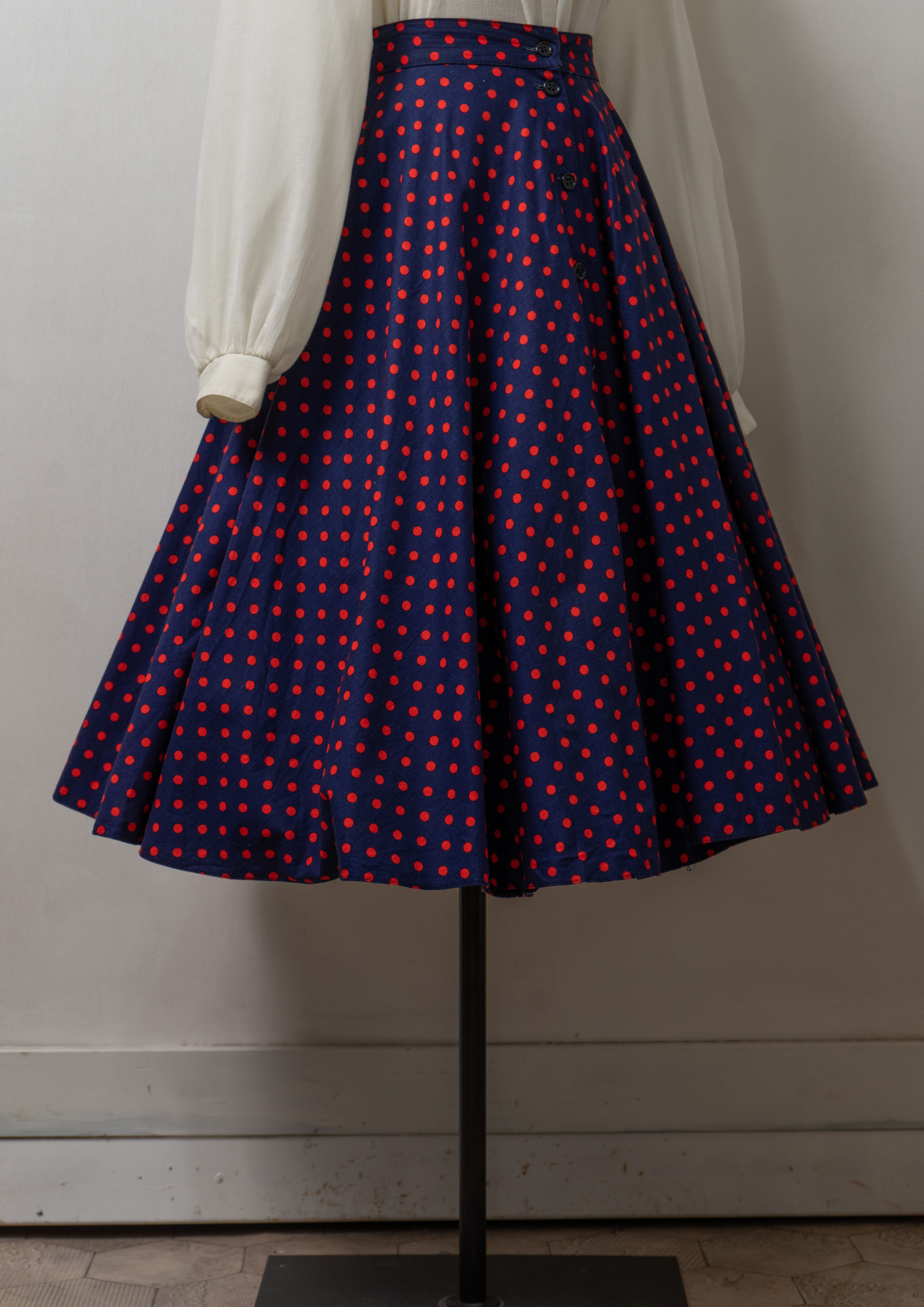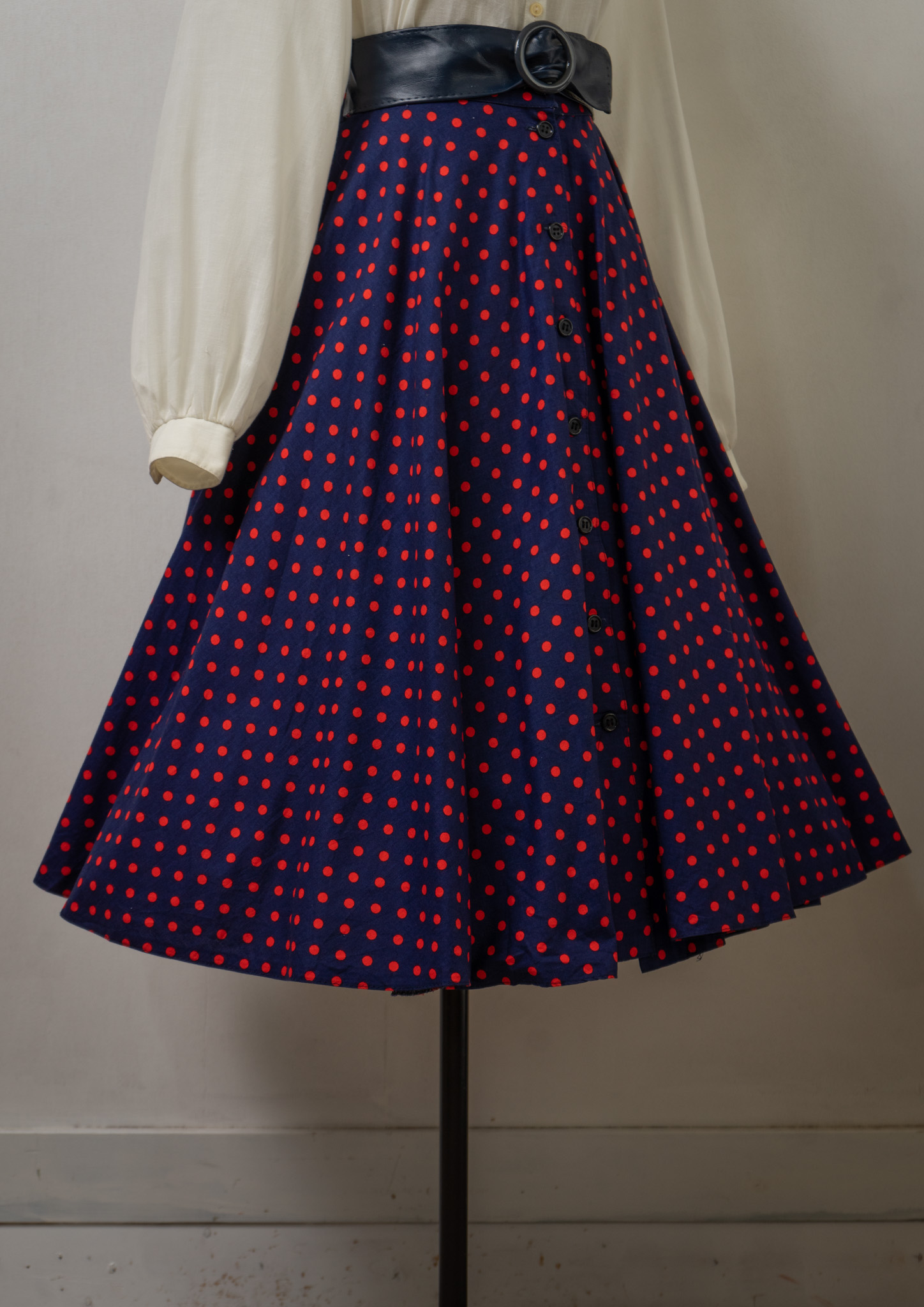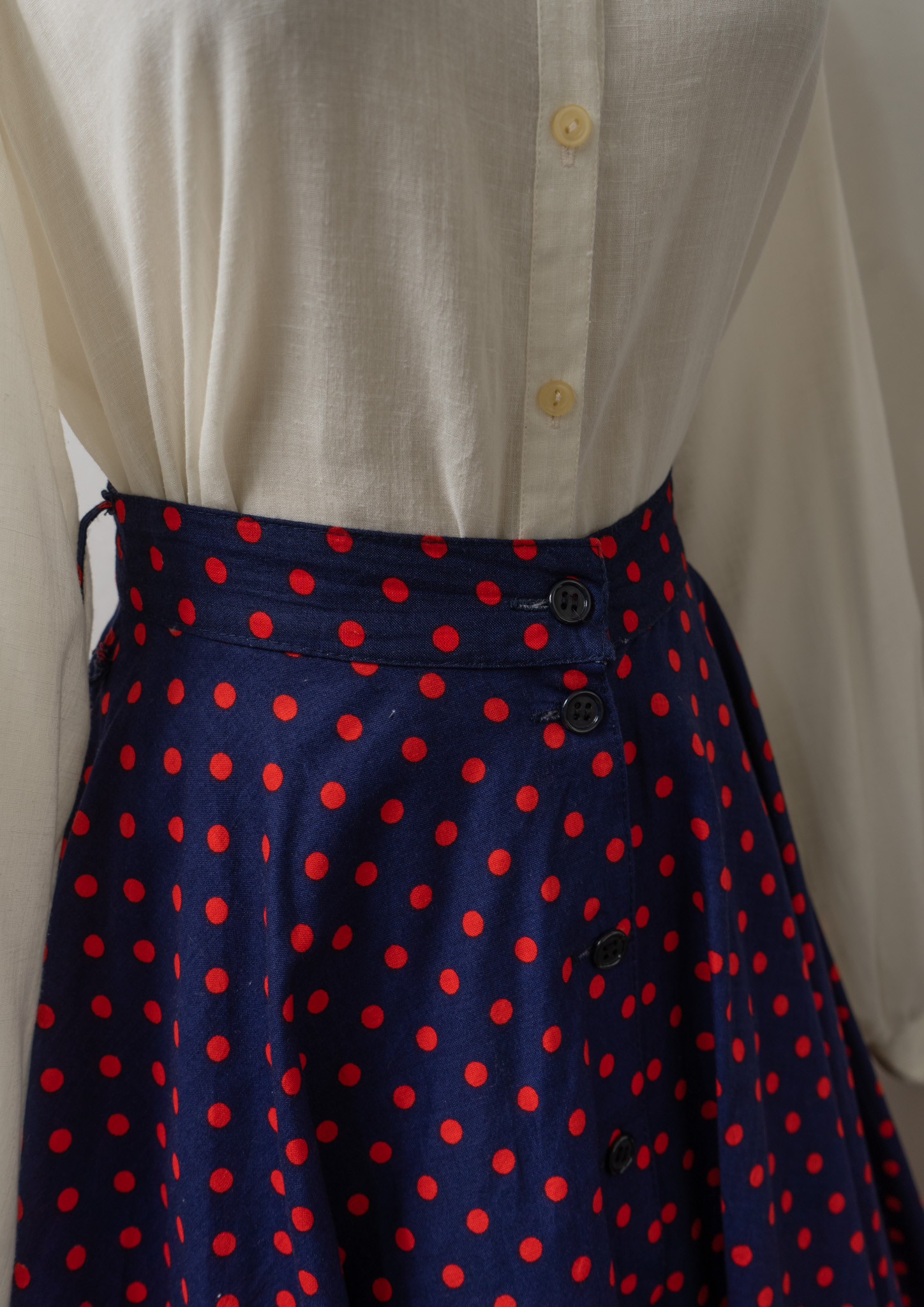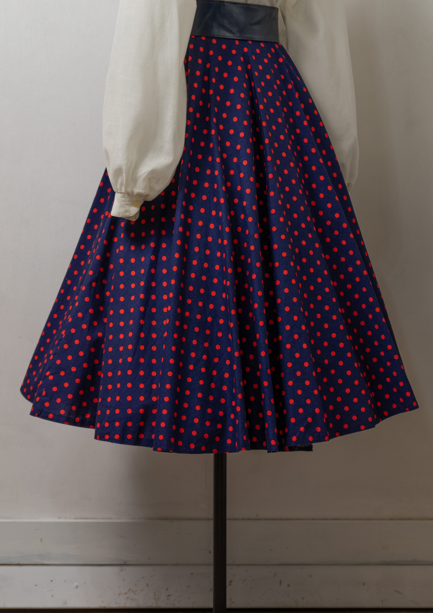 70’s C&A Red Dot Pattern Navy Circular Skirt