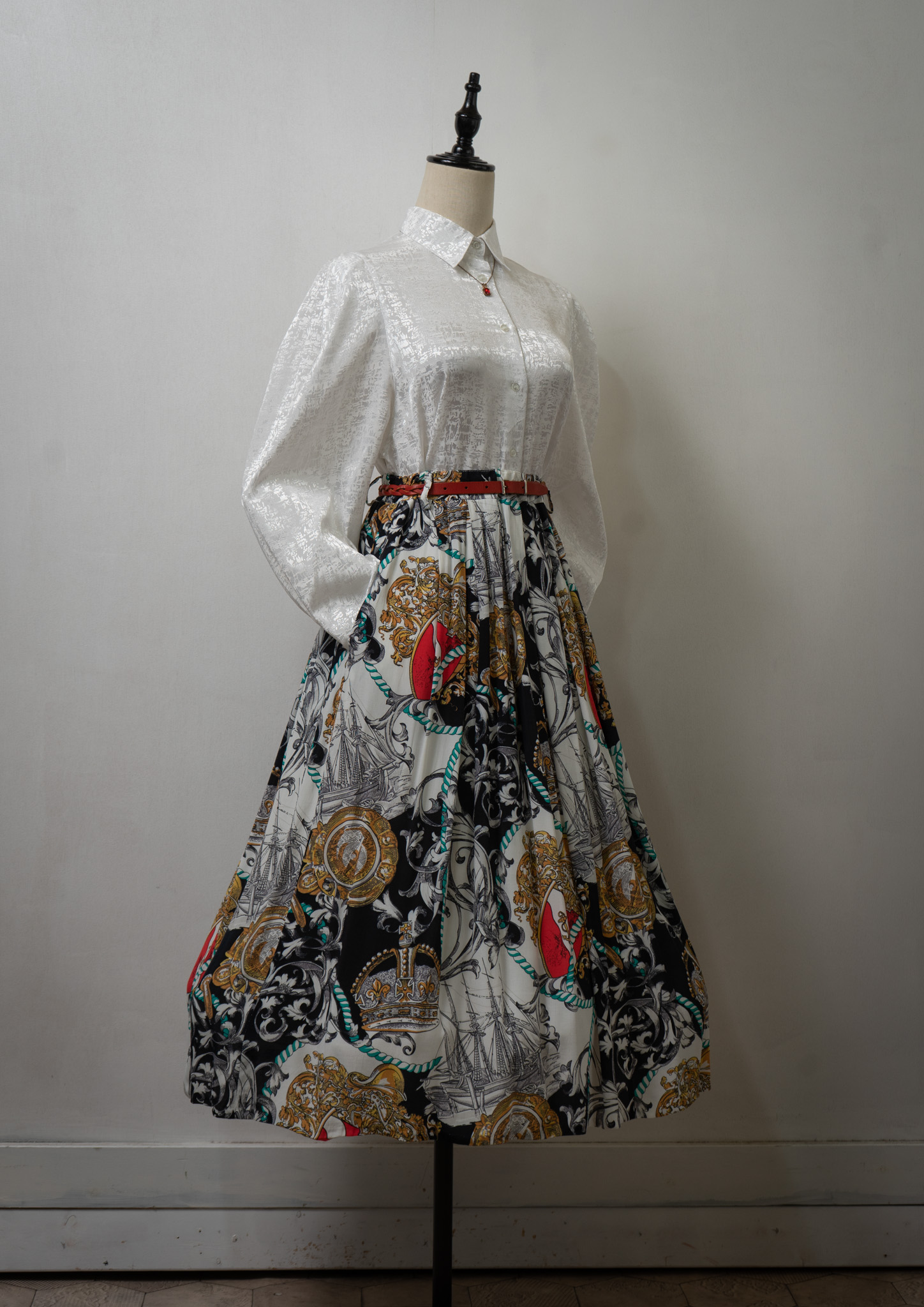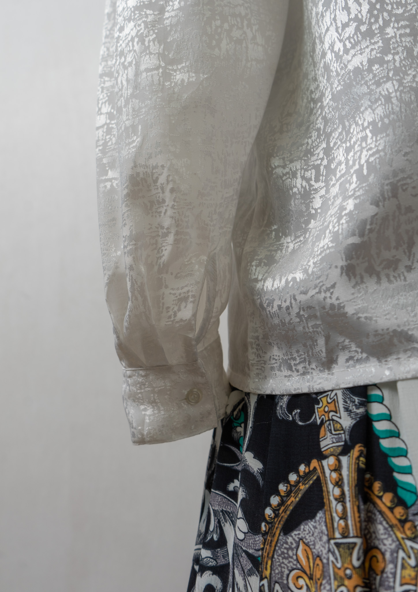 80's Geometric Medallion Pattern Frill Neck Blouse