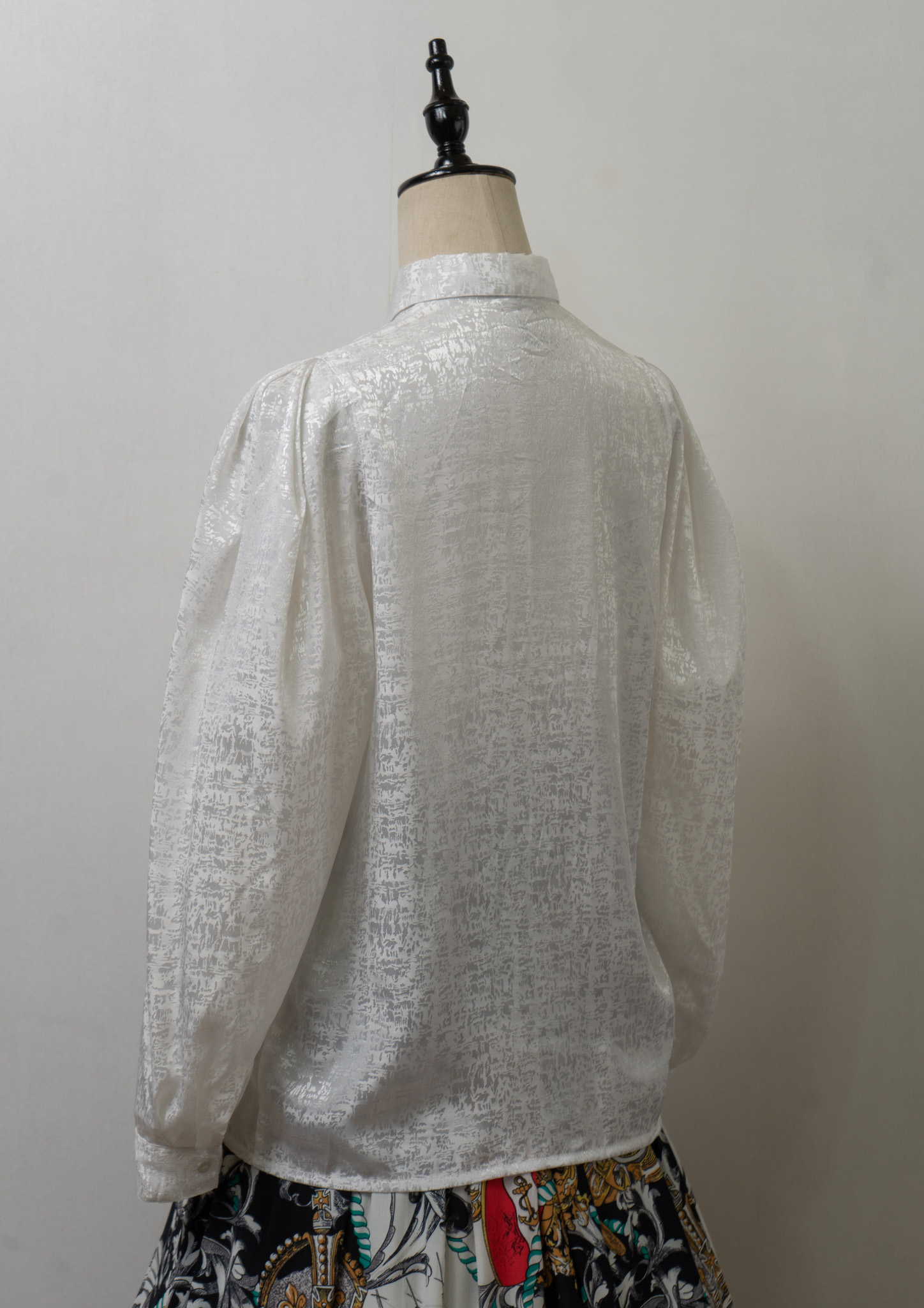 80~90's Bow-tie × Jabot Like Collar Ivory Blouse