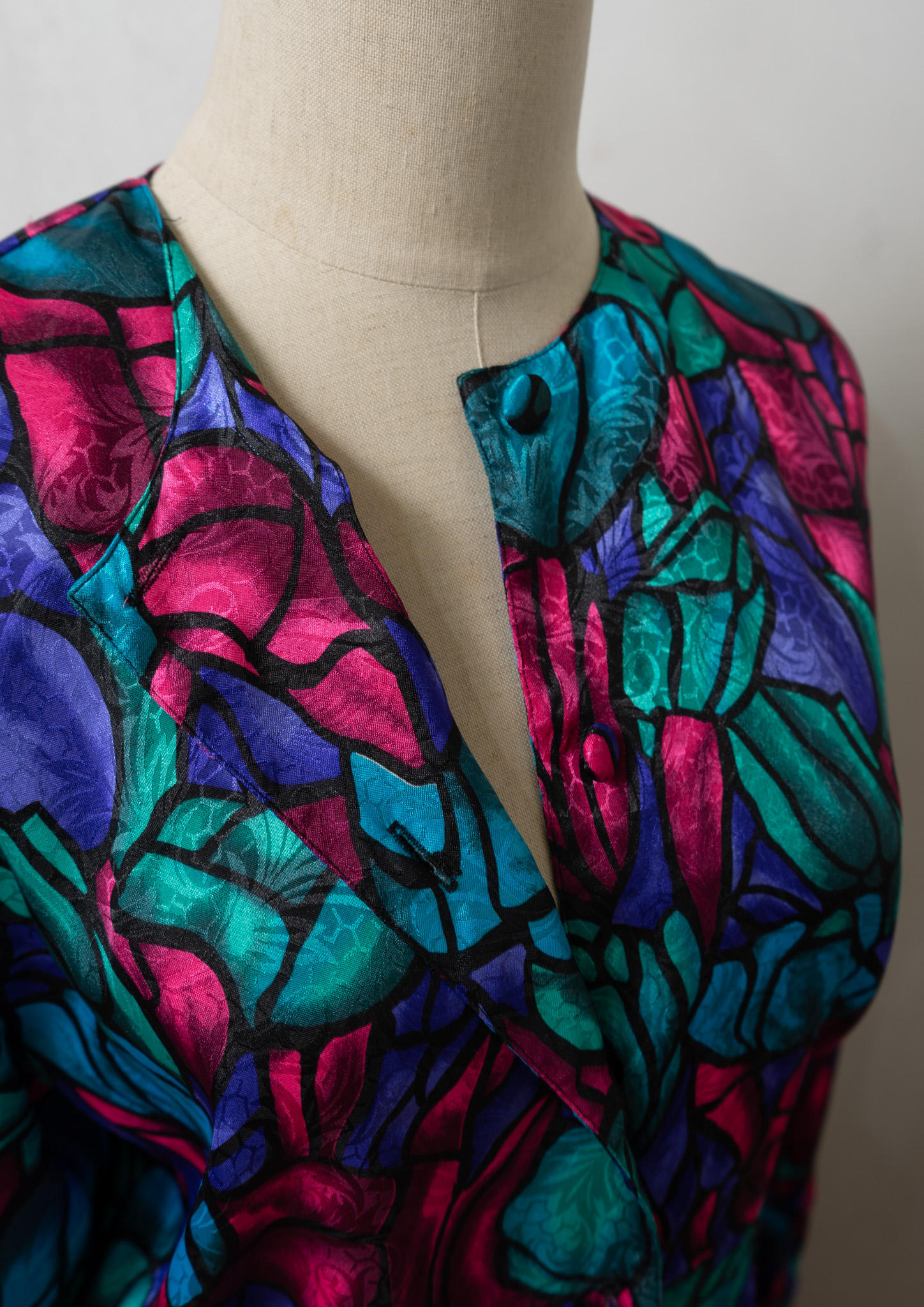 80's Geometric Medallion Pattern Frill Neck Blouse