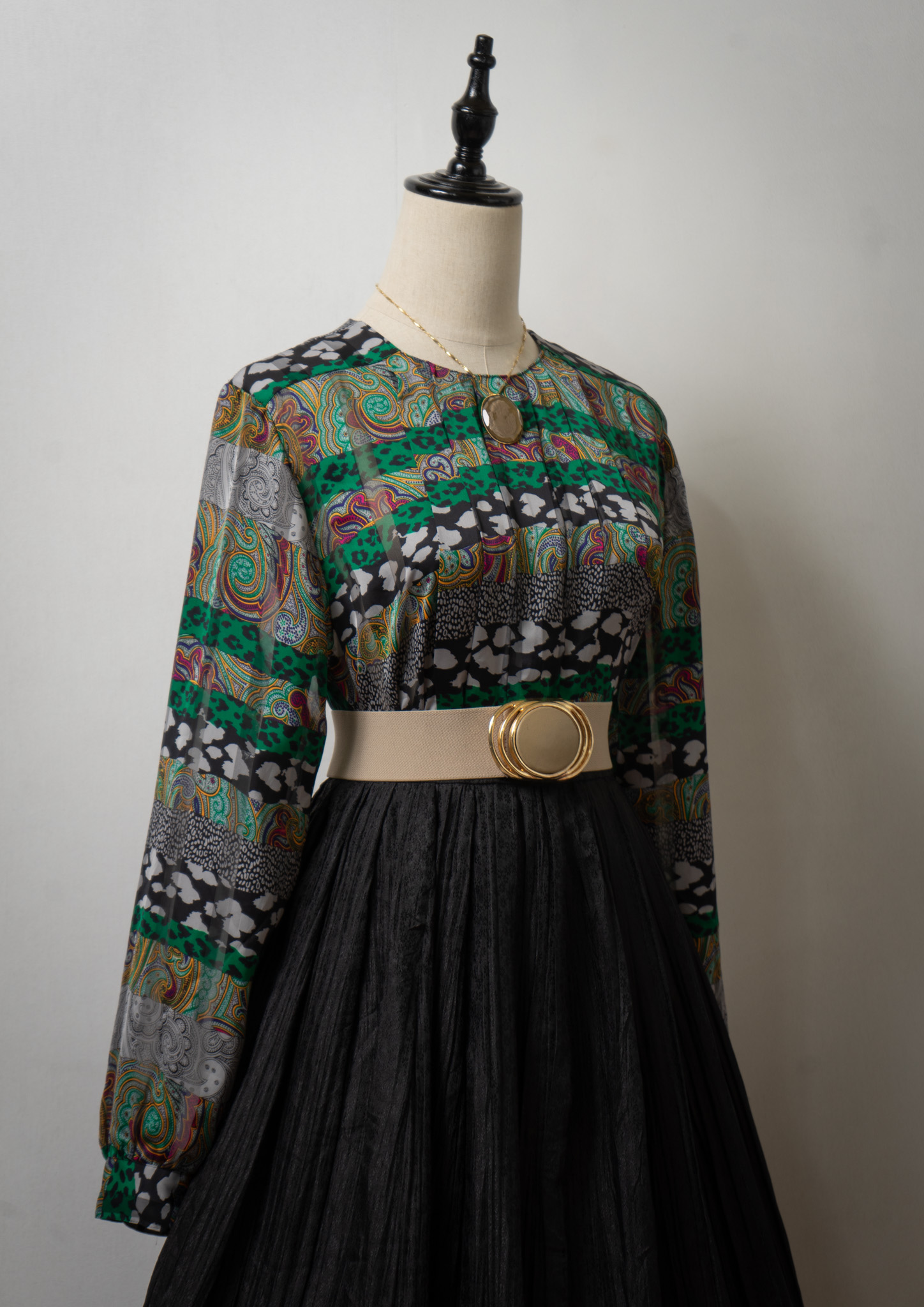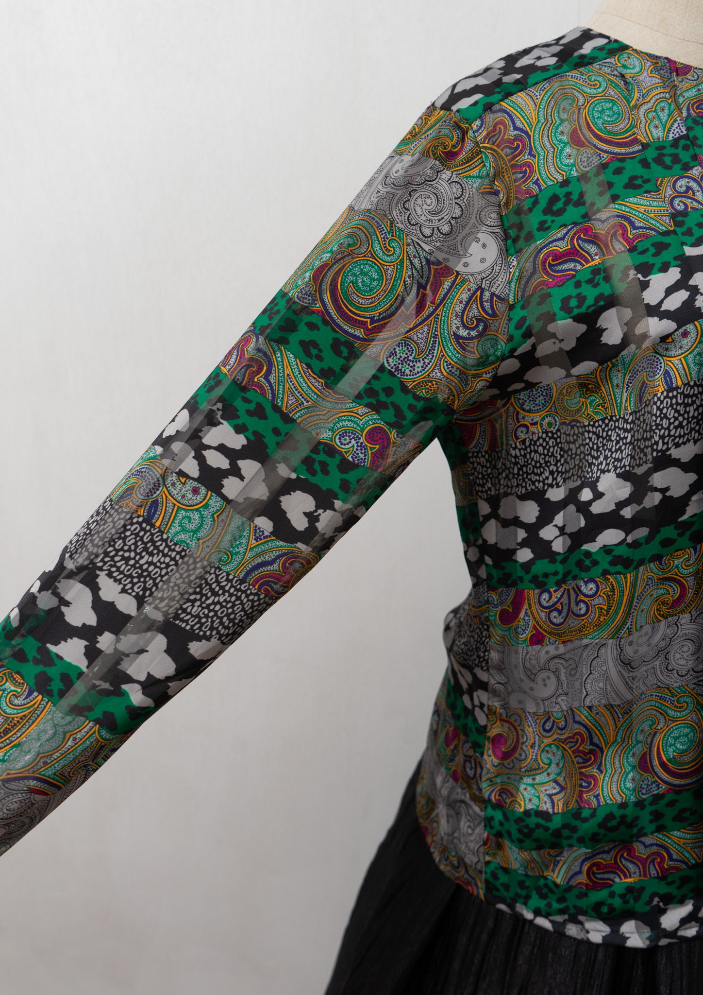 80's Paisley × Leopard Pattern Blouse