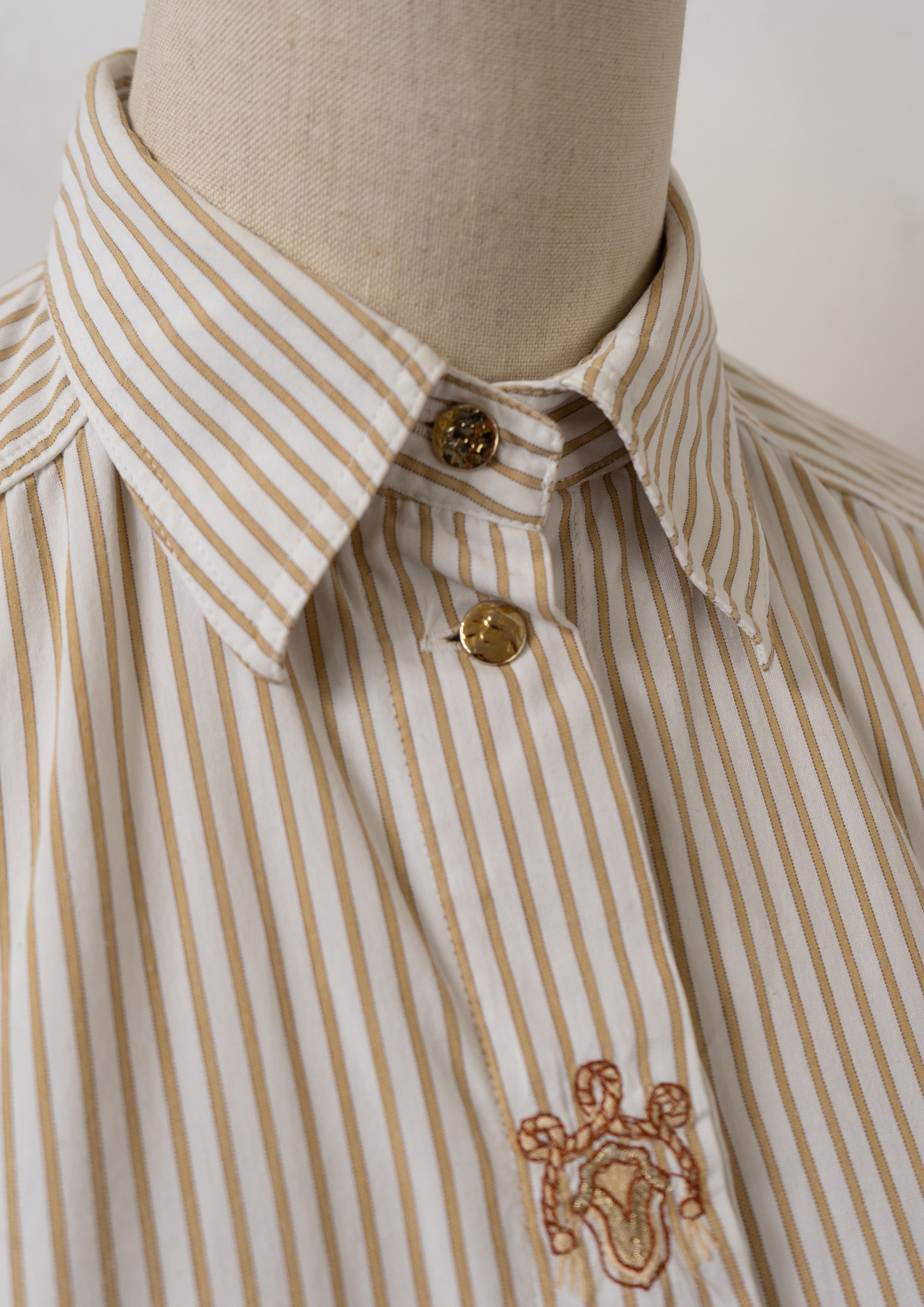 80's Geometric Medallion Pattern Frill Neck Blouse