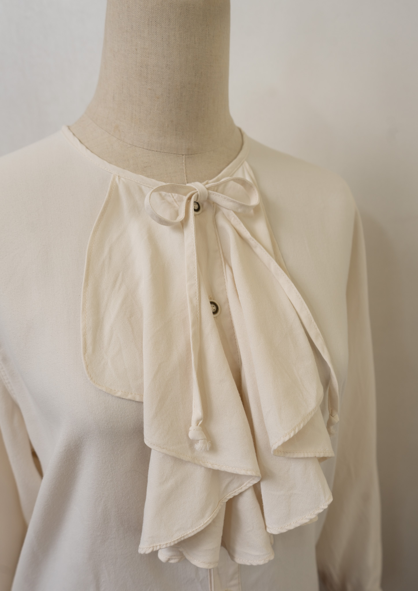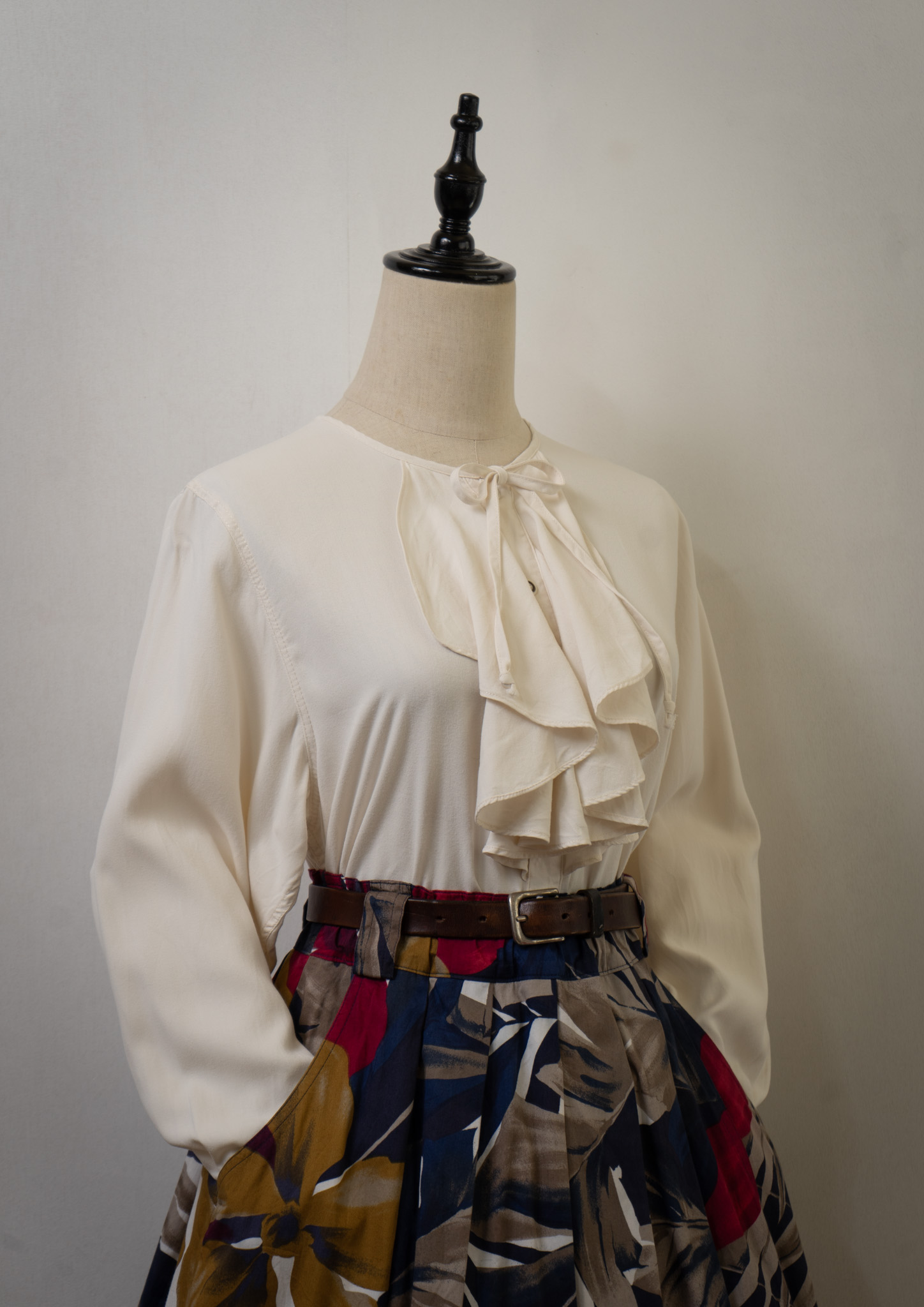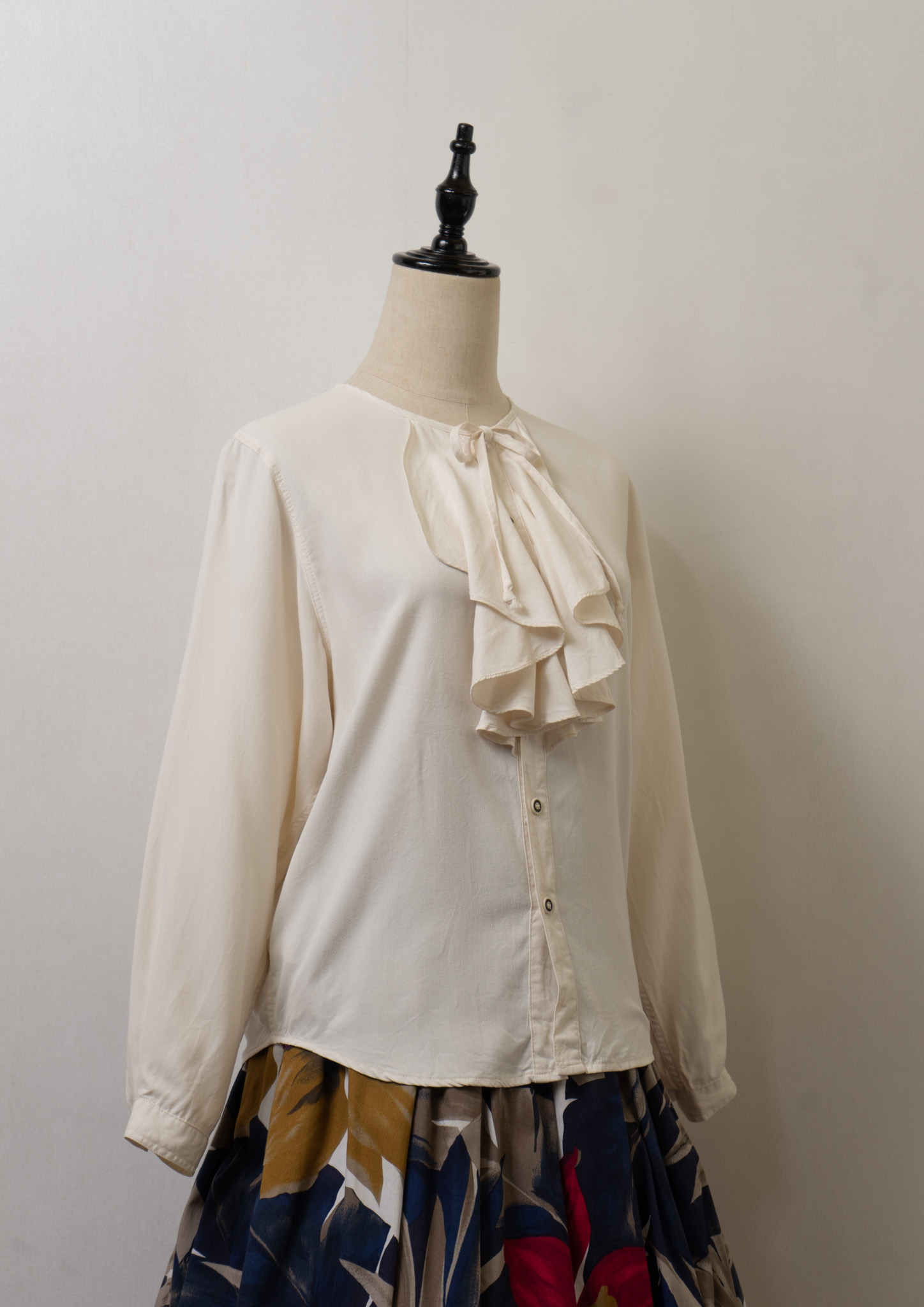 80~90's Bow-tie × Jabot Like Collar Ivory Blouse