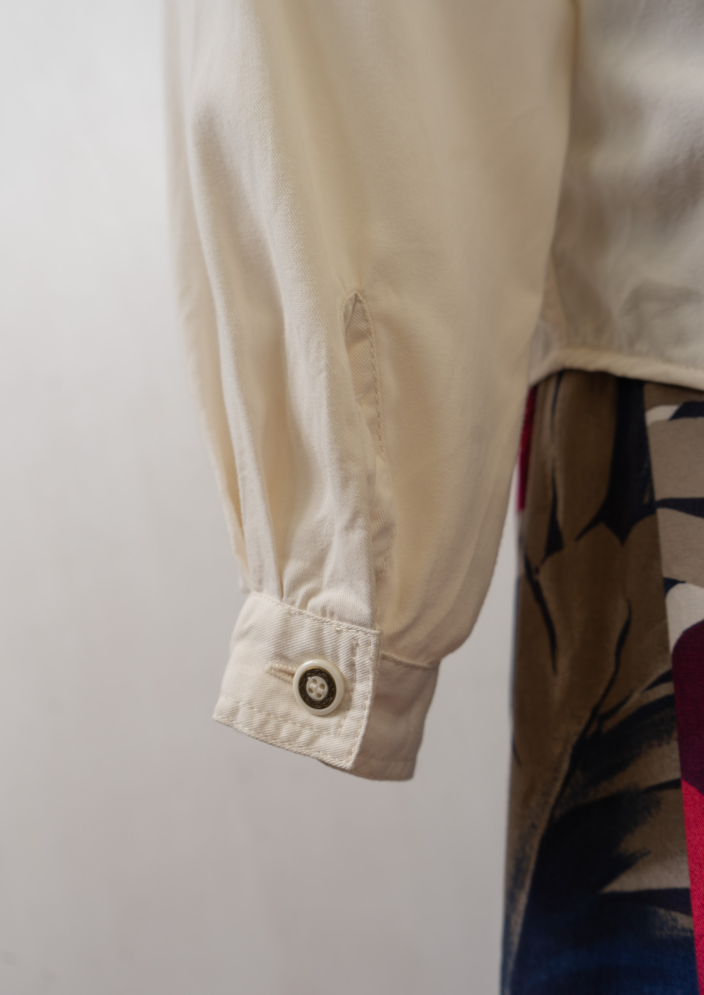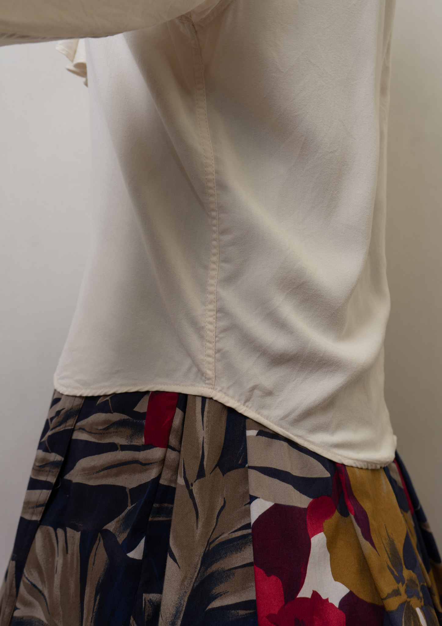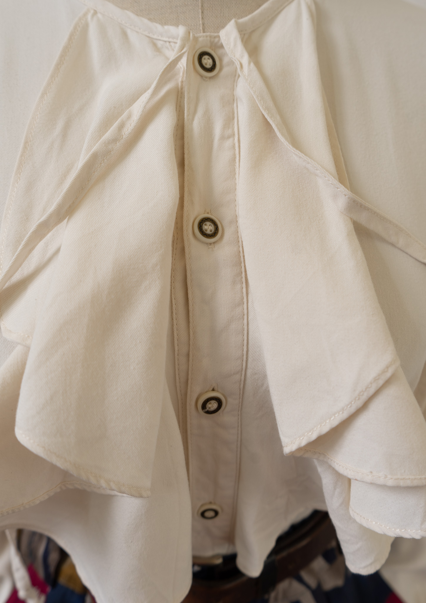 80~90's Bow-tie × Jabot Like Collar Ivory Blouse