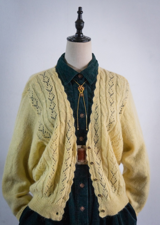 90's Italy Point Flower Knitting Ivory Mohair Cardigan