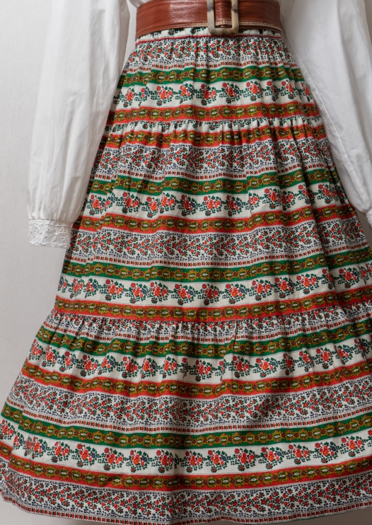 90's Euro Flower Stripe Pattern Tiered Skirt
