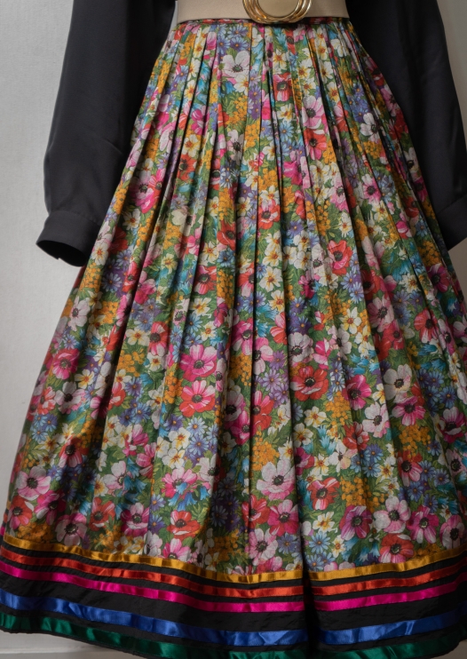 80~90's Glossy Flower Pattern Skirt