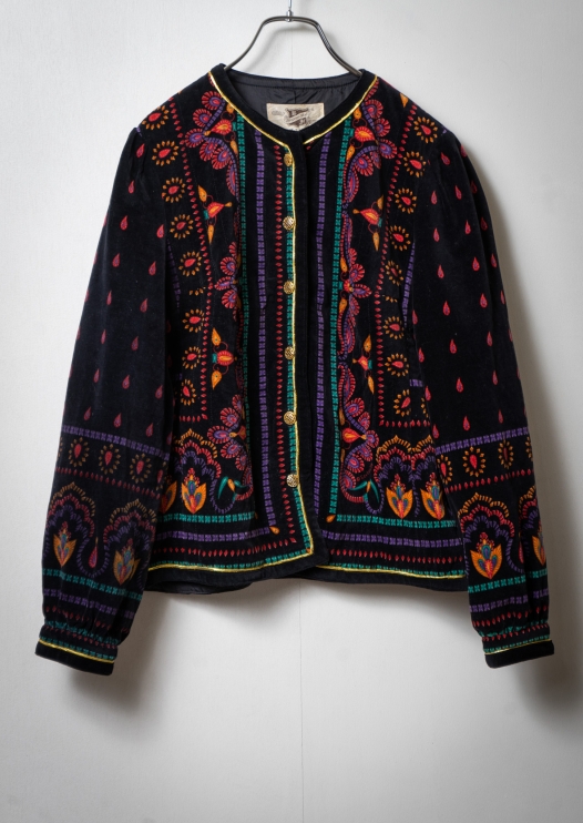 80's Unique Gold Embroidery Design Black Velor Quilting Jacket