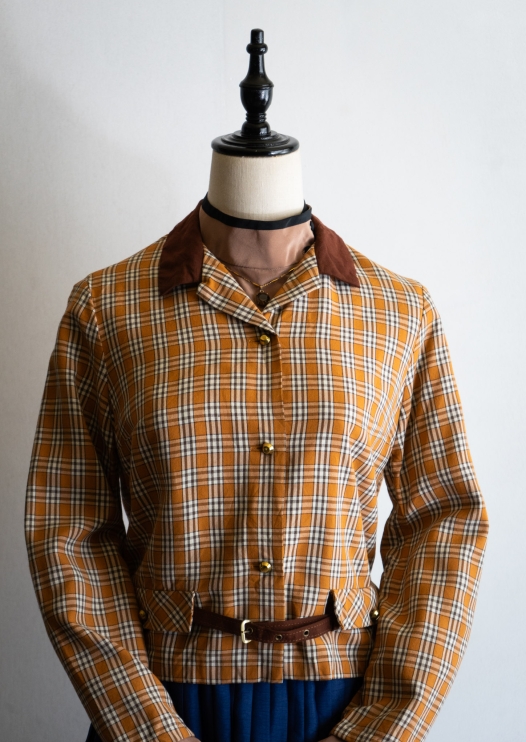 50~60's Belt Design Brown Check Pattern Cropped Jacket