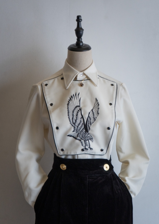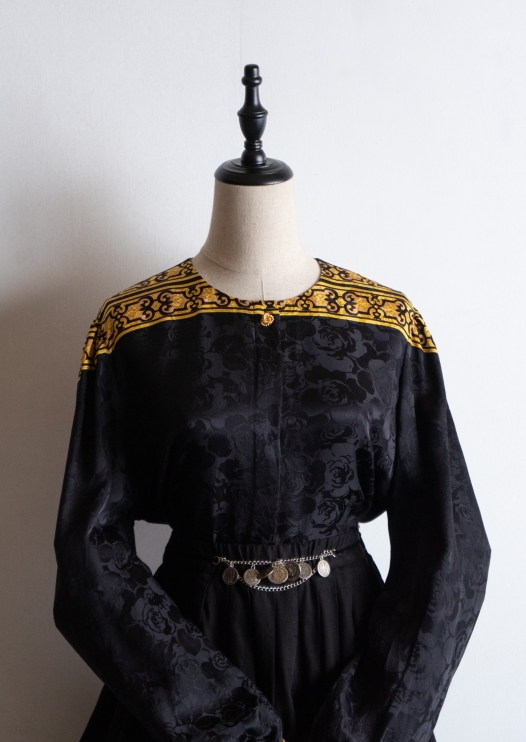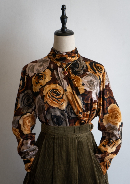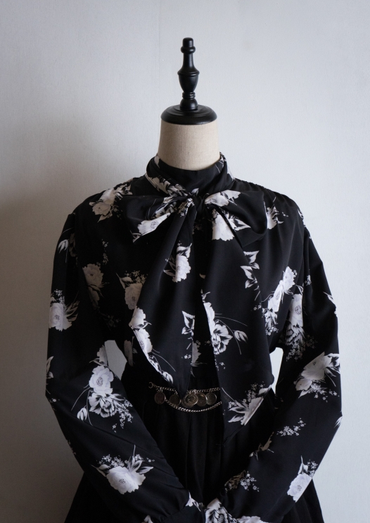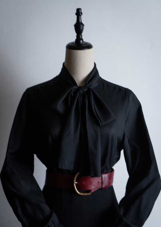 80’s W-Germany Unique Glossy Pattern Bow-tie Blouse