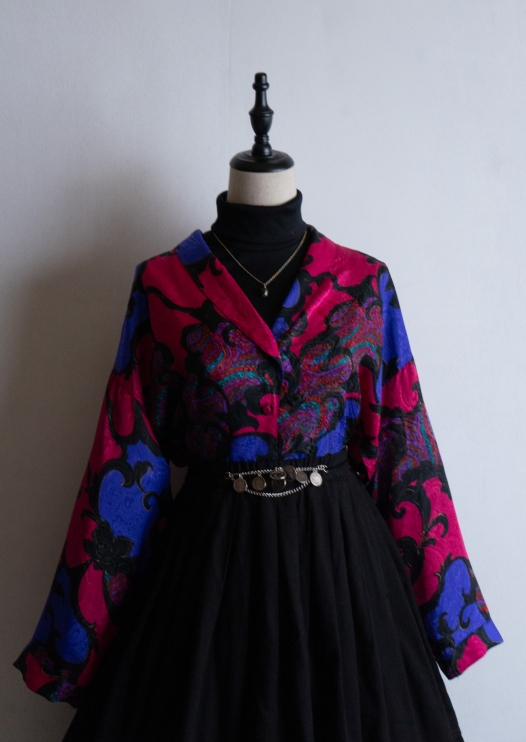 80~90's Pink × Blue Purple Paisley Art Pattern Blouse Jacket