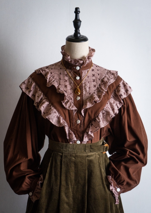70~80's Stand Frill Collar Flower Pattern Purple Blouse