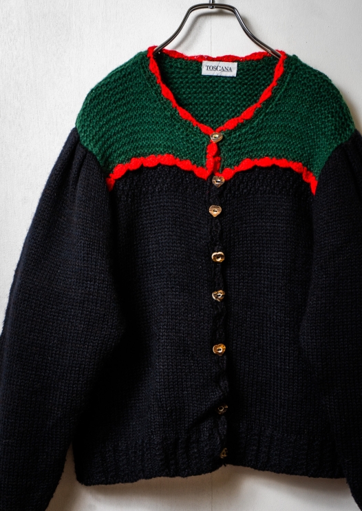 80~90's Euro Heat Tyrol Button Design Dark Green Knit Tyrol Cardigan