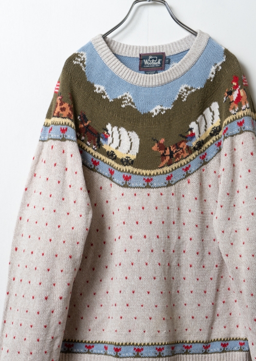 90's Carriage Art × Multi Small Red Heat Pattern Knit Sweater