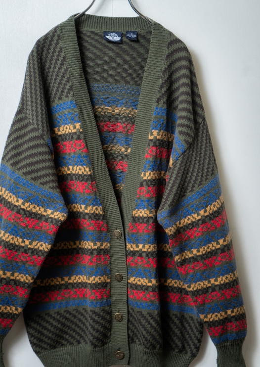 90's Mosaic Like Pattern Olive Knit Cardigan