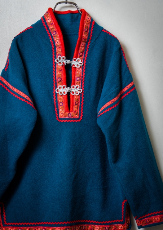 60~70's USA Flower Button Design Red ×Blue Pattern Tops