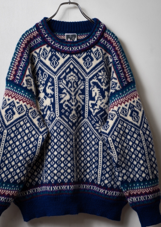 80~90's Norway Royal Pattern Navy Blue Sweater