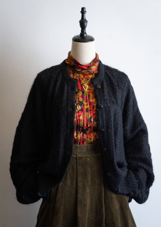 90's Botanical Pattern Latte Collar Mohair Blend Cardigan