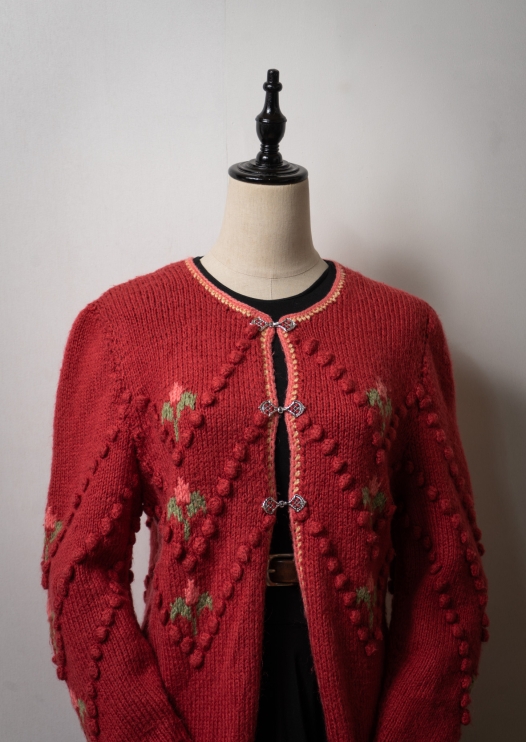 Euro Ponpon Design Flower Pattern Tyrol Cardigan
