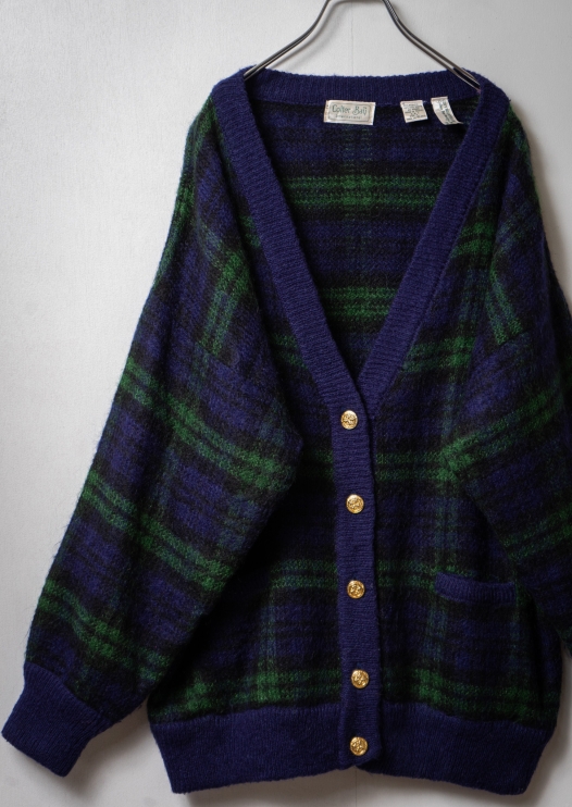 80's Red × Blue Check Like Pattern Black Knit Sweater